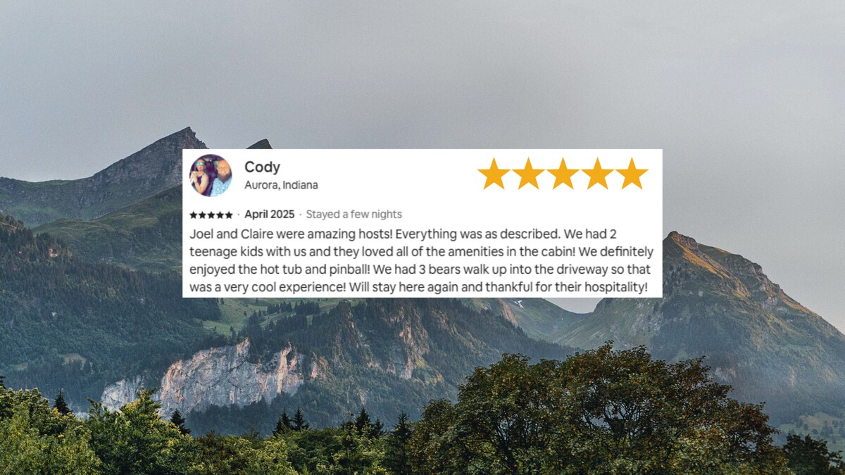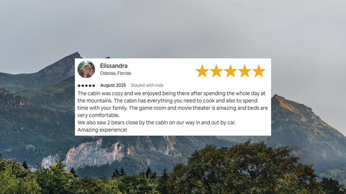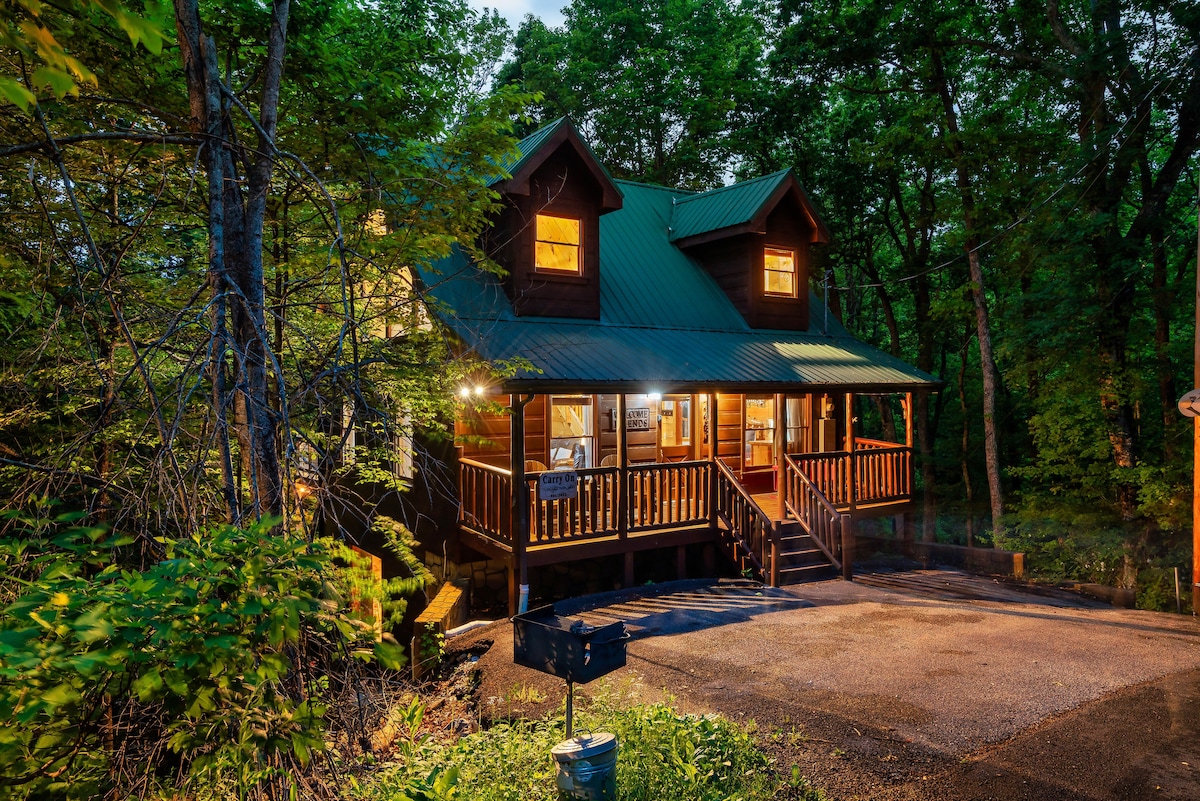 This pet-friendly cabin boasts a prime location and a brand-new theater with stadium-style seating. The 3-level retreat sleeps 7 (2 king beds + twin/queen bunk in game room), perfect for a romantic escape or family fun. Kids will love the 120" screen, arcades, air hockey, and games. Soak in the hot tub and unwind. Enjoy 3 decks, 200mb+ Wi-Fi, and a full kitchen. Roads are steep and winding—AWD required in winter
