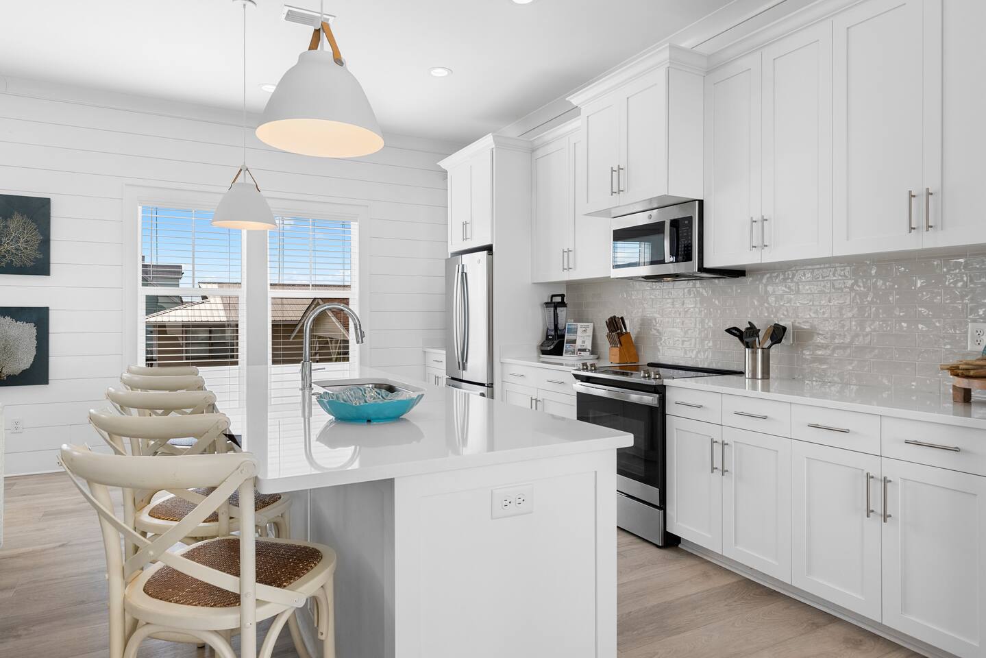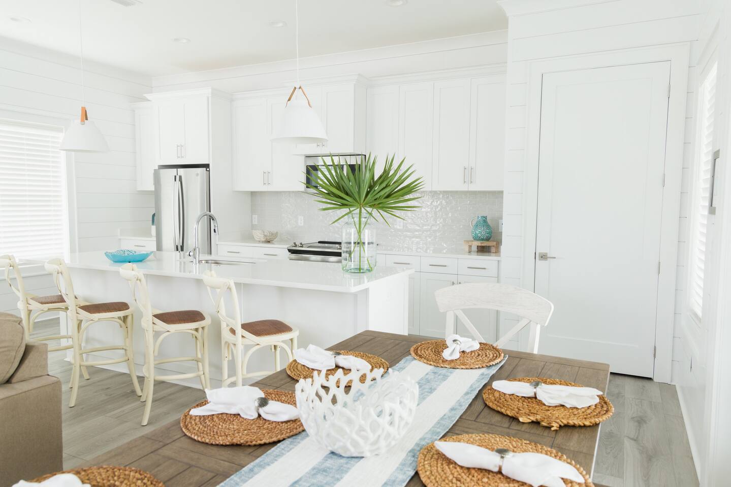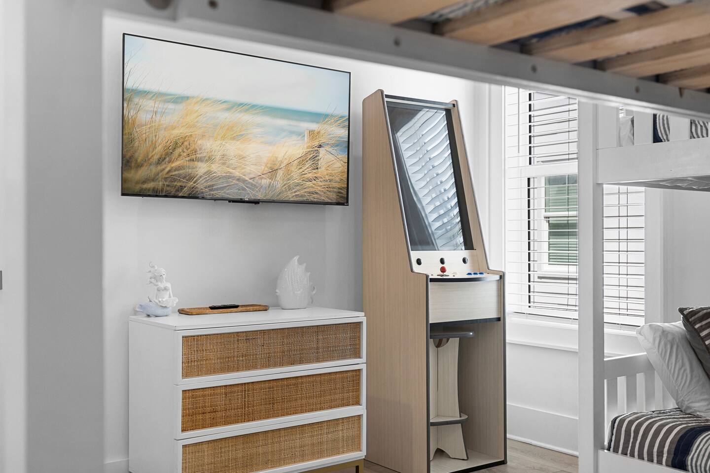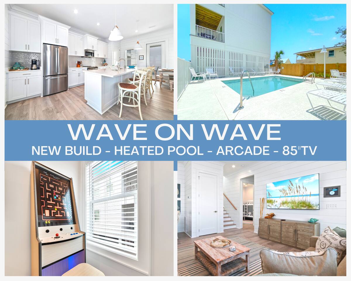 Why should you choose Wave on Wave? Send me a message, happy to answer any questions. 1. This home is immaculate. BRAND NEW and decorated by a high end designer. (Shiplap walls, Quartz counter tops, EV Charger, etc..) 2. The beach is just a short 3 min walk. Don't worry, we provide a beach buggy, chairs and umbrellas so that you don't have to carry the gear! 3. There is a GAS heated swimming pool just outside of the front door. It is warm (88 degrees) any time of year. BE SURE TO ASK other hosts if their pool is electric. Electric heaters can’t get as warm. You can also watch your kids swim from one of our 2 covered decks. 4. We offer 300mb WIFI and there is a full size arcade game, Shuffleboard, Cornhole and Board Games for you to enjoy. 5. We provide excellent customer service and the reviews show it with over 130 5 star reviews!. KEY FEATURES: ☀ 4 large bedrooms; 3 spacious king suites + 1 bunk room ☀ Water views of the lagoon ☀ 4 full ensuite bathrooms for ultimate privacy ☀ Full kitchen w/ stainless steel appliances + coffee bar ☀ Spacious living room with 85” flat-screen Smart TV ☀ Easy beach access ☀ Beach cart w/ chairs, umbrellas, boogie boards + toys ☀ EV Charger (48 amp Level 2, Compatible with all J1772 EVs) ☀ Heated pool next to the home (Set to 88 degrees) ☀ Pool-view balconies ☀ Stand up arcade game ☀ Shuffleboard, Cornhole Boards and Board Games ☀ Propane grill ☀ High-speed Wi-Fi (300+ mbps) ☀ Covered parking for up to 4 vehicles ☀ Complimentary starter pack (Toilet paper, Paper Towels, Dish soap, etc.) ☀ Full-size washer + dryer ☀ Book with confidence! We have over 120 5 star reviews. Here Are A Few Kind Words From Our Past Guests: "The house was great! Close walk to the beach, the kids loved the pool and the arcade game! Everything was decorated beautifully. Joel is a wonderful host. Great communication and quick to answer any questions we had. The place is great and the waves were amazing. We will definitely be back!.” - Chris "Great spacious place, super clean and as advertised. Close walk to beach & great hosts with plenty of communication. Would recommend to anyone wanting to stay in gulf shores!" - Gabby “Joel was an awesome host. He offered us plenty of information and tips to help make our trip even more enjoyable.“ - Shanerron "We had a great experience with our stay at Joel's beautiful house! Everything was exactly as described/pictured and Joel was great at communicating throughout our trip. The location was great too - a very easy walk to the beach!" - Catherine "I couldn’t have asked for a better weekend with family. The place gives you such a serene feeling walking in. Going to the beach was a short pleasant walk. We really enjoyed the balcony. As we woke one by one we headed to the balcony with our cups of coffee to begin our morning. " - Yolanda ☆☆ BEDROOMS + BATHROOMS ☆☆ This property is not only located just steps from the beach, but it also has plenty of space for your whole group to spread out and maintain a sense of privacy. Each bright, airy bedroom is thoughtfully decorated with colors that bring the beach feel indoors. There are three suites with king-sized beds on the second floor and a fun main floor bunk room for the kiddos. This bunk room features two twin bunk beds and a standing arcade with games like Donkey Kong, Pac-Man, Galaga, and more to keep the young members of the family entertained. All four bedrooms have plenty of storage space for your things so you can make yourself at home. Each room has USB ports for convenient charging and a Roku Smart TV - be sure to bring your own streaming logins! Each bedroom has a modern attached bathroom with a shower or shower and tub combo, a hairdryer, and plush towels. The modern fixtures, bright lighting, and vinyl plank floors make for a stylish bathroom experience. In case you have additional guests, there is a queen-size sleeper sofa located in the living room to accommodate them. ☆☆ KITCHEN & LOUNGE ☆☆ The bright and airy open concept kitchen and lounge are a welcoming place for your family to spend quality time together in comfort. The area is full of windows that let in plenty of natural light, and the entire space is tastefully decorated with brand new furnishings and fixtures. The modern kitchen has everything you need to cook delicious family meals, including stainless steel appliances, a blender, a crockpot, a rice maker, and all the other basic cooking necessities. The glass tile backsplash and quartz countertops provide an elegant look to enjoy while whipping up a delicious meal. It couldn’t be easier to get your caffeine fix each day thanks to the coffee bar. Whether you prefer a Keurig, drip coffee, or a french press, you’ve got what you need to prepare your perfect morning cup of coffee. Pull up a bar stool at the 10-foot kitchen island, enjoy your meals on the dining room table (seating for 8), or take your meal outside to the patio table. The spacious and stylish living room is finished with custom shiplap walls and luxury plank flooring. There is plenty of space on the comfortable sofas to curl up and enjoy streaming your favorite shows on the large 75” Smart TV. You’ll also find a nice selection of board games to enjoy during your holiday, including Jenga, Uno, and Connect 4. ☆☆ OUTSIDE SPACE ☆☆ You’ve probably come to Gulf Shores to enjoy the white sand beaches of the Gulf of Mexico, and when you stay here, you’ll be just a short three-minute walk away from the best beaches. There’s even a beach cart for your convenience, stocked with essentials like chairs, umbrellas, boogie boards, and toys. When you return home from a day of fun in the sun, you can wash off all the sand in the outdoor shower beneath the property. This area also has a four-burner propane grill so you can BBQ during your stay. On days when you feel like staying closer to home, you can work on your tan at the heated outdoor pool