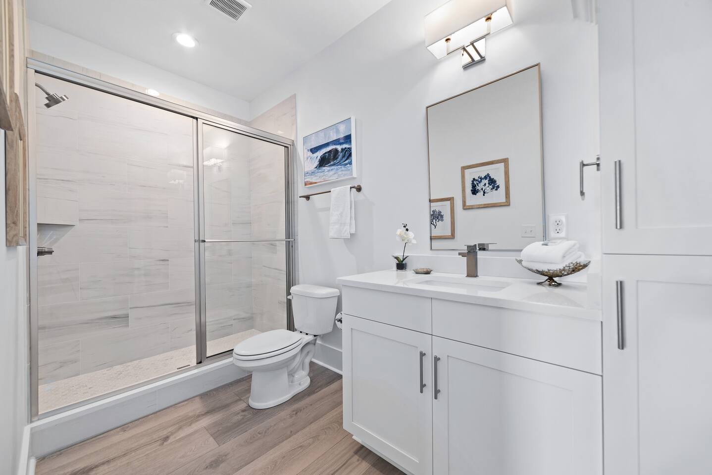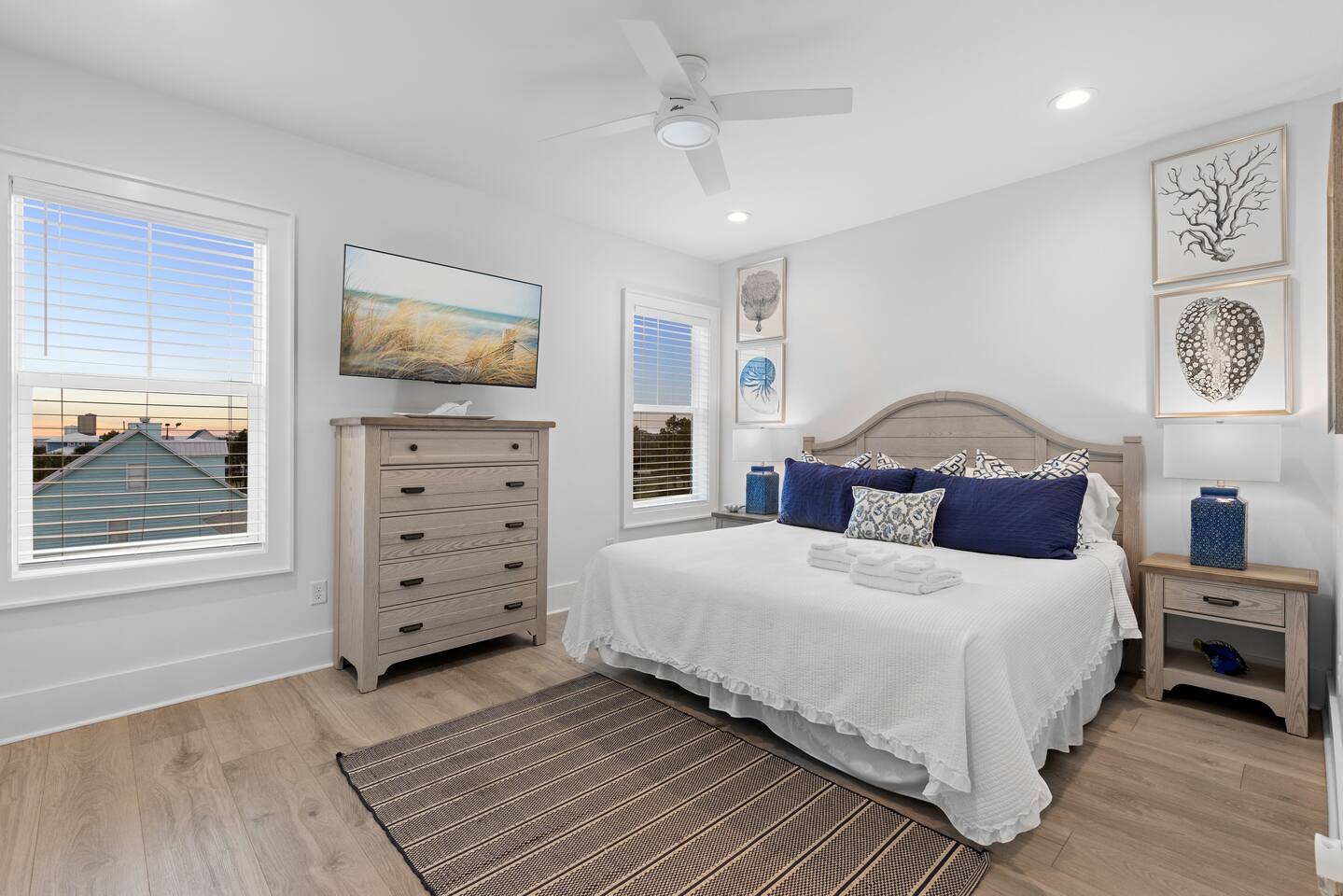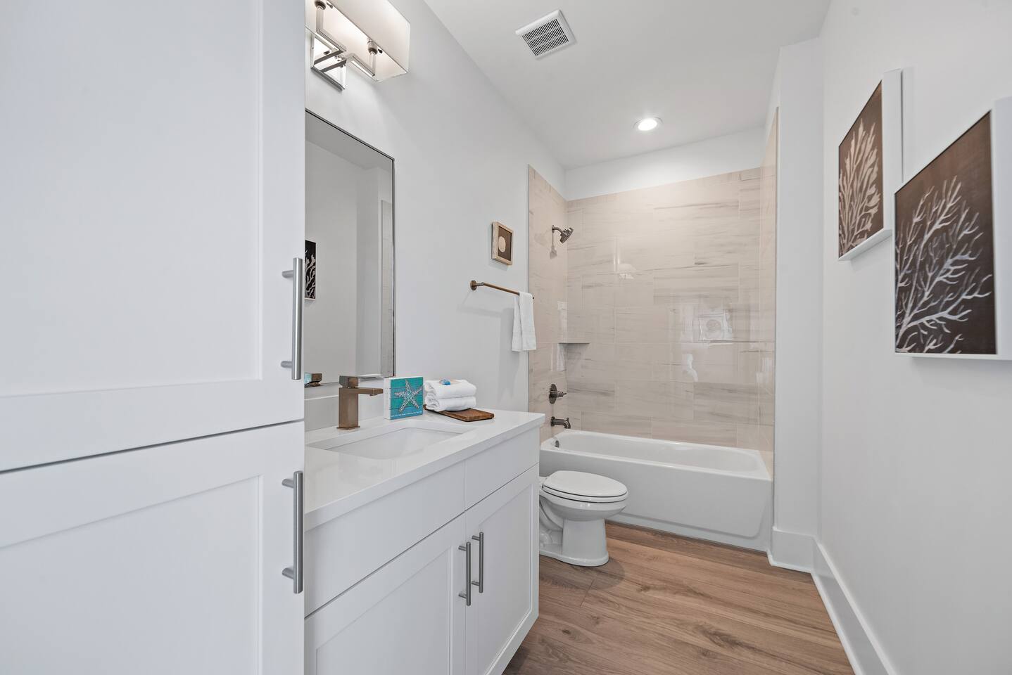 Why should you choose Wave on Wave? Send me a message, happy to answer any questions. 1. This home is immaculate. BRAND NEW and decorated by a high end designer. (Shiplap walls, Quartz counter tops, EV Charger, etc..) 2. The beach is just a short 3 min walk. Don't worry, we provide a beach buggy, chairs and umbrellas so that you don't have to carry the gear! 3. There is a GAS heated swimming pool just outside of the front door. It is warm (88 degrees) any time of year. BE SURE TO ASK other hosts if their pool is electric. Electric heaters can’t get as warm. You can also watch your kids swim from one of our 2 covered decks. 4. We offer 300mb WIFI and there is a full size arcade game, Shuffleboard, Cornhole and Board Games for you to enjoy. 5. We provide excellent customer service and the reviews show it with over 130 5 star reviews!. KEY FEATURES: ☀ 4 large bedrooms; 3 spacious king suites + 1 bunk room ☀ Water views of the lagoon ☀ 4 full ensuite bathrooms for ultimate privacy ☀ Full kitchen w/ stainless steel appliances + coffee bar ☀ Spacious living room with 85” flat-screen Smart TV ☀ Easy beach access ☀ Beach cart w/ chairs, umbrellas, boogie boards + toys ☀ EV Charger (48 amp Level 2, Compatible with all J1772 EVs) ☀ Heated pool next to the home (Set to 88 degrees) ☀ Pool-view balconies ☀ Stand up arcade game ☀ Shuffleboard, Cornhole Boards and Board Games ☀ Propane grill ☀ High-speed Wi-Fi (300+ mbps) ☀ Covered parking for up to 4 vehicles ☀ Complimentary starter pack (Toilet paper, Paper Towels, Dish soap, etc.) ☀ Full-size washer + dryer ☀ Book with confidence! We have over 120 5 star reviews. Here Are A Few Kind Words From Our Past Guests: "The house was great! Close walk to the beach, the kids loved the pool and the arcade game! Everything was decorated beautifully. Joel is a wonderful host. Great communication and quick to answer any questions we had. The place is great and the waves were amazing. We will definitely be back!.” - Chris "Great spacious place, super clean and as advertised. Close walk to beach & great hosts with plenty of communication. Would recommend to anyone wanting to stay in gulf shores!" - Gabby “Joel was an awesome host. He offered us plenty of information and tips to help make our trip even more enjoyable.“ - Shanerron "We had a great experience with our stay at Joel's beautiful house! Everything was exactly as described/pictured and Joel was great at communicating throughout our trip. The location was great too - a very easy walk to the beach!" - Catherine "I couldn’t have asked for a better weekend with family. The place gives you such a serene feeling walking in. Going to the beach was a short pleasant walk. We really enjoyed the balcony. As we woke one by one we headed to the balcony with our cups of coffee to begin our morning. " - Yolanda ☆☆ BEDROOMS + BATHROOMS ☆☆ This property is not only located just steps from the beach, but it also has plenty of space for your whole group to spread out and maintain a sense of privacy. Each bright, airy bedroom is thoughtfully decorated with colors that bring the beach feel indoors. There are three suites with king-sized beds on the second floor and a fun main floor bunk room for the kiddos. This bunk room features two twin bunk beds and a standing arcade with games like Donkey Kong, Pac-Man, Galaga, and more to keep the young members of the family entertained. All four bedrooms have plenty of storage space for your things so you can make yourself at home. Each room has USB ports for convenient charging and a Roku Smart TV - be sure to bring your own streaming logins! Each bedroom has a modern attached bathroom with a shower or shower and tub combo, a hairdryer, and plush towels. The modern fixtures, bright lighting, and vinyl plank floors make for a stylish bathroom experience. In case you have additional guests, there is a queen-size sleeper sofa located in the living room to accommodate them. ☆☆ KITCHEN & LOUNGE ☆☆ The bright and airy open concept kitchen and lounge are a welcoming place for your family to spend quality time together in comfort. The area is full of windows that let in plenty of natural light, and the entire space is tastefully decorated with brand new furnishings and fixtures. The modern kitchen has everything you need to cook delicious family meals, including stainless steel appliances, a blender, a crockpot, a rice maker, and all the other basic cooking necessities. The glass tile backsplash and quartz countertops provide an elegant look to enjoy while whipping up a delicious meal. It couldn’t be easier to get your caffeine fix each day thanks to the coffee bar. Whether you prefer a Keurig, drip coffee, or a french press, you’ve got what you need to prepare your perfect morning cup of coffee. Pull up a bar stool at the 10-foot kitchen island, enjoy your meals on the dining room table (seating for 8), or take your meal outside to the patio table. The spacious and stylish living room is finished with custom shiplap walls and luxury plank flooring. There is plenty of space on the comfortable sofas to curl up and enjoy streaming your favorite shows on the large 75” Smart TV. You’ll also find a nice selection of board games to enjoy during your holiday, including Jenga, Uno, and Connect 4. ☆☆ OUTSIDE SPACE ☆☆ You’ve probably come to Gulf Shores to enjoy the white sand beaches of the Gulf of Mexico, and when you stay here, you’ll be just a short three-minute walk away from the best beaches. There’s even a beach cart for your convenience, stocked with essentials like chairs, umbrellas, boogie boards, and toys. When you return home from a day of fun in the sun, you can wash off all the sand in the outdoor shower beneath the property. This area also has a four-burner propane grill so you can BBQ during your stay. On days when you feel like staying closer to home, you can work on your tan at the heated outdoor pool