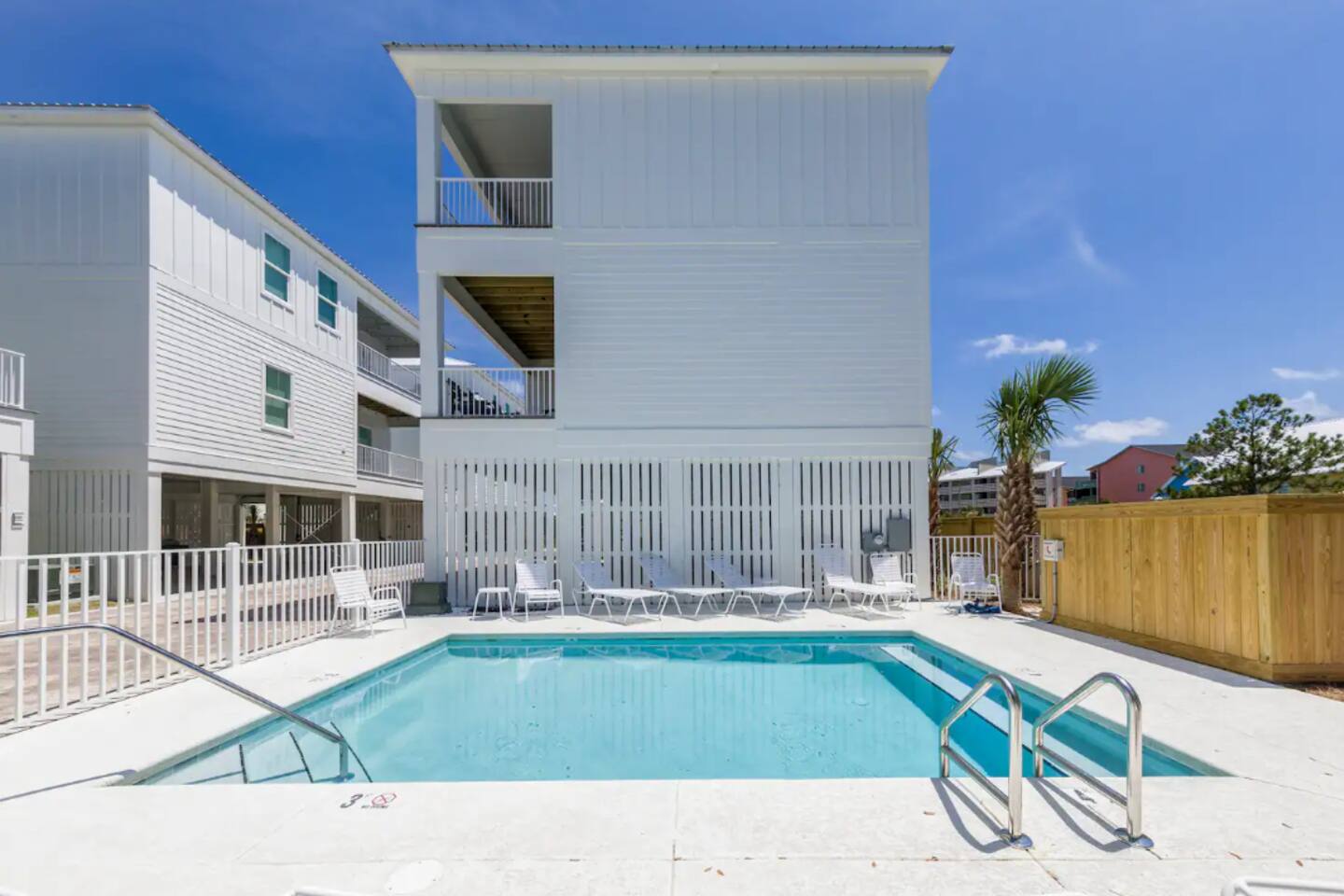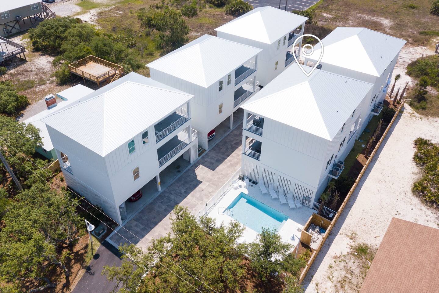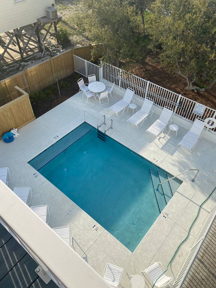 Wave on Wave is located in a quiet 5 house neighborhood that shares a community pool. Little lagoon is a 2 min walk from the house and the beach is just a 3 min walk. Best of both worlds! There is also a local food / beach store and a restaurant only 2 mins away as well.