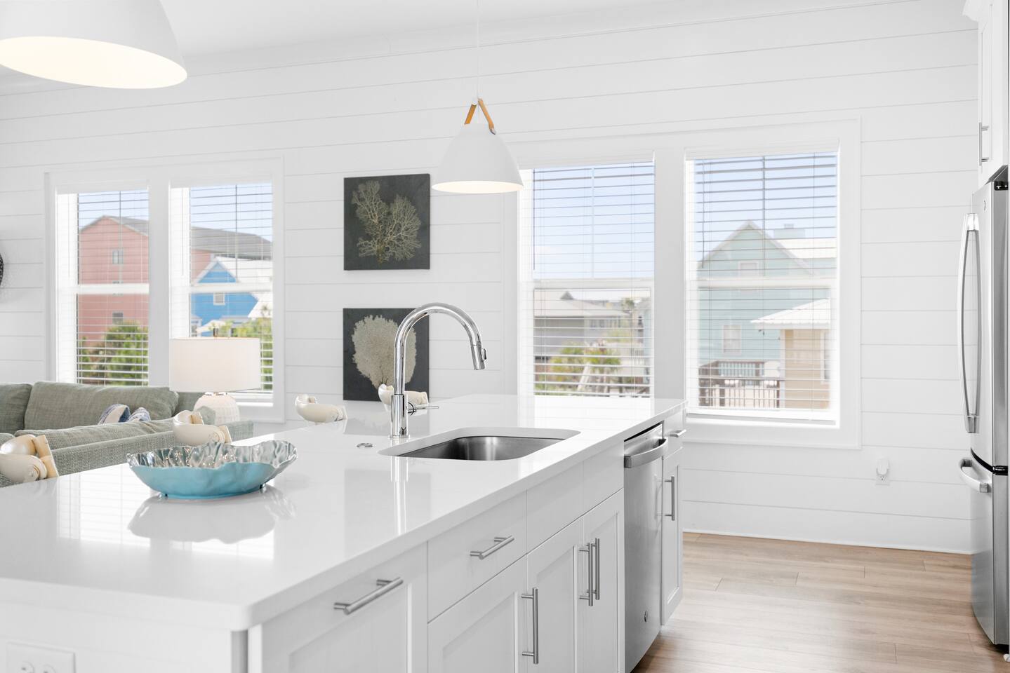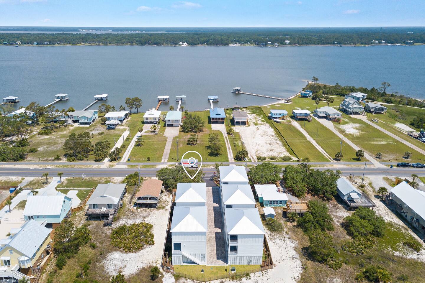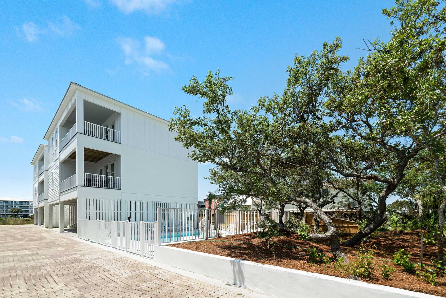 Wave on Wave is located in a quiet 5 house neighborhood that shares a community pool. Little lagoon is a 2 min walk from the house and the beach is just a 3 min walk. Best of both worlds! There is also a local food / beach store and a restaurant only 2 mins away as well.