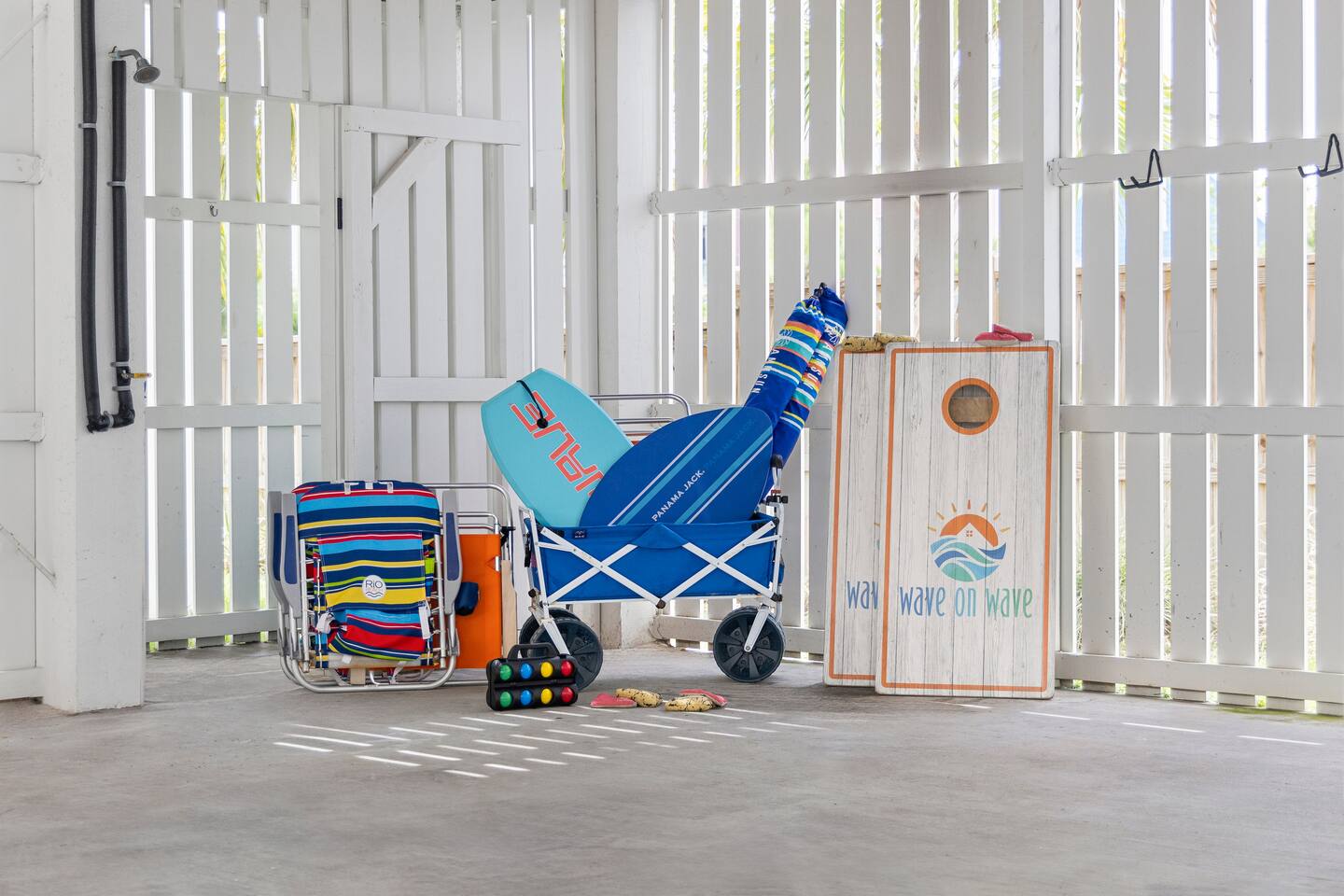 When using the grill, please wheel it out to the cobblestone driveway. If it were to catch on fire, we don't want the house to burn down. Please do not park on the cobblestone brick outside of the home. All cars must fit in the parking spaces underneath the home. Wave on Wave by Red Glider Getaways