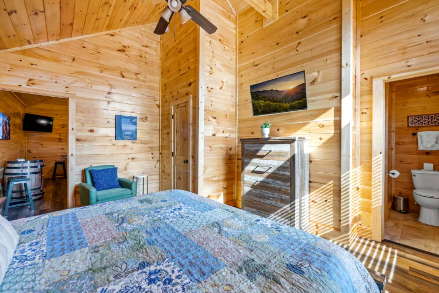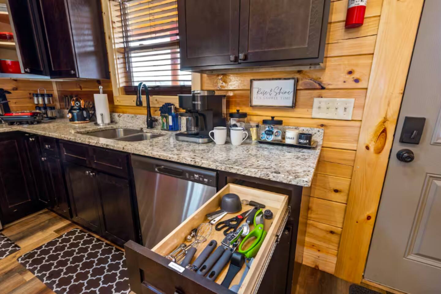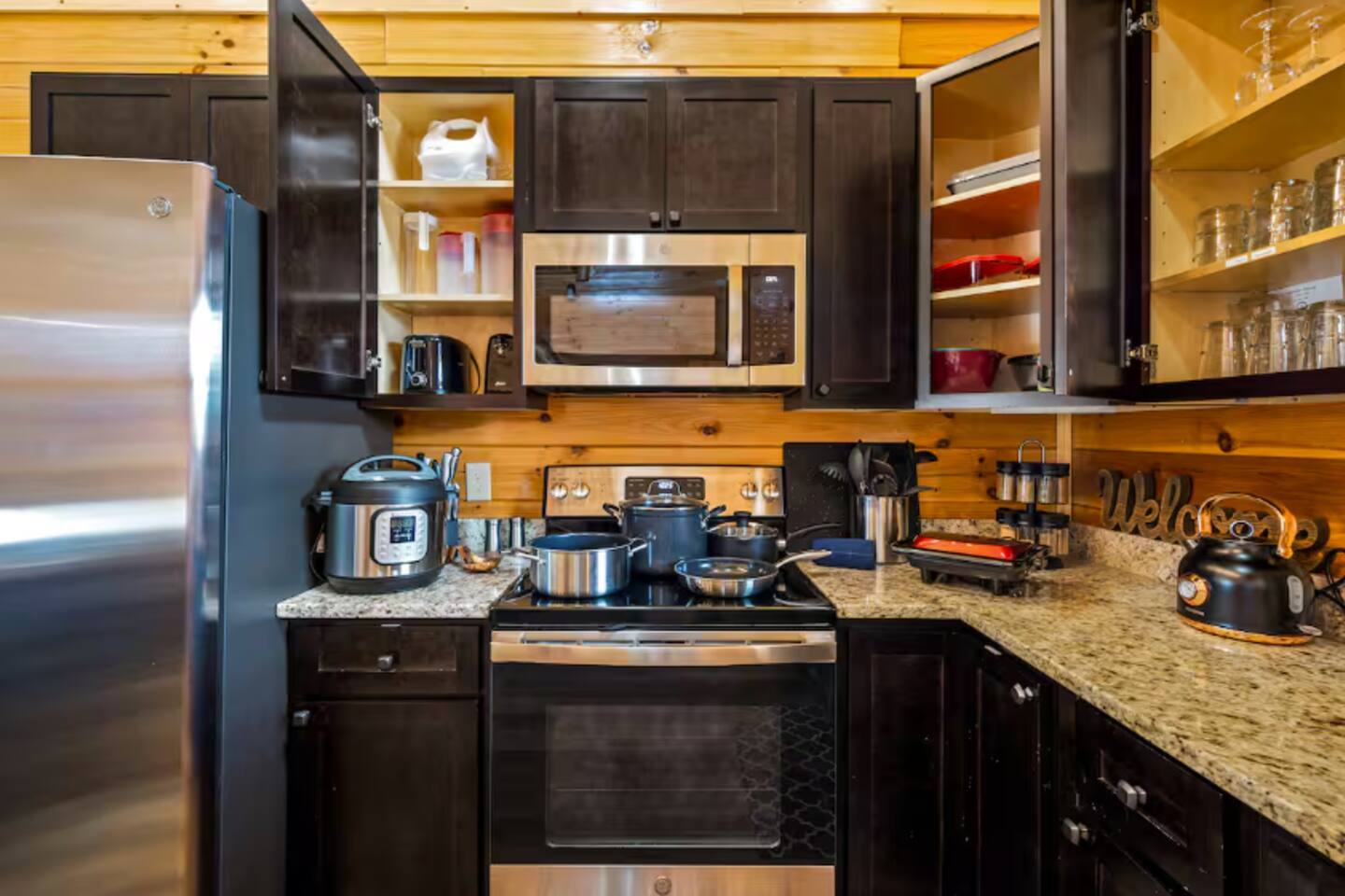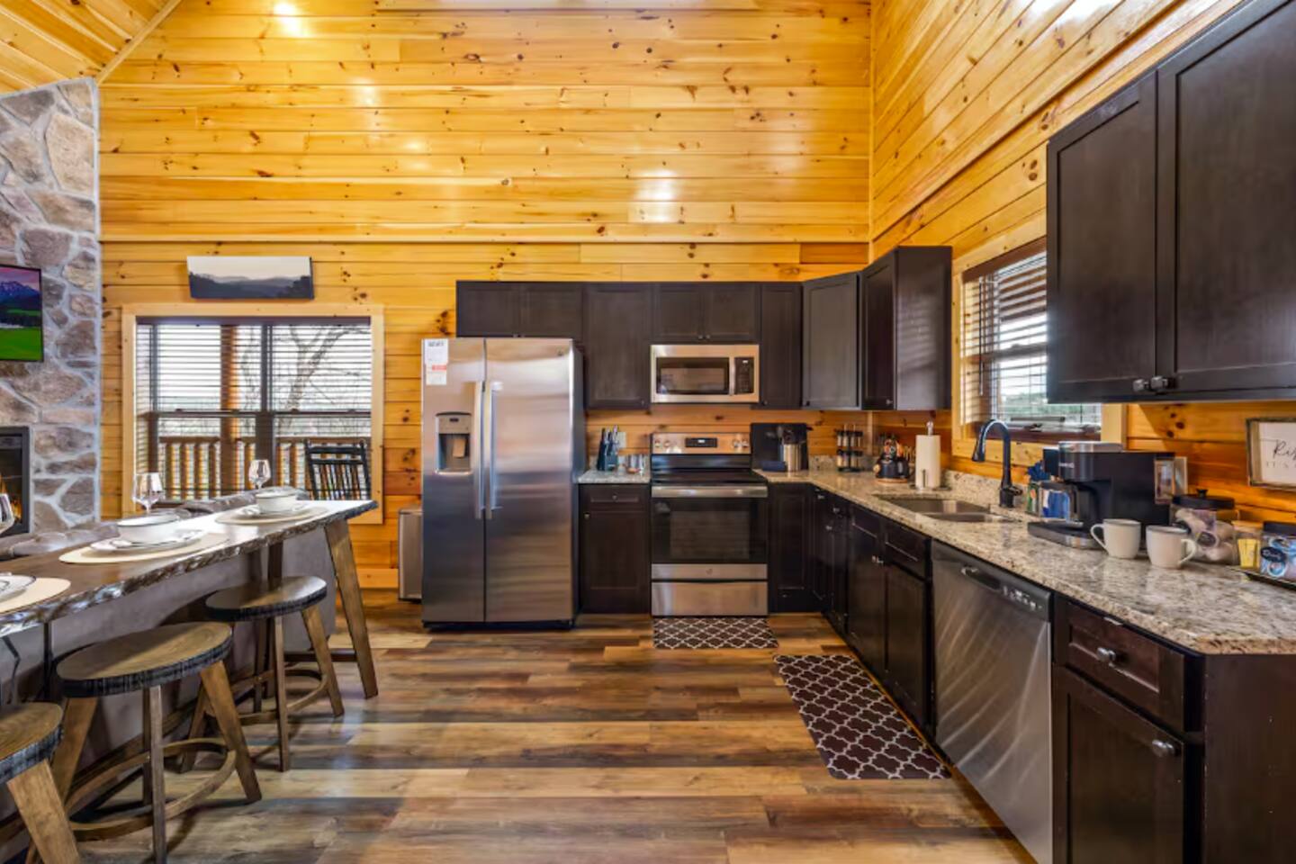You will receive a door code 48hrs prior to arrival for self-check-in. Ample parking space is available in the cabin’s driveway. Please take note that bears are frequently seen in the area and require that you exercise caution. The kitchen is stocked with everything you may need. This includes coffee makers, crock pot, blender, toaster oven, oven, cook top, microwave, dishwasher, refrigerator, pots/pans, strainer, dishes, glasses, utensils... To access the pool, you will need a code for the pool door. The code is 9876. Casa Verde by Red Glider Getaways