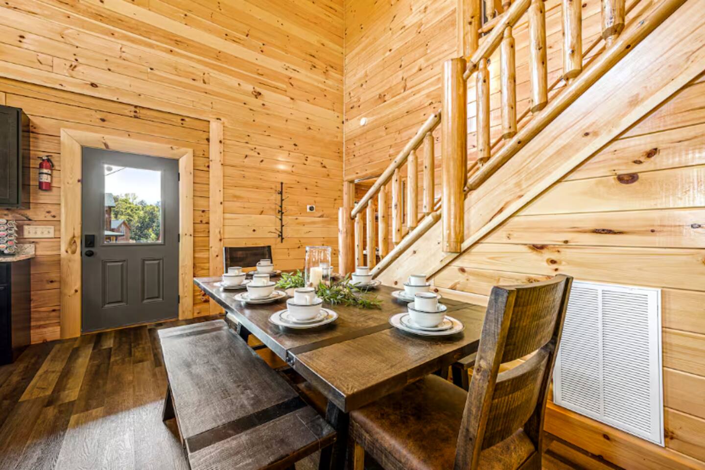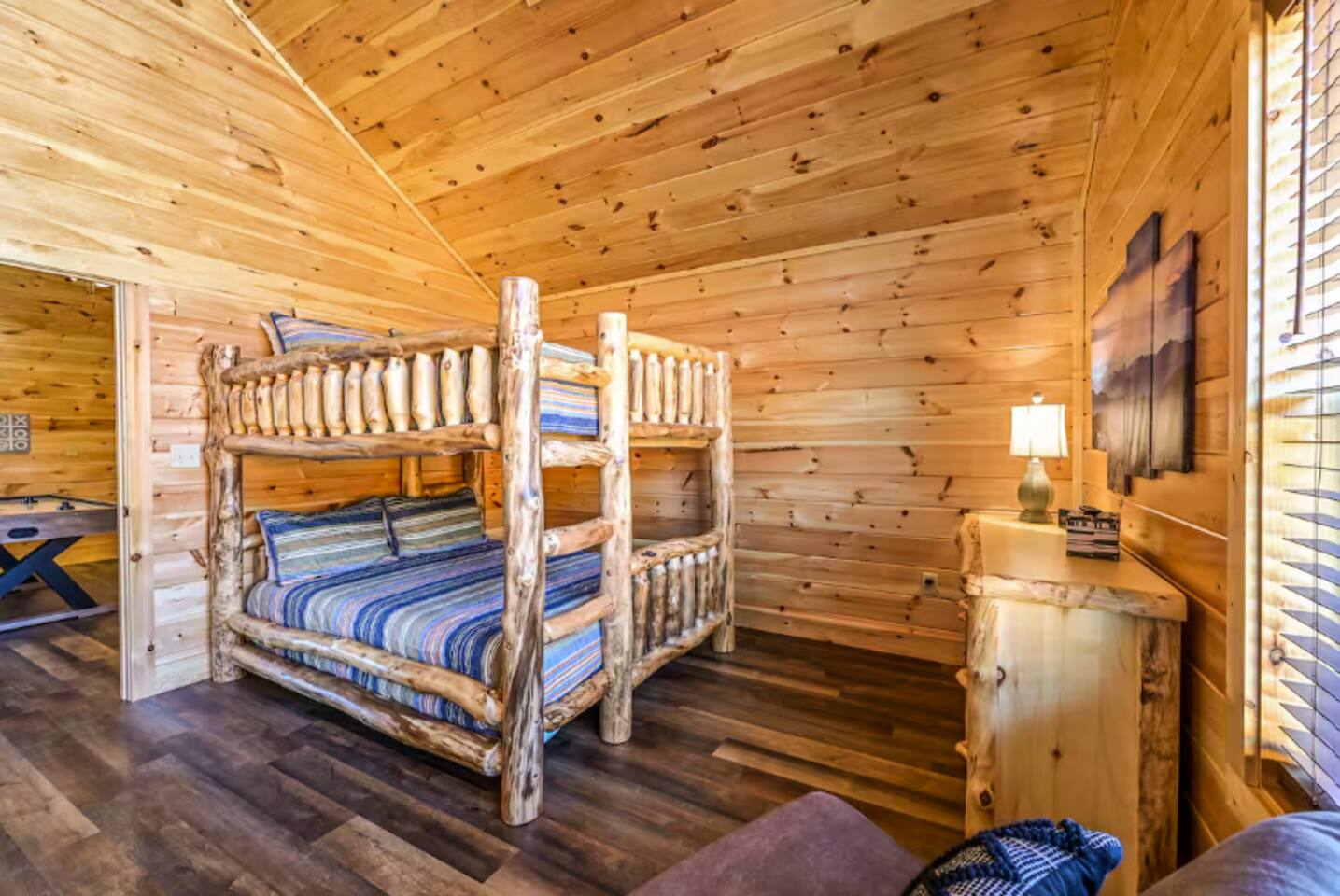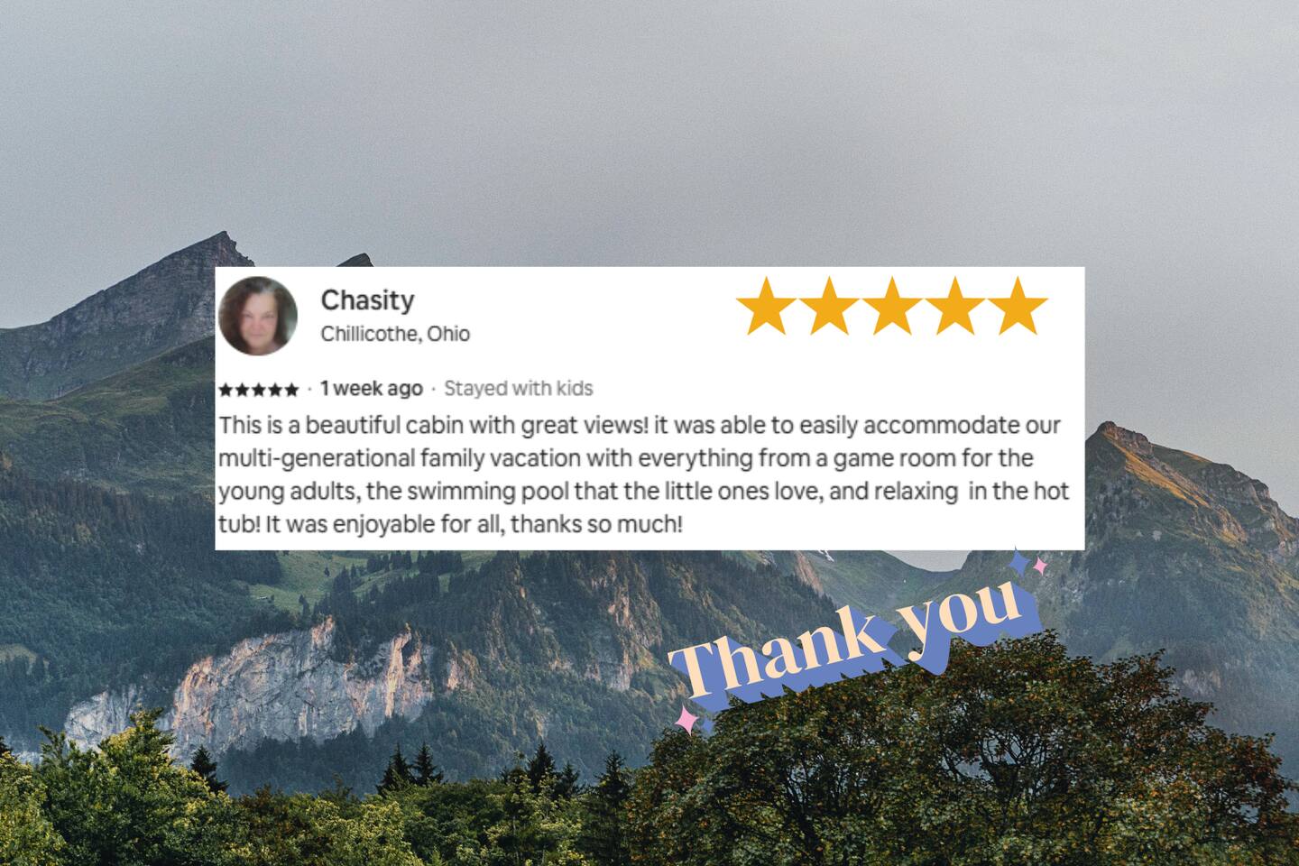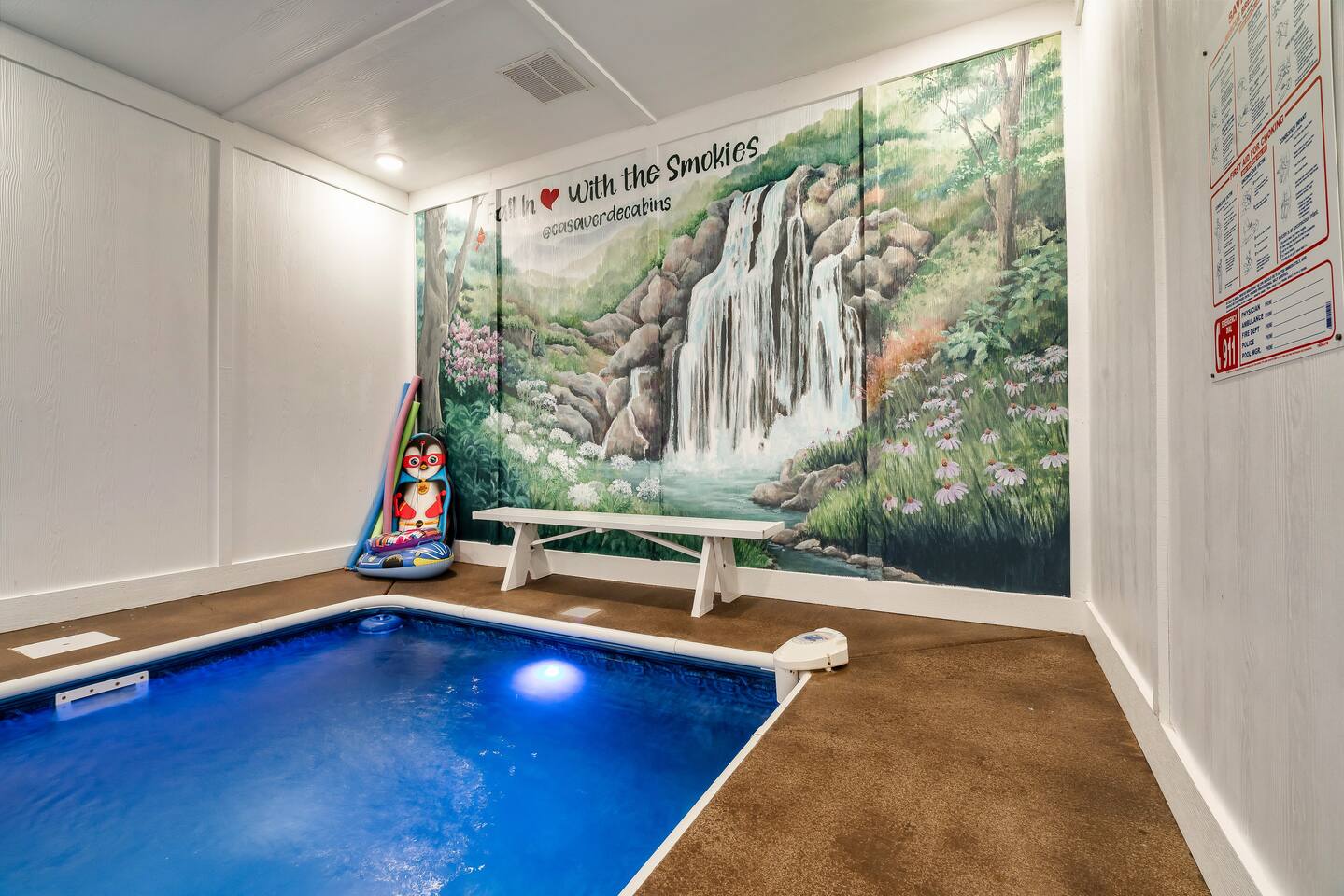 Why should you choose Casa Verde? 1. This is a brand new cabin with a large 16 x 8 indoor heated pool. Always heated to 84 degrees. 2. One of the only cabins that looks out over the parkway with an indoor pool. Enjoy the amazing views of the city lights while cooking on the grill. 3. An amazing location, you can't get any closer to the parkway.. surrounded by million dollar homes. 4. Kids will love the huge game room up stairs. Includes air hockey, arcades and a smart TV. 5. We have a strong history of providing a 5 star experience for our guests.(Over 75 and counting for this cabin).. KEY FEATURES: ☀ Incredibly fast Wi-Fi (300+ Mbps) ☀ 2,400 Square Feet ☀ 16 x 8 Heated Indoor Pool (84 degrees year round). The pool depth is 3 feet. ☀ Pool room has a keyed door code to keep the little ones safe. ☀ Comfortable seating in the pool area. ☀ 3 King Bedrooms with attached ensuite bathrooms. ☀ Queen over Queen bunk beds ☀ Fully equipped kitchen with a full dining area ☀ Cozy and warm living room with electric fireplace ☀ Huge game room with arcades and a full size air hockey table. ☀ Private hot tub (5 person) secluded from neighbors with patio lights. ☀ 6 Large smart TVs, bring your own logins. ☀ Stackable washer / dryer ☀ Room to park 3 cars in front of the home. Here Are A Few Kind Words From Our Past Guests: "Loved every minute at this cabin! Easy to find, short drive to every attraction. We enjoyed getting in the heated pool and hot tub every night! Kids also had a ball playing air hockey. The host was amazing and very helpful! We will be booking here in the future." - Heidi "Our family enjoyed our stayed. The location was great and was within 20 minutes of everywhere we wanted to visit. The listing was just as described and the pool and hot tub were both popular amenities. We will stay again!" - Don "Very convenient location. Close to everything. The pool was a favorite with our two grandsons. The lock code on pool door made us at ease . Don’t hesitate to give this one a try." - Shellie ☆☆ POOL ☆☆ The most amazing feature of this cabin can be found on the lower level. The 16 x 8 indoor pool is heated to 84 degrees year round. The pool depth 3 feet deep and pool towels are included. There is also an outdoor style couch in the pool area. ☆☆ BEDROOMS ☆☆ Comfort is second nature to this new cabin with 4 tastefully furnished bedrooms. The 3 king bedrooms have a full bathroom along with your personal smart TV. The first bedroom and second bedrooms are situated on the main level, boasting king-size beds. The third bedroom is located on the second floor and also has a king-size bed. There is also a queen over queen bunk room on the 2nd level. ☆☆ BATHROOMS ☆☆ Four spa-like full bathrooms are appointed to the bedrooms for your privacy and convenience. All bathrooms are stocked with towels and hand soap. ☆☆ KITCHEN ☆☆ The main floor of the house boasts an open-concept layout, featuring a fully stocked kitchen designed to help you prepare delicious home-cooked meals. It includes a coffee maker (both K-cup and drip), slow cooker, blender, oven, stovetop, microwave, dishwasher, refrigerator, pots and pans, strainer, dishes, glasses, and utensils—everything you need to create your next culinary masterpiece. On laid-back days, you can easily warm up leftovers, brew a fresh pot of coffee whenever the mood strikes, and immerse yourself in the tranquility of nature, gazing through the expansive windows that offer a view of the lush forest surrounding the home. The dining area, which flows into the cozy living space, provides ample seating for everyone to enjoy meals and relax together. ☆☆ LIVING ROOM ☆☆ The living room is open to the kitchen and is the perfect place to kick back and relax with the whole family. The comfortable leather sofas, gas fireplace and Smart Roku TV make movie nights extra cozy. Log in to your streaming accounts. Snuggle up with a good book and enjoy the quiet mountain ambiance on chilly evenings. ☆☆ GAME ROOM ☆☆ As you take stairs you will be welcome to a spacious game loft, enjoy your family time with games, favorite shows on a 45” ROKU Smart TV (Bring your own login). ✔ Air Hockey Table ✔ Arcade Games & Board Games ✔ Smart TV (Bring your own Login) ✔ Futon with pullout bed to relax ☆☆ OUTSIDE SPACE ☆☆ The outside deck offers some amazing pirate decor and a great place to relax. Early risers can enjoy their coffee and look for wildlife, and night owls can come out here with a glass of wine or enjoy the bubbling hot tub. Yellow string lights hang over the deck and provide a warm glow after sunset, adding to the beauty of the cabin’s location. ★☆ Book Today & Let Us Take Care Of You In Sevierville! ☆★ *** Pets are not allowed. If you bring a pet you will be charged $200 and will be asked to leave *** *** No Smoking. There will be a $500 fine if found to be in violation ***