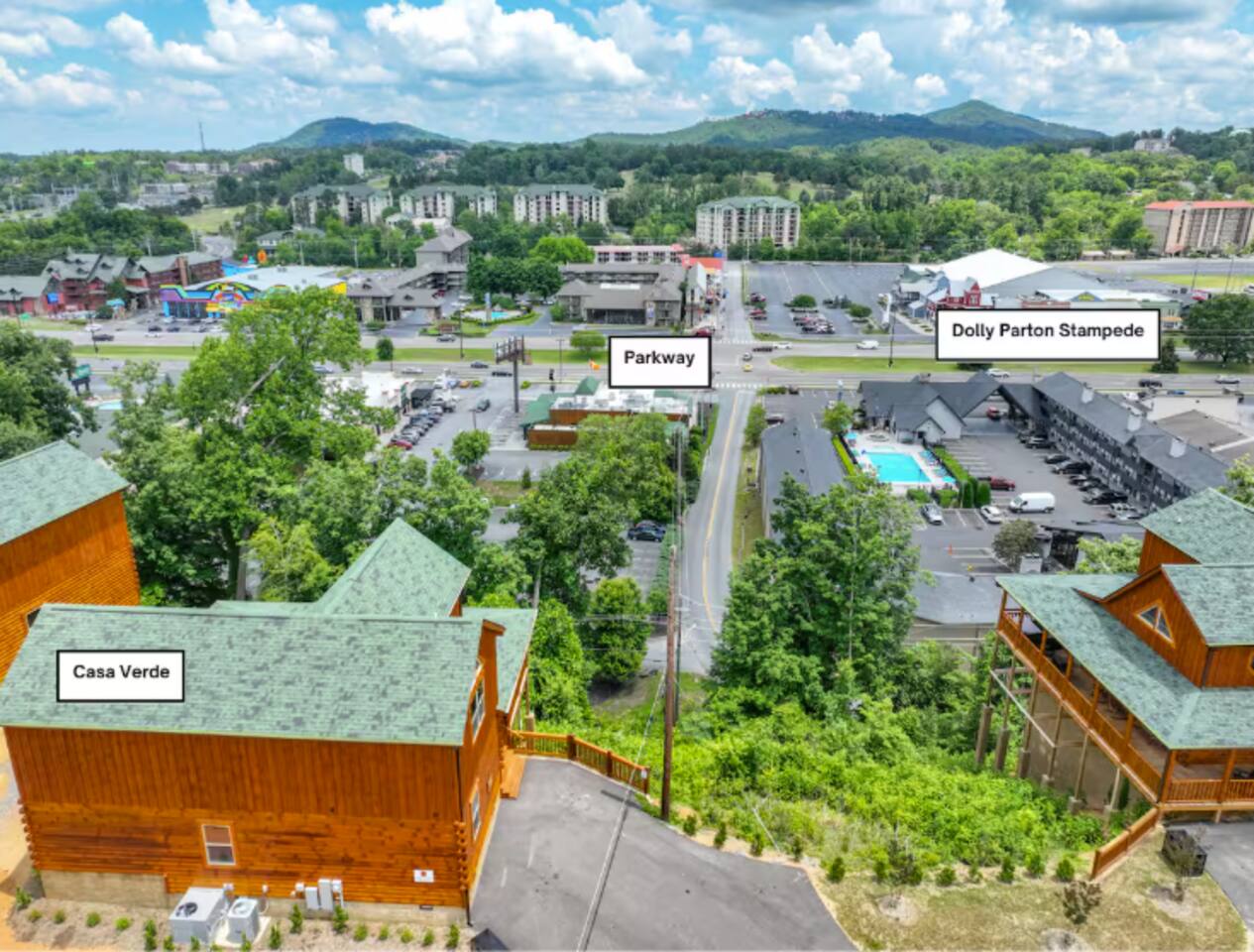 Casa Verde by Red Glider Getaways Welcome to a stunning new home in the heart of Pigeon Forge. If you're sick and tired of old run down cabins then Casa Verde will blow you away. This amazing cabin is the ideal oasis for large families or multiple couples. One of the few homes in Pigeon Forge that overlooks the parkway with an indoor heated pool. Kids love the arcade and air hockey table as well! .25 miles Parkway 3.5 miles Dollywood 7 miles Gatlinburg 🏆 Best of Tennessee 2025 Award WINNER🏆