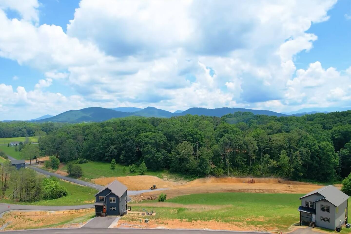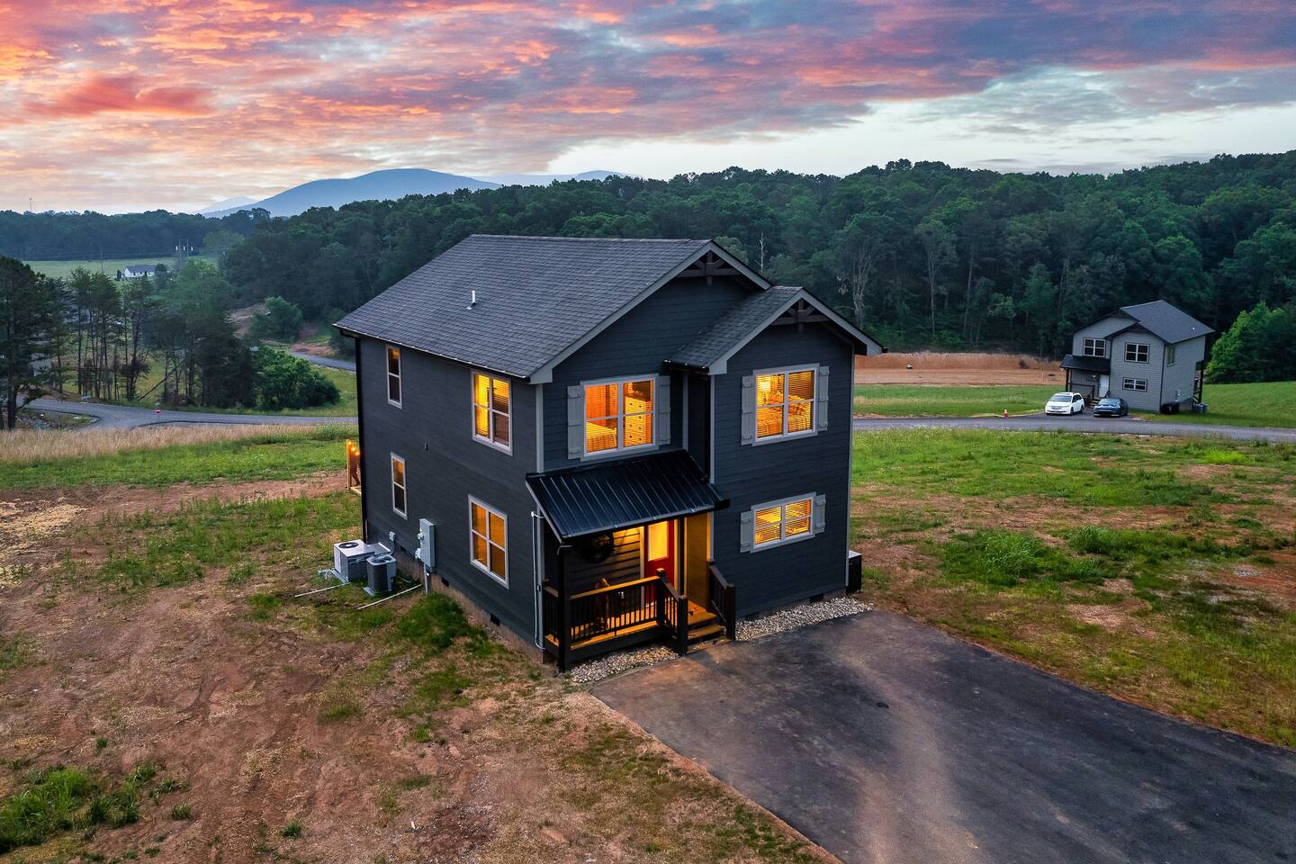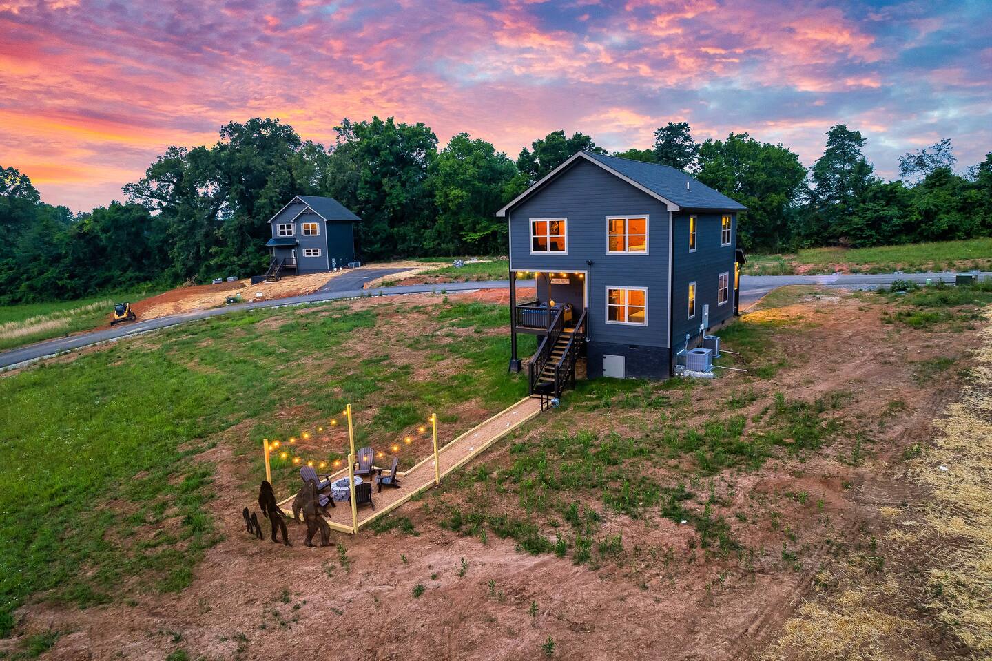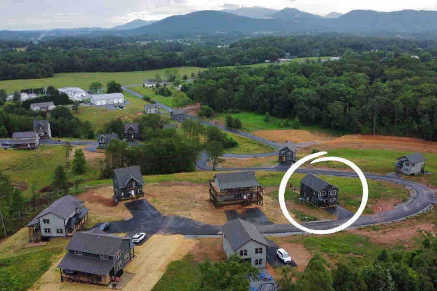 Bigfoot Base Camp is located in a neighborhood. The homes are spaced out with a good amount of distance in-between them. This house site on 1.5 acres of land.