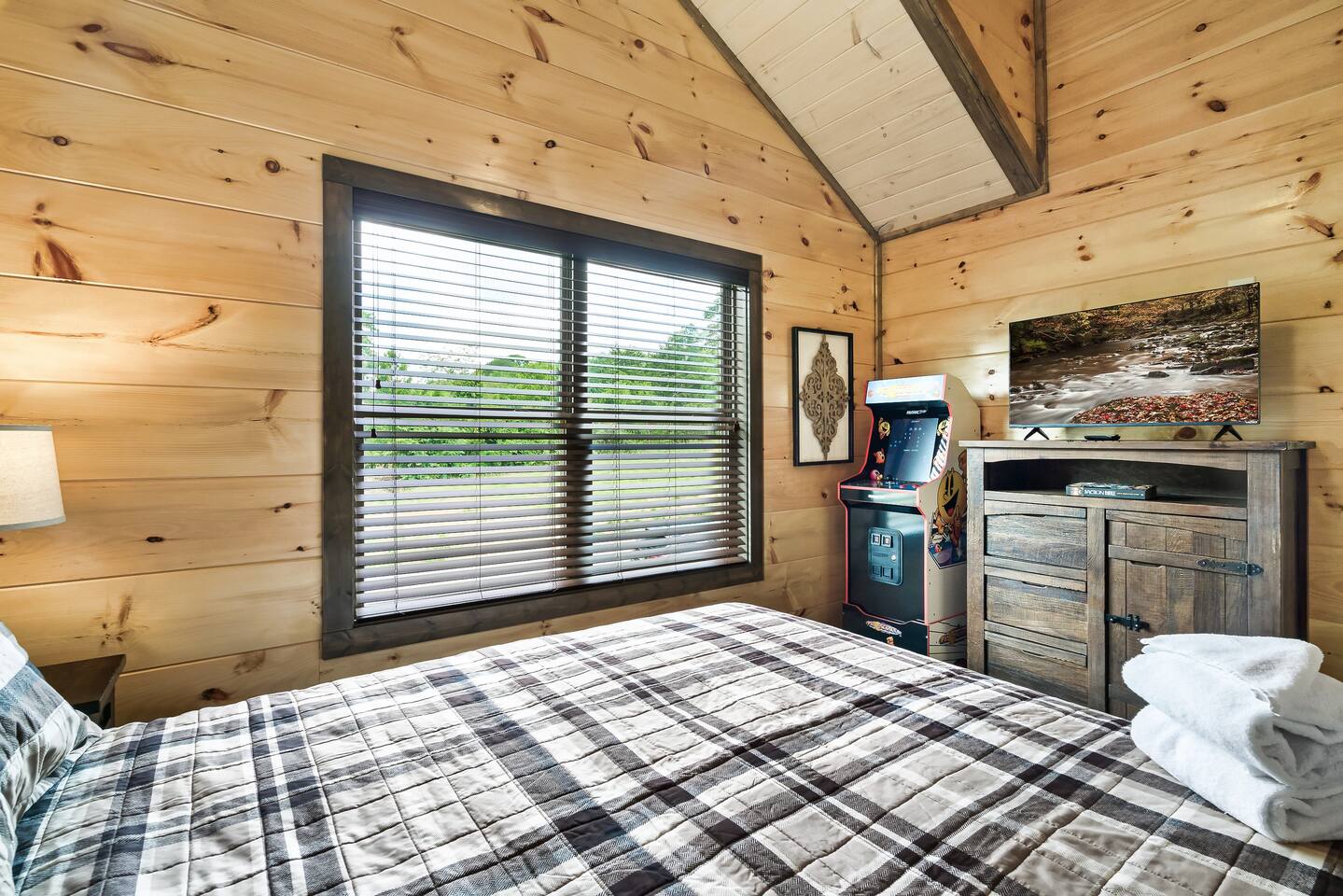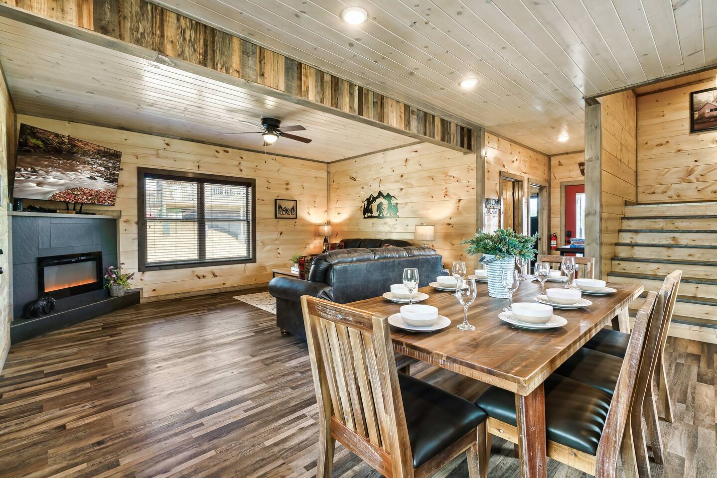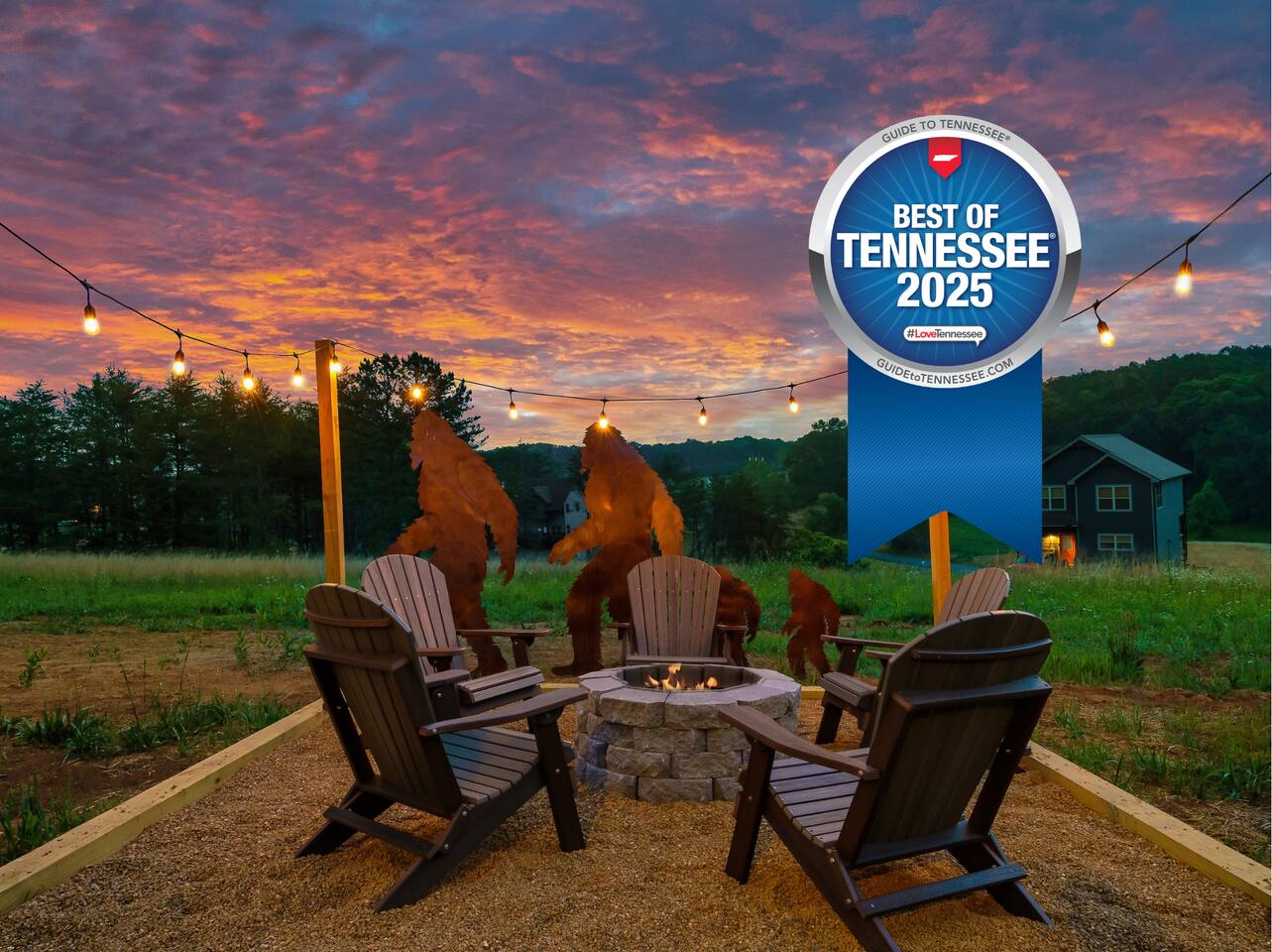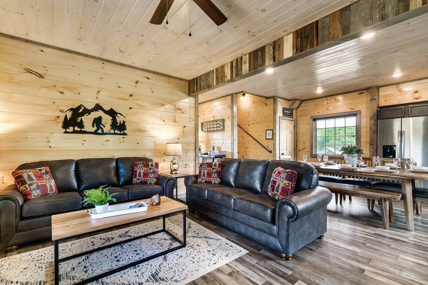 Bigfoot Base Camp by Red Glider Getaways Escape to a Bigfoot-themed mountain retreat full of surprises! Thoughtfully designed with 2 eye-catching murals, playful Bigfoot tracks, fun decor, and unique touches throughout. Enjoy a STADIUM theater, large Fire Pit, Hot Tub with OUTDOOR TV, views, 2 ARCADE games, fast WIFI, and a fully stocked kitchen. Ideal for groups (4 bedrooms, each with a private bath). 9 miles to Dollywood 10 Miles to Pigeon Forge đ Best of Tennessee 2025 Award WINNERđ