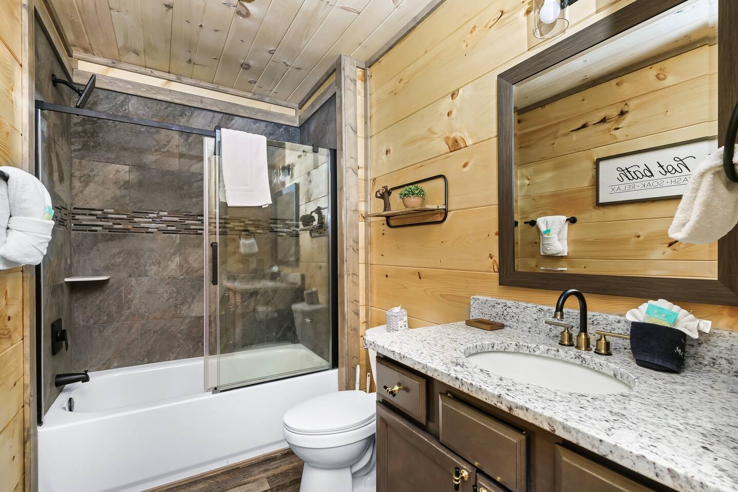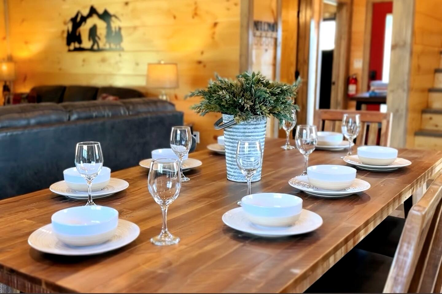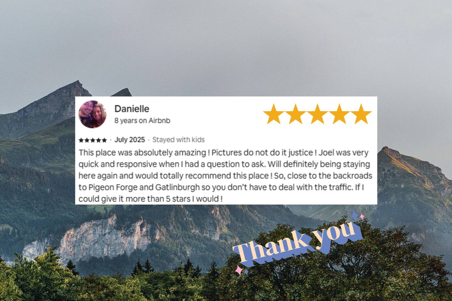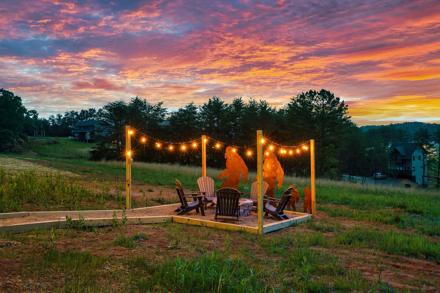 Why should you choose Bigfoot Base Camp? 1. This cabin has an amazing theater with a 65 inch screen, stadium type seating and full surround sound. 2. Do you love Bigfoot? We have tastefully themed this cabin with Bigfoot dĂ©cor, murals, wood carvings, foot steps, 8 foot metal cutouts around the fire pit, coffee mugs, etc. 3. The cabin is BRAND NEW and is furnished with high end furniture, TVs (bring your own streaming logins) and arcades. 4. The views off of the back porch / hot tub make you forget that Pigeon Forge is just a few mins away. There is also a TV on the patio for you to watch while in the hot tub. 5. NO STEEP ROADS!!! 6. We pride ourselves with excellent customer service, resulting in over 75 star reviews from past guests. â High speed WiFi (350+ Mbps) â 2,200 sqr/ft â Brand new Theater (65 inch screen), stadium seating and surround sound! â Great view from the deck â Brand new Hot Tub and outdoor TV â 6 New TVs (65 inch in Living Room and in theater) â Smart TVs in all rooms - Bring your own streaming logins. â 4 Bedrooms (3 King, 1 Queen) - Each BR has a dedicated bathroom. â Washer / Dryer available onsite â Parking for 4 cars â Game area upstairs (huge connect 4, 2 arcade games and board games) â Queen Sofa bed in living room â Charcoal grill â Fully equipped + stocked kitchen Here Are A Few Kind Words From Our Past Guests: "A wonderful place to stay for a quick weekend trip with the family! Loved that all of the roads to the cabin were flat and maintained. Joel was super friendly and fast to respond. He had QR codes all around the house with videos about how to use everything - all houses should have these! The house was SUPER clean and had everything you need. We enjoyed playing on the arcade machines and sitting in the theater to watch a movie. Check in and check out was a breeze. We hope to stay with Joel again for any future trips!" - Kelsey "Bigfoot lodge was amazing! Plenty of space for my family of 10 with many amenities. This place is so well equipped for a long weekend trip or longer and is easy to fun and close to everything. Dollywood was so easy to get to and was perfect with the use of back roads as you were able to skip all the traffic. Joel and his team are so responsive and proactive in offering suggestions for everything! We will be looking to stay here again in the near future! Thanks again!" - Blaine "My stay at Joelâs place was amazing!! I loved everything about their home. Everything was organized and not too far from things to do. Highly recommended!" - Aushai More about the cabin: As you enter, you'll be greeted by the sight of Bigfoot's footprints leading you towards adventure. Follow these tracks, and they will guide you to our inviting fire pit, where you can gather with your friends and family to share stories and roast marshmallows under the starry night sky. The crackling fire provides the perfect backdrop for sharing your own Bigfoot encounters or discussing the mysteries of the forest. But the excitement doesn't stop there. Bigfoot Base Camp offers a plethora of amenities designed to make your stay unforgettable. Step into our state-of-the-art theater room and indulge in a cinematic experience like no other. Sink into plush seating and enjoy your favorite movies or binge-watch your beloved TV shows on a large screen. The immersive sound system will transport you deep into the heart of the wilderness, enhancing your Bigfoot adventure. After a long day of exploration, soothe your muscles and relax in the luxurious hot tub. Immerse yourself in the warm, bubbling water while enjoying the company of friends or family. And to top it off, we've even installed an outdoor TV, so you can catch up on your favorite shows or watch sporting events while indulging in the ultimate relaxation. Bigfoot Base Camp offers breathtaking views of the surrounding natural beauty. Whether you're lounging on the deck or gazing through the large windows, you'll be treated to stunning vistas that showcase the majesty of the Smoky Mountains. Watch as the sunlight dances on the tree canopy or marvel at the vibrant colors of the changing seasons. If you're in the mood for some friendly competition, head to our arcade area where you'll find a variety of games to keep you entertained for hours. Challenge your companions to a round of classic arcade games or try your hand at the latest virtual adventures. There's never a dull moment at Bigfoot Base Camp! Hungry? Our fully stocked kitchen has everything you need to prepare delicious meals for your group. From modern appliances to ample counter space, you'll find all the tools necessary to whip up culinary delights. Share laughter and good times around the spacious dining table as you savor your creations and create lasting memories. Bigfoot Base Camp is thoughtfully designed to accommodate large groups with ease. Each of the four bedrooms is equipped with its own bathroom, ensuring privacy and convenience for all guests. No more waiting in line for the shower or arguing over who gets the ensuite. At Bigfoot Base Camp, everyone can enjoy their own space and relax in comfort. While you'll feel worlds away at Bigfoot Base Camp, it's worth noting that adventure and attractions are just a short distance away. We're conveniently located just 9 miles from the thrill of Dollywood, where you can experience exciting rides, live entertainment, and immerse yourself in the culture of the Smoky Mountains. If shopping is your passion, the Tanger Outlet Mall is also a mere 9 miles away, offering a wide range of stores to satisfy your retail desires. And for those seeking the bustling energy of Gatlinburg, it's a scenic 18-mile drive that will transport you to this vibrant mountain town. At Bigfoot Base Camp by Red Glider Getaways, we invite you to embark on an unforgettable adventure where the legends of Bigfoot come to life. Unleash your inner explorer, create memories that will last a lifetime, and discover the magic of th