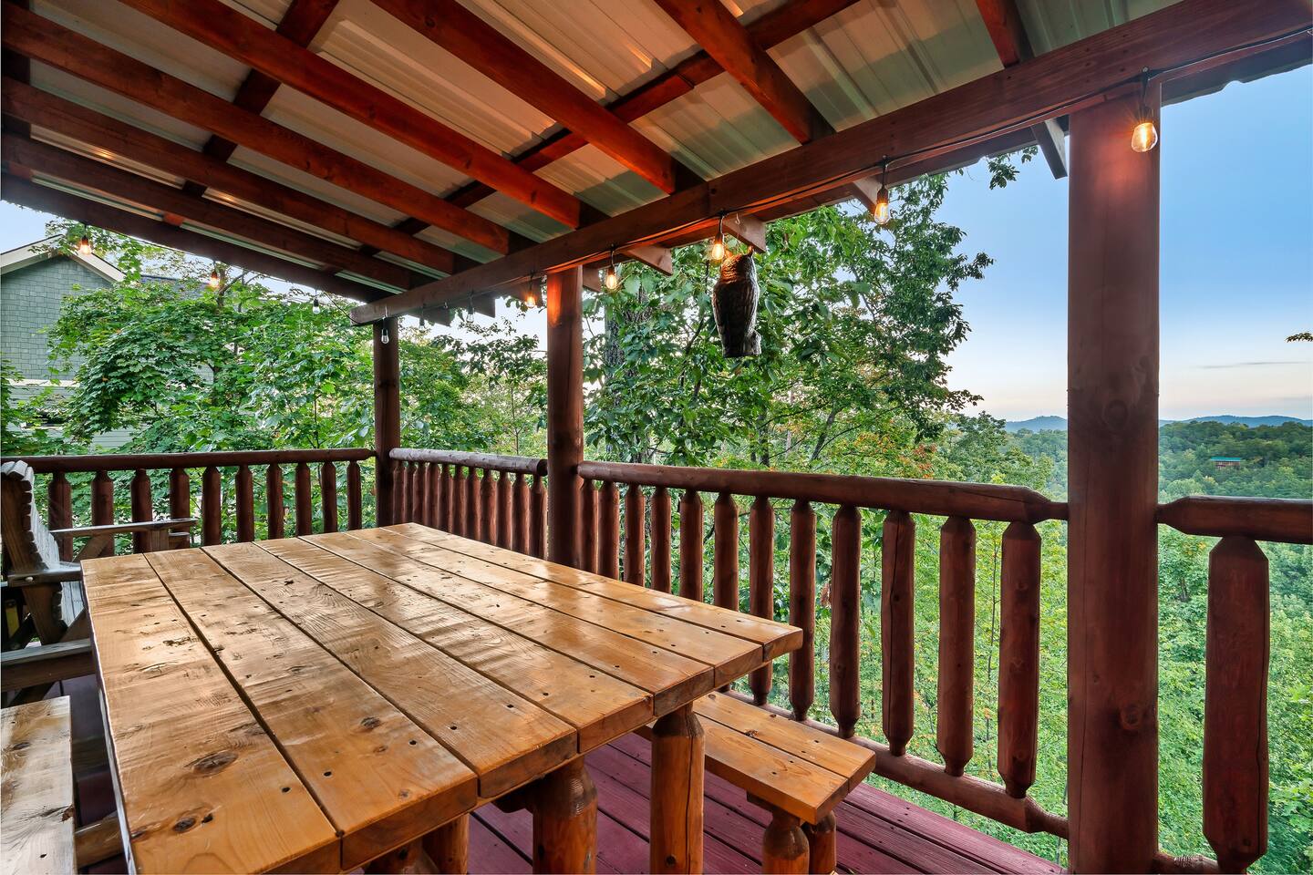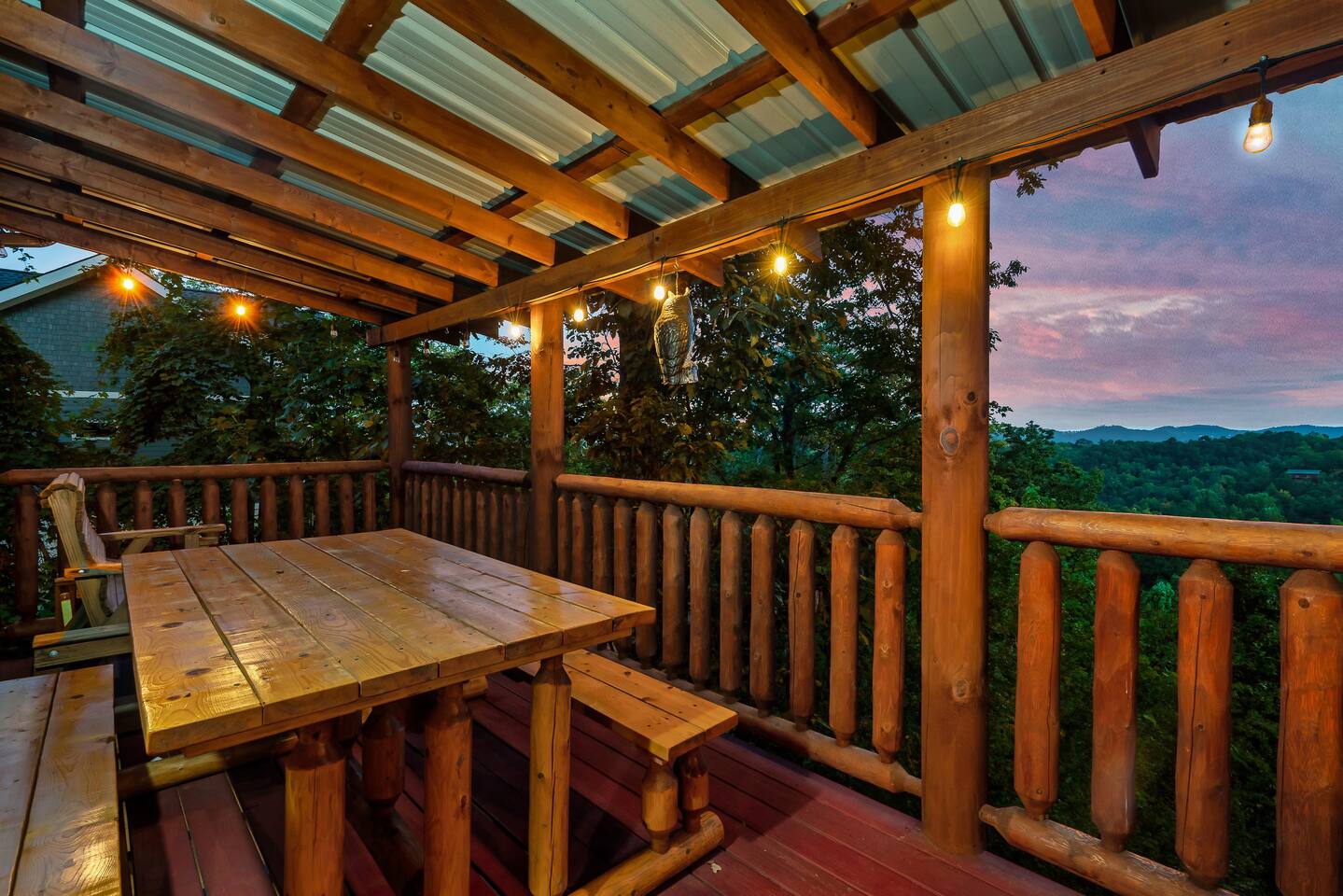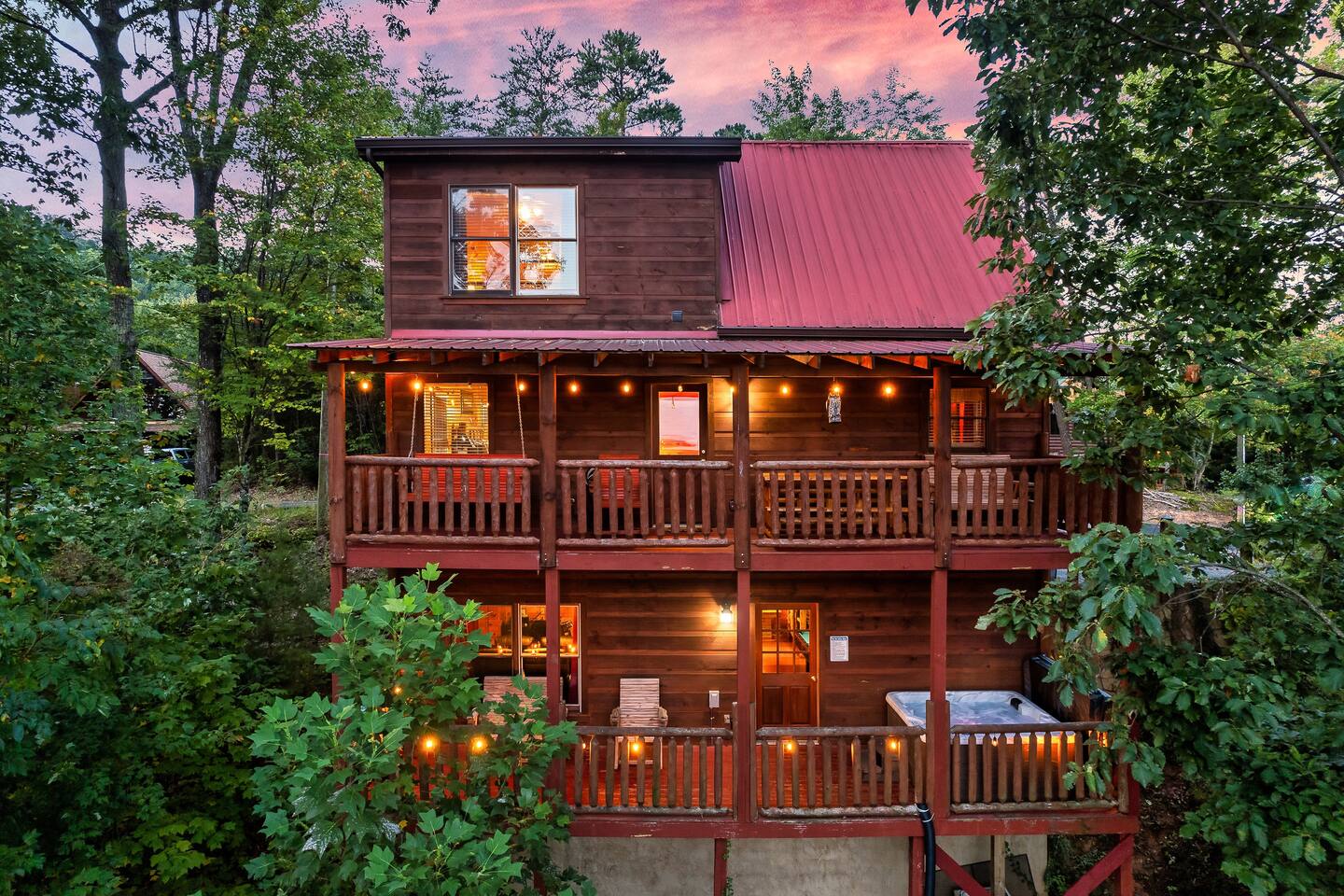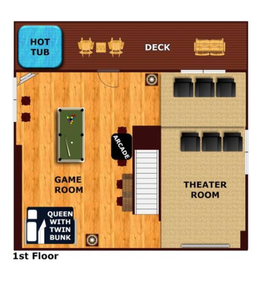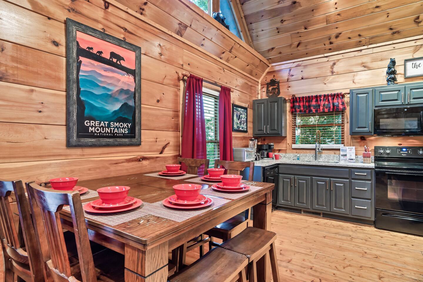 Why should you choose Beary High ? 1. This cabin has an amazing theater with a HUGE 10 foot projection screen and NEW leather recliners. 2. The 2 level deck is covered and has an amazing VIEW. Eat dinner at the covered picnic table and take it in. 3. The kitchen has recently been remodeled. (New countertops, new sink, painted cabinets, etc.) 4. We pride ourselves with excellent customer service, resulting in over 235 5 star reviews from past guests. 5. Located right in between Pigeon Forge and Gatlinburg, very close to both. Dollywood is minutes away. High speed WIFI! (200MBs) â 2,300 square feet â 4 flat screen TVs and a 120" screen in media room, All 5 with Roku or Chromecast - Bring your own streaming logins. â Brand NEW theater with Cable and Chromecast (for streaming all of your apps) â Excellent WIFI throughout. â Kitchen is fully stocked and recently remodeled. â Media room (with 6 leather recliners) â Game room (with NEW pool table and arcade) â Gas fireplace in Living room. â The cabin is semi-private. You can see other cabins from the front porch, but the trees do give you a good amount of privacy and it is a quiet area. The cabin is located on a cul-de-sac and there is room to park 3 cars. â Patio lights have been installed on both levels of the porch â Cabin decorated for Christmas Welcome to Beary High by Red Glider Getaways, your perfect getaway in the majestic Smoky Mountains! Our charming cabin is nestled amidst the mountains, offering breathtaking views and a range of entertainment options. With three levels, this spacious retreat comfortably accommodates up to 8 guests in cozy beds, making it an ideal choice for both romantic escapes and memorable family vacations. There is 1 King bedroom on the main level, 1 King bed in the lofted bedroom and a Queen over Queen bunk bed in the game room on the lowest level. The kids will be delighted with the movie room featuring a massive 120" screen, as well as the arcade and pool table, ensuring endless hours of fun. And for ultimate relaxation, don't miss the soothing hot tub, where you can unwind while taking in the serene surroundings. Stay connected with our high-speed Wi-Fi, boasting a blazing 200MBs for all your browsing needs. The cabin spans over 2,300 square feet and offers modern comforts such as four flat-screen TVs and an impressive 120" screen in the media room, all equipped with Roku for your entertainment pleasure (bring your own streaming logins). You'll enjoy excellent Wi-Fi coverage throughout the cabin, ensuring seamless connectivity. The fully stocked kitchen invites you to prepare delicious meals, while the media room, complete with six plush leather recliners, provides the perfect spot to indulge in your favorite movies or TV shows. The game room features a pool table and arcade games, ensuring everyone in your party has a fantastic time. Warm up by the cozy gas fireplace in the living room during cooler months, creating a cozy ambiance. Beary High offers a semi-private setting, allowing you to appreciate the natural beauty of the surroundings. From the front porch, you'll catch glimpses of other cabins, yet the surrounding trees provide ample privacy, creating a tranquil atmosphere. Nestled on a cul-de-sac, the cabin provides parking space for three cars, and the installation of patio lights on both levels of the porch adds a delightful touch to your evenings. If you visit during the Christmas season, you'll be enchanted by the festive decorations that adorn the cabin. Please note that the fireplace is operational from October through March, offering warmth and coziness during the colder months. It's important to be aware that the roads leading to the cabin are winding and steep, so during the winter season, we recommend an all-wheel drive (AWD) vehicle for your safety and convenience. Choose Beary High for an unforgettable Smoky Mountains experience, where you can create lasting memories, relax in comfort, and immerse yourself in the beauty of nature. Here Are A Few Kind Words From Our Past Guests: "My husband and I stayed at Joelâs cabin for a three day weekend trip and couldnât be more pleased with the experience! Joel was an amazing host and the cabin was stunningâŚnot to mention the view was fabulous! Iâve rented several Airbnb houses in a few states now and this one was my favorite. I absolutely will be renting it again:)" - Lea "Beary High is a wonderful cabin to stay. I went with my wife and son and had a blast. They view is amazing and the cabin has everything you need for a comfortable and fun stay. The home theater downstairs was great to watch movies and relax after a long day of site seeing and running around. Overall, wonderful stay and will consider staying again the future." - Daniel "Great cabin and host. This is what you imagine a Smokey Mountain vacation cabin should be. Theater room, hot tub, and arcade room great for relaxing nights or rainy days. We had no issues and Joel is a wonderful host who communicates to make sure you are happy. The view from the porch swing while drinking morning coffee is beautiful." - Charles "Joel is an amazing host, communication was well above and beyond what I'm used to on Airbnb. The location and amenities are exactly as described and the cabin is beautiful (I was extra partial to the swing on the deck, hot tub, and theater room lol), and the location is perfect for anyone looking to enjoy the national park and Pigeon Forge/Gatlinburg area . We will definitely look here first when we plan our next trip to the smokies! Thanks again!" - Jason