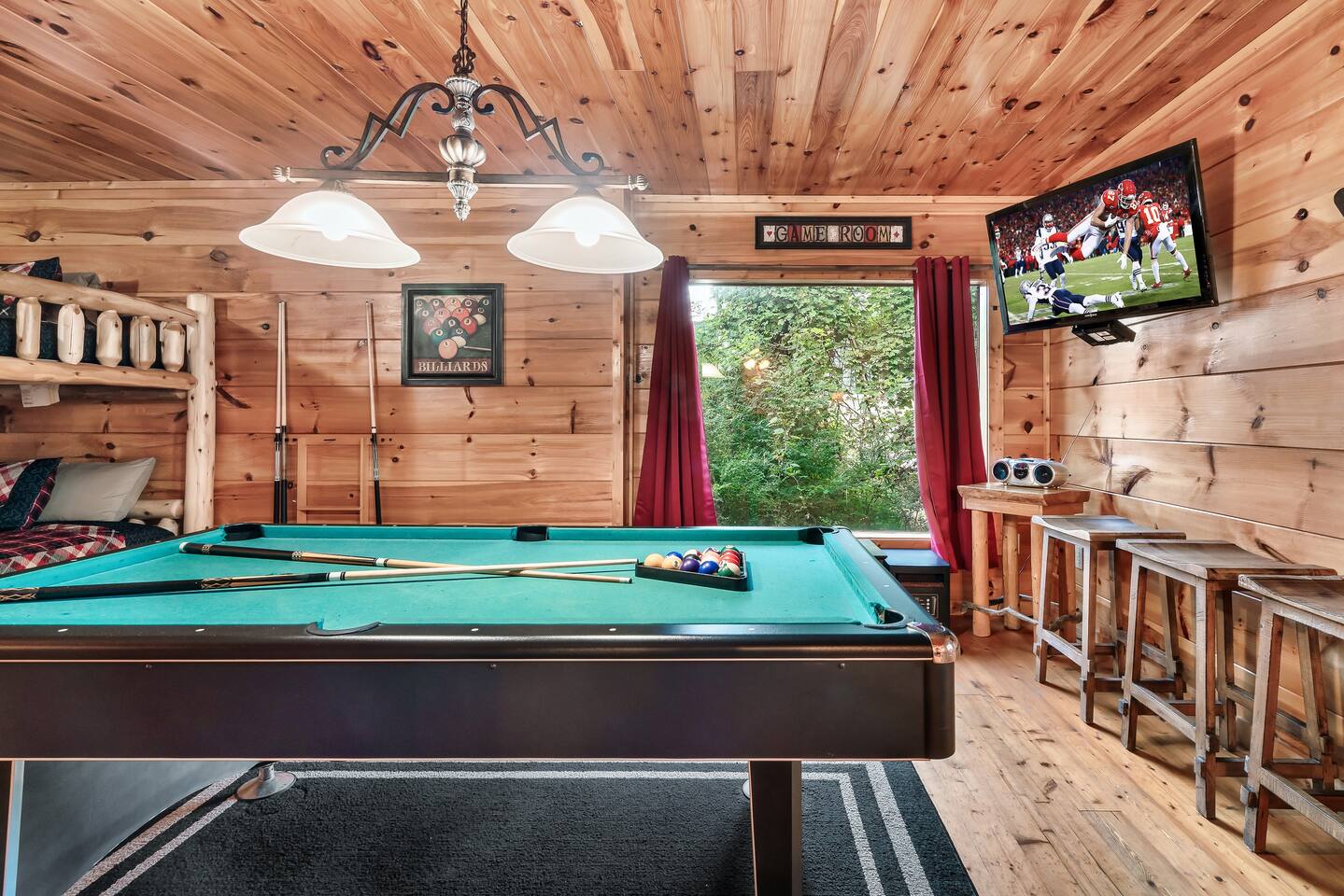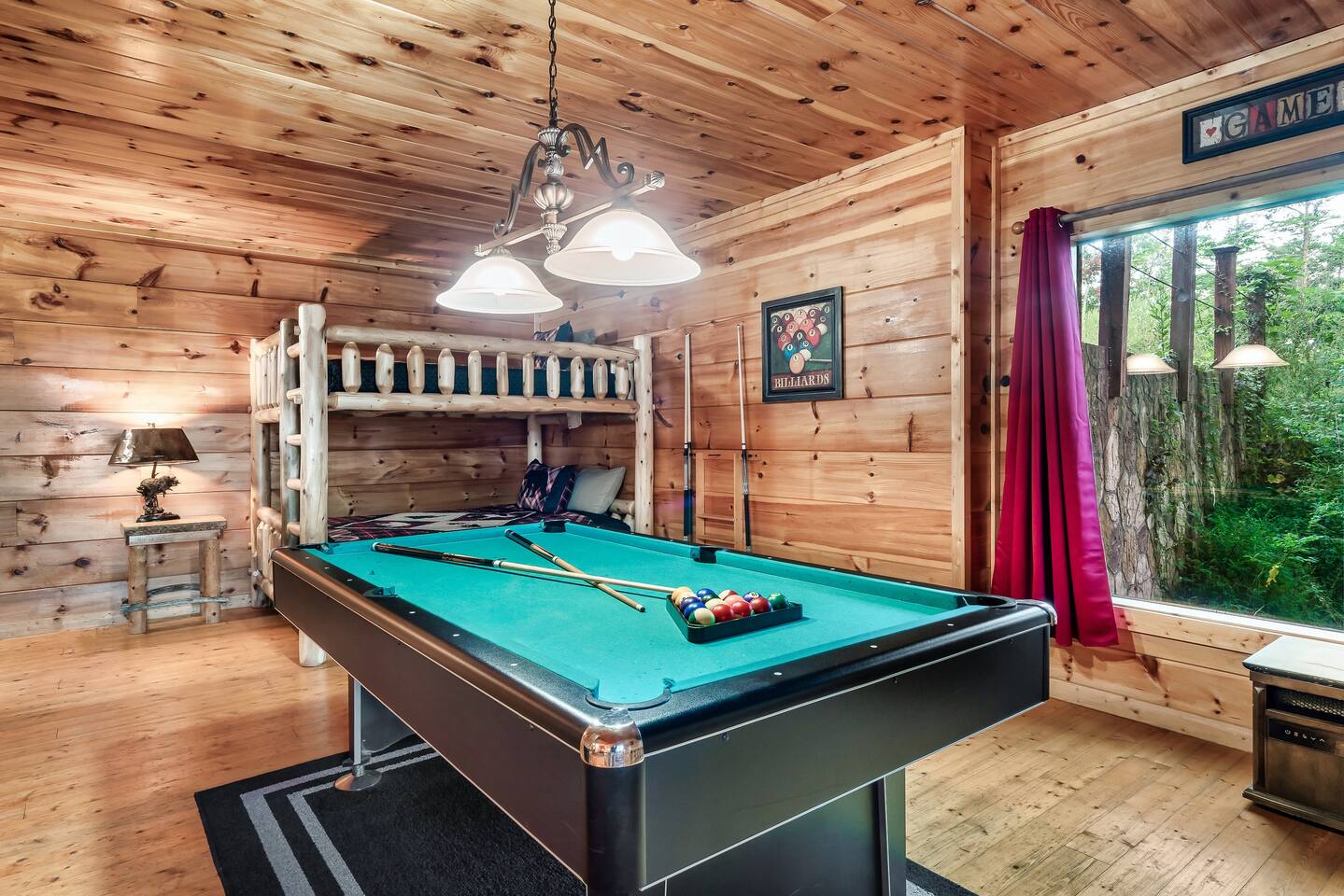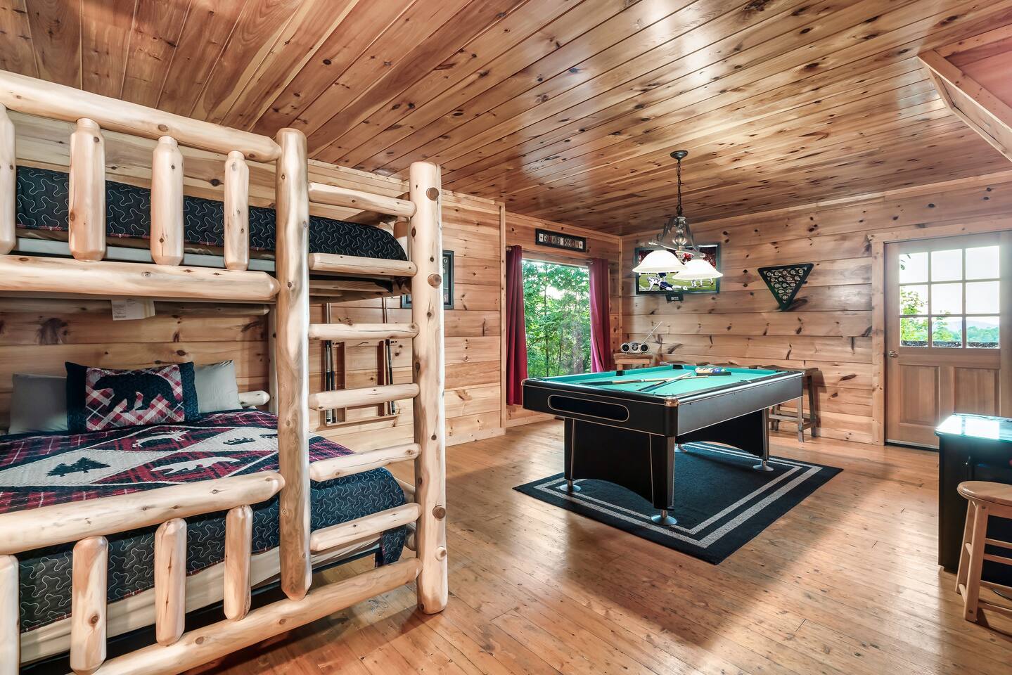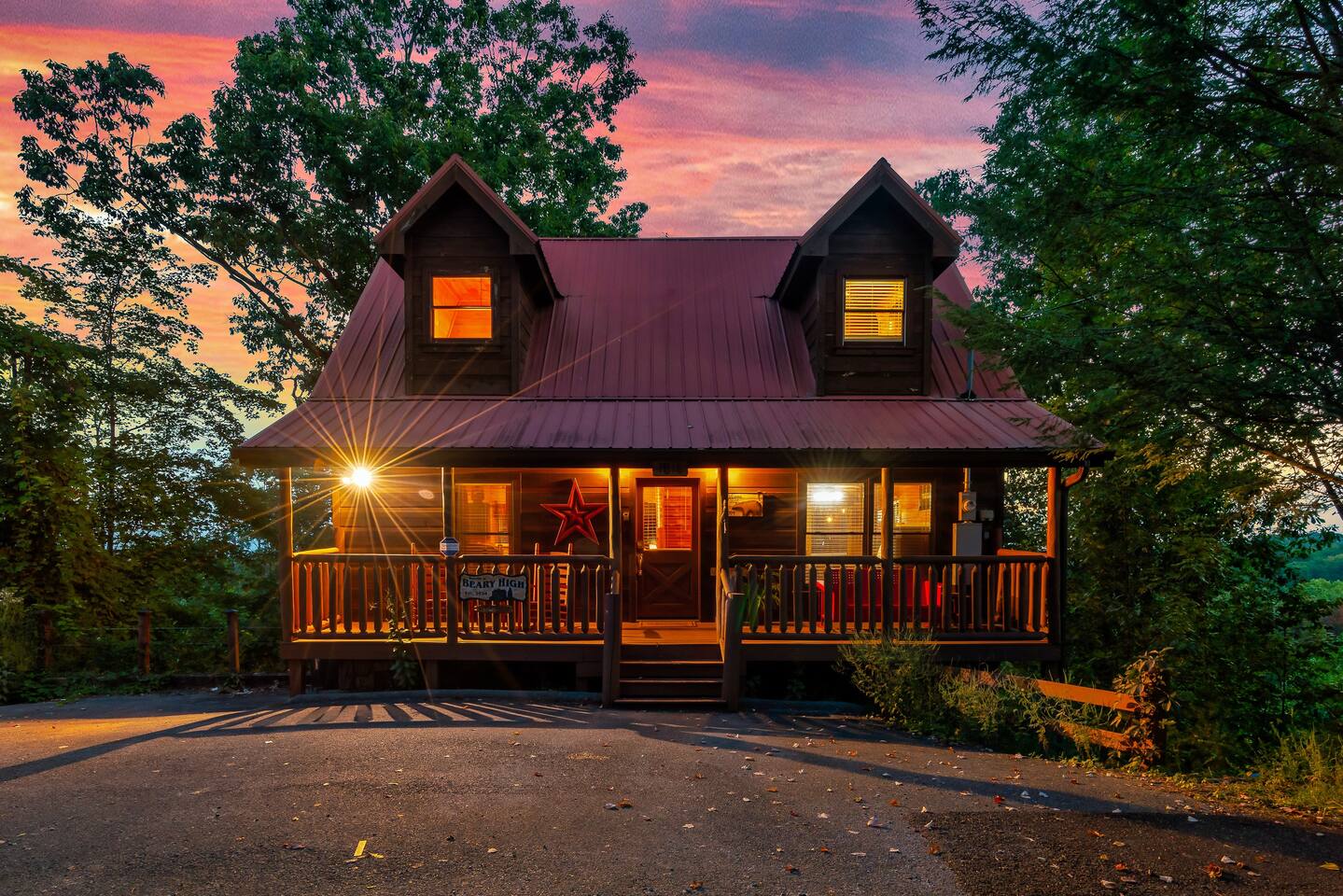 Beary High by Red Glider Getaways This amazing cabin offers a prime location, views, and a theater with new leather chairs. Our 3-level retreat sleeps 8 in beds (2 king beds + queen/queen bunk in game room), perfect for a romantic escape or family getaway. Kids love the 120" screen, arcade, and new pool table. Unwind in the hot tub after a day of fun. Roads are winding/steep and AWD required in winter. 3.5 Miles to Pigeon Forge 4.5 Miles to Gatlinburg đ Best of Tennessee 2025 Award WINNERđ