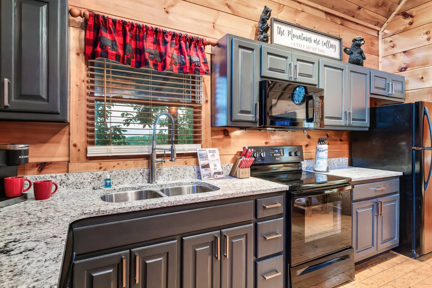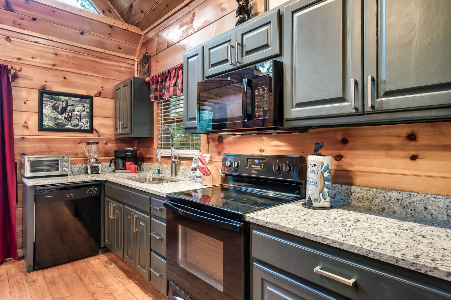 The kitchen is stocked with everything you may need. This includes coffee makers, crock pot, blender, toaster oven, oven, cook top, microwave, dishwasher, refrigerator, pots/pans, strainer, dishes, glasses, utensils... Beary High by Red Glider Getaways
