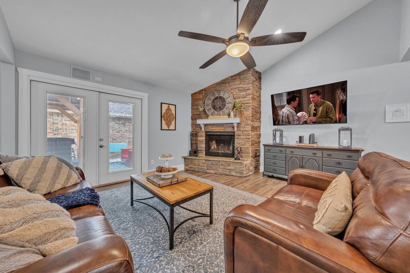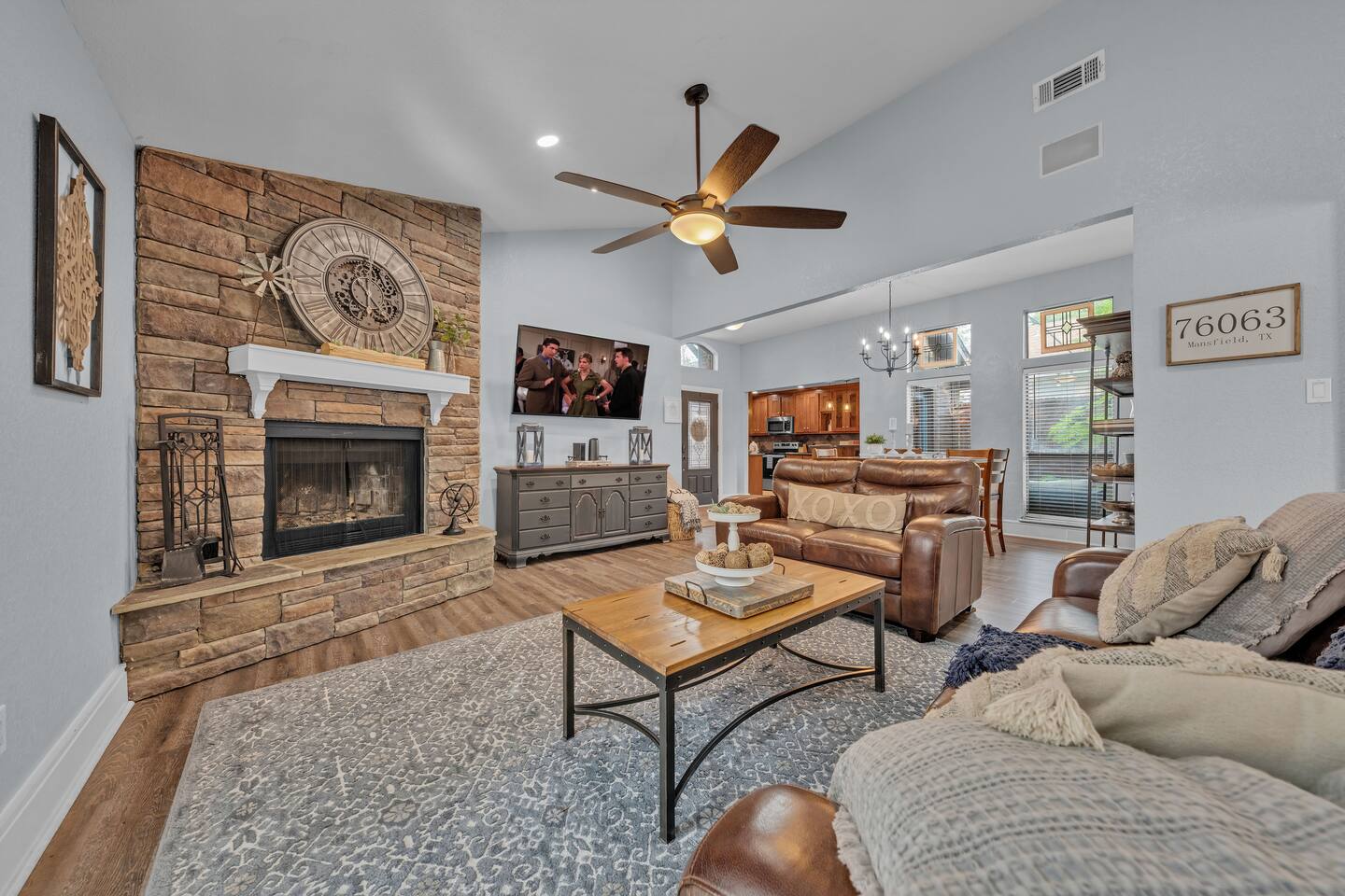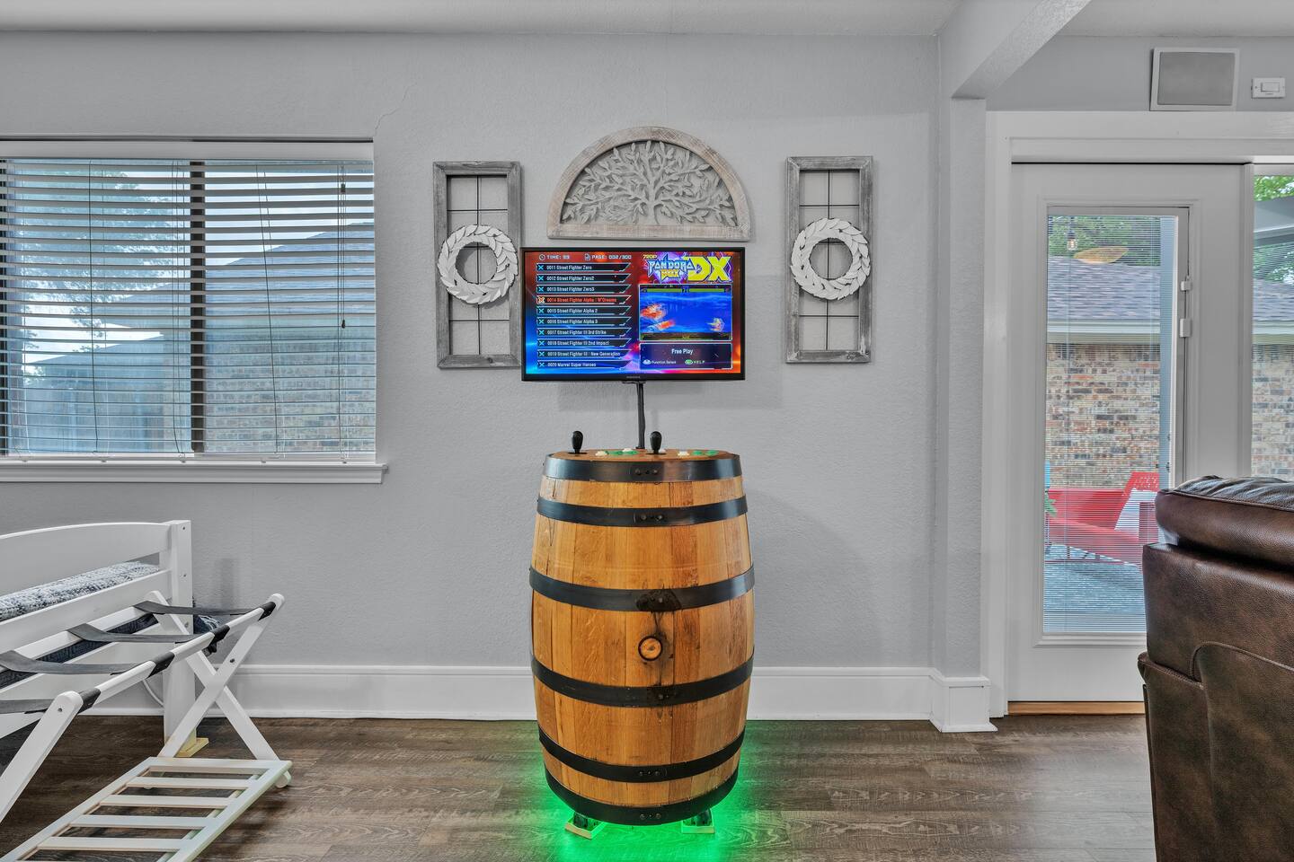 Why should you choose Appleton ? 1. We provide a fully stocked coffee bar. (Coffee, syrups, grinder, frother, etc...) 2. The entire home has been updated and professionally decorated. 3. Enjoy a dip in the private hot tub on those cool nights. 4. There is a full size arcade game (Made out of a whiskey barrel) for you to enjoy! 5. We pride ourselves with excellent customer service, resulting in over 100 5 star reviews from past guests. ** NEW Listing ** KEY FEATURES: ☀ Garage available for use ☀ NEW hot tub! ☀ Incredibly fast Wi-Fi (400+ Mbps) ☀ 2 Comfortable bedrooms; 1 king, 1 queen, and 2 twins (extra room) ☀ 2 Spacious bathrooms: 1 large walk-in shower & separate jetted jacuzzi bath, 1 shower/bathtub combo ☀ Fully stocked coffee bar (K cups, Drip coffee, Creamers/Sugars/Syrups, French Press, Grinder, Water Filter Pitcher, Frother) ☀ Fully equipped kitchen with a full dining area ☀ Cozy and warm living room with leather couches ☀ Whiskey barrel arcade game with 600+ games (Pacman, Galaga, Super Mario Brothers, Contra, etc.) ☀ 3 Large smart TVs (65" in living room) powered by Roku, Cable TV in living room ☀ Grill with private lighted courtyard ☀ 2 Car garage ☀ Decorated for Christmas Here Are A Few Kind Words From Our Past Guests: “This house was perfect for our stay. Great location, clean, quiet, and the coffee bar is a huge plus! We would definitely stay here again..” - Sydney “After staying in local hotels during several visits, it was incredibly gratifying to find Joel’s Airbnb. Truly a home away from home. Oh! And the coffee bar was exceptional! Thank you.” - Kathi “This is a great house and perfect for families traveling to the Mansfield area. Very clean, comfortable beds, and well stocked kitchen. The coffee bar was an added perk and our kids LOVED playing the retro arcade games!! Check in was a breeze and Joel communicated well with us. We will definitely stay again when in the area.” - Amanda “This was a great rental. The house looks great, modern appliances TV's in every room. Easy WIFI access by just scanning a QR code on the wall.. We had family tournaments on the arcade game and used the grill with ease as well. Joel was a great host and everything went extremely smoothly.” - Mike ☆☆ BEDROOMS ☆☆ Comfort is second nature to this updated home with two tastefully furnished bedrooms. As each bedroom has a full bathroom and personal smart TV, you can enjoy unrivaled privacy. The first bedroom boasts a king-size bed. The second bedroom is located in the back of the home and has a queen-size bed. There are two additional twin beds in the bonus room. ☆☆ BATHROOMS ☆☆ Two spa-like full bathrooms are appointed to the bedrooms for your privacy and convenience. The first bathroom boasts a large walk-in shower, as well as a separate jetted spa bath. The second bathroom shares the same hotel-like feel, with a combination bath and shower, as well as a laundry facility you are free to use. Both bathrooms are stocked with towels, hair dryers and hand soap. ☆☆ KITCHEN ☆☆ The house has an open floor plan with a fully equipped kitchen that has all the tools you need to prepare delicious home-cooked meals. This includes coffee makers, a crock pot, blender, oven, cooktop, microwave, dishwasher, refrigerator, pots/pans, strainer, dishes, glasses, utensils and everything you need to make your next meal. Reheat leftovers on lazy days, brew fresh coffee as often as you need it, and let nature envelop your senses as you admire the forest surrounding this extraordinary home through the many large windows. Ample seating is available in the dining area that looks out to the lighted courtyard. ☆☆ LIVING ROOM ☆☆ The living room is open to the kitchen / dining room and is the perfect place to kick back and relax with the whole family. The comfortable sofas and Smart Roku TV make movie nights extra cozy. Watch your favorite TV shows on cable, or just log in to your streaming accounts. Snuggle up with a good book and enjoy the peace and quiet on our leather couches. ☆☆ GAME AREA ☆☆ When you're not shopping or enjoying your activities, feel free to enjoy our brand new Whiskey Barrel arcade. We brought this machine down from Gatlinburg, TN and it is a favorite of all. It boasts 600+ games and up to 2 people can play at the same time. We also have several board games available for you to use as well. ☆☆ OUTSIDE SPACE ☆☆ This home offers two patio areas. The courtyard has a grill and patio furniture for you to enjoy. Night owls can come out here with a glass of wine or enjoy the peacefulness. Yellow string lights hang over the deck and provide a warm glow. ★☆ Book Today & Let Us Take Care Of You In Mansfield! ☆★ Guest Access: Guests of Appleton have access to the entire home and all other amenities inside the 1,600 sq ft, well-equipped house. There are three smart TVs, all of which are enabled with Roku, allowing you to stream your favorite shows when you log in. The living room has access to upgraded cable TV. The Wi-Fi is incredibly fast. You will receive a door code 48hrs prior to arrival for self-check-in. Ample parking space is available in front of the home. You can also park 2 cars in the garage.