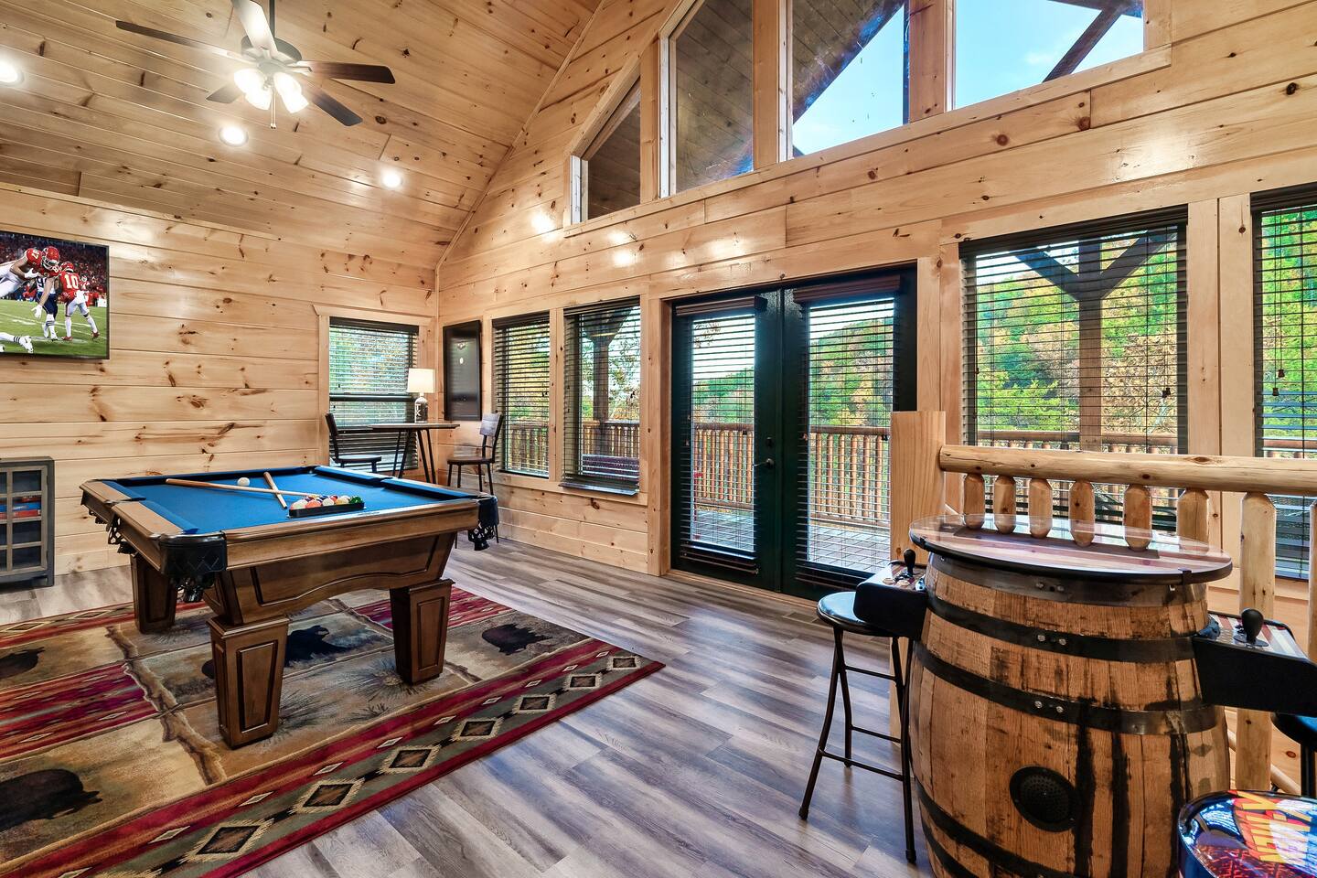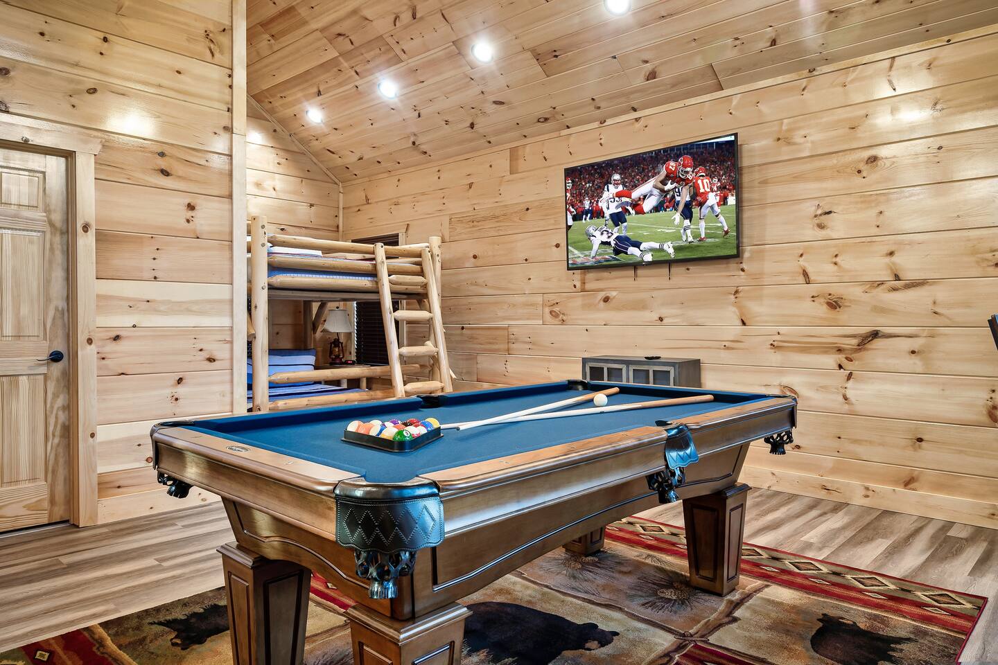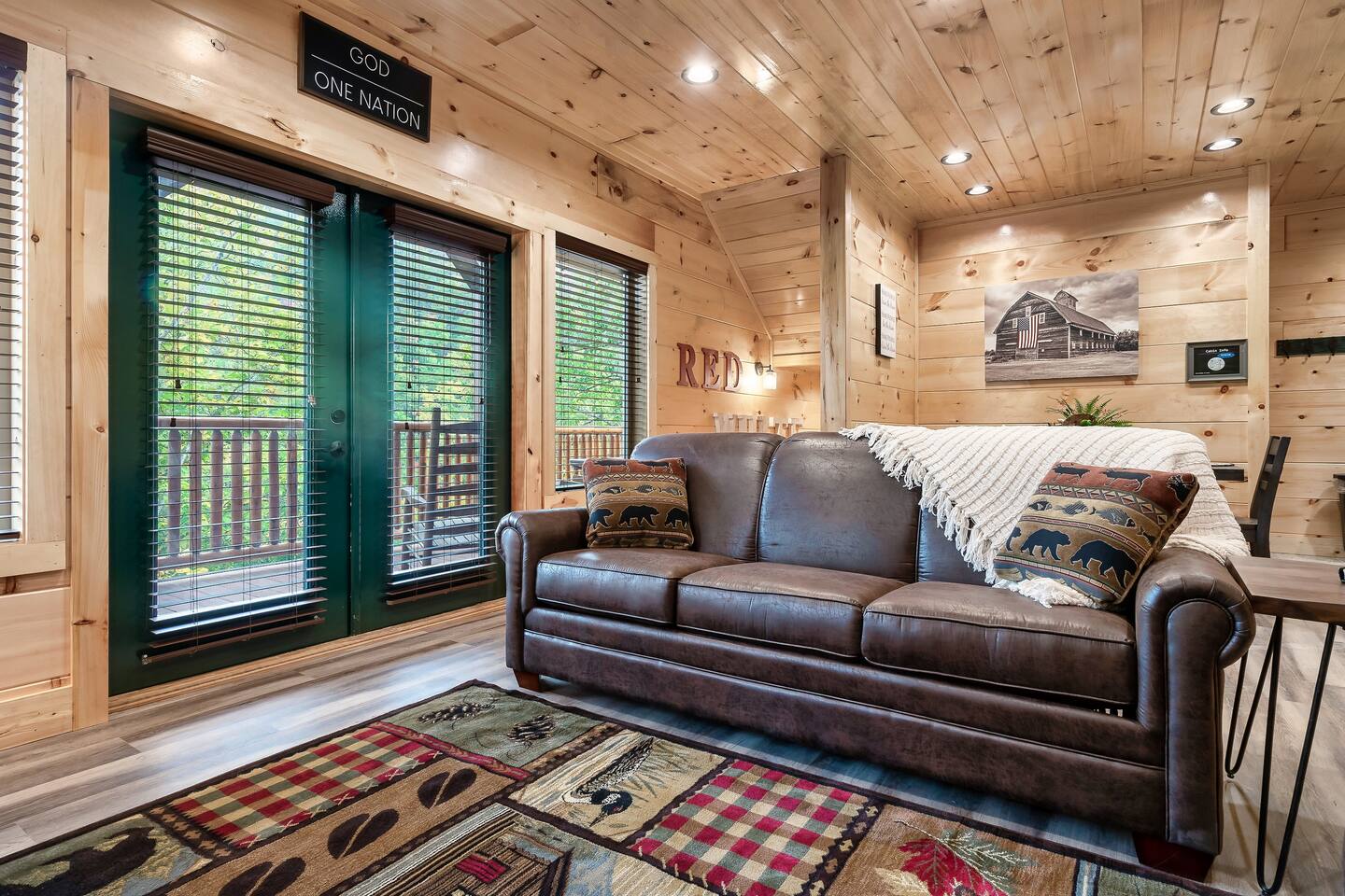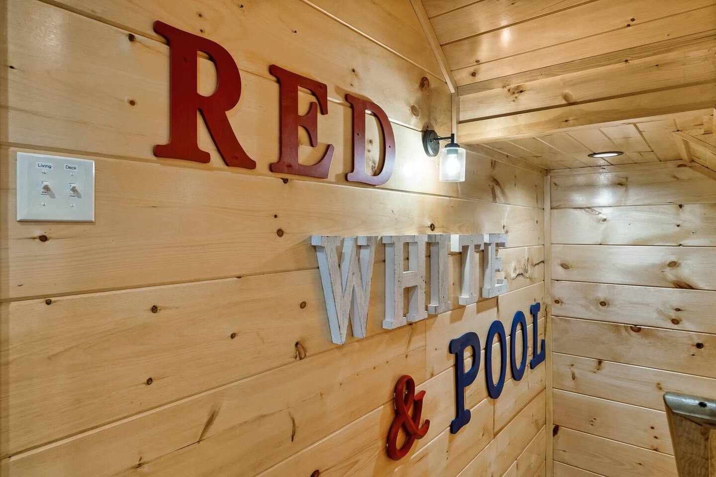 Guests of Red, White and Pool have access to the private hot tub and all other amenities inside the 2,300 square feet, well-equipped cabin. There are four smart TVs, allowing you to stream your favorite shows when you log in. The living room has access to upgraded cable TV. The Wi-Fi is incredibly fast. To access the pool, you will need a code for the pool door. The code is 1776.