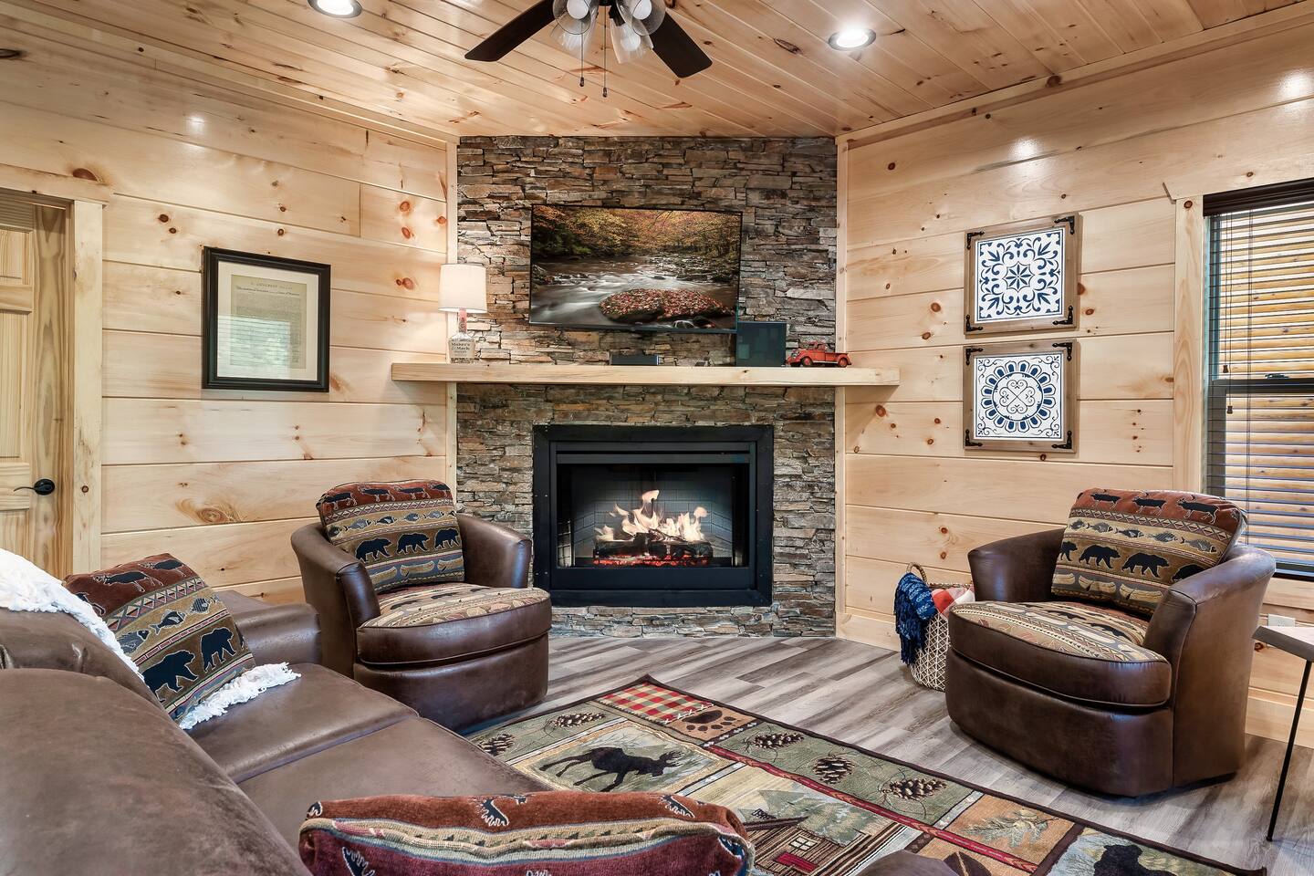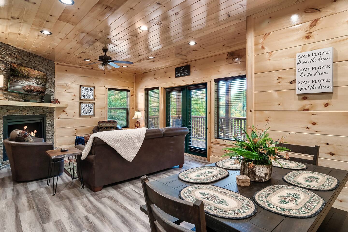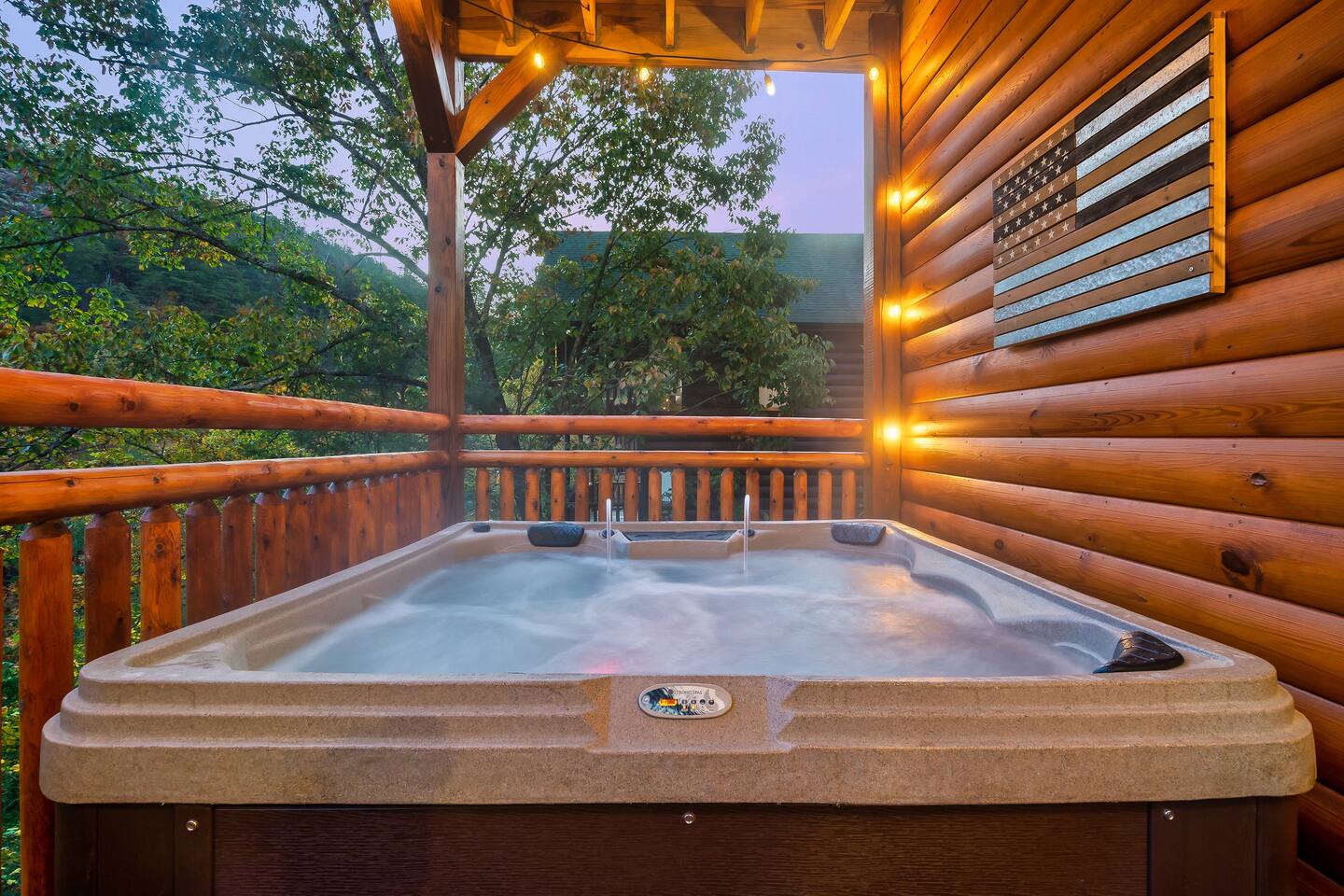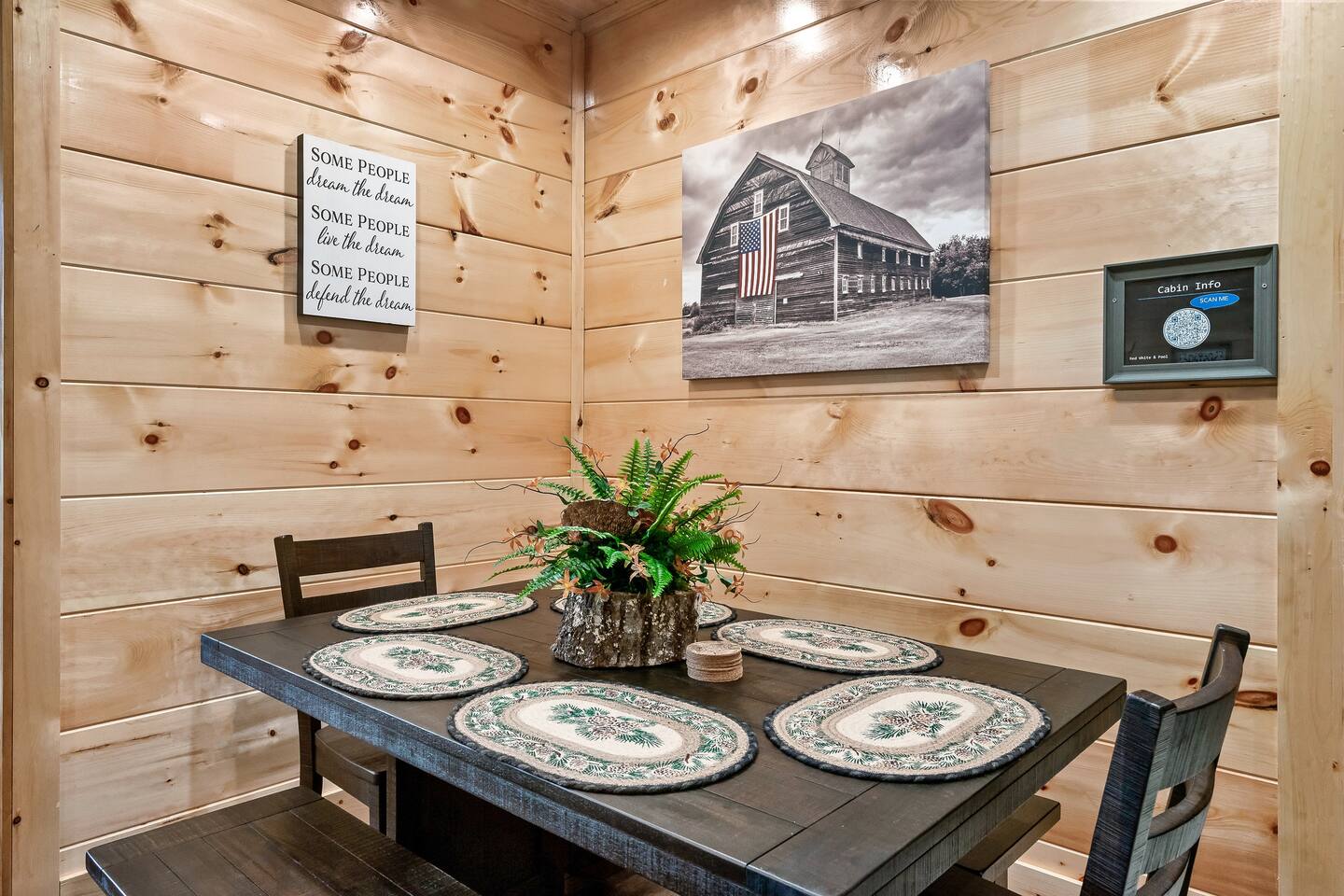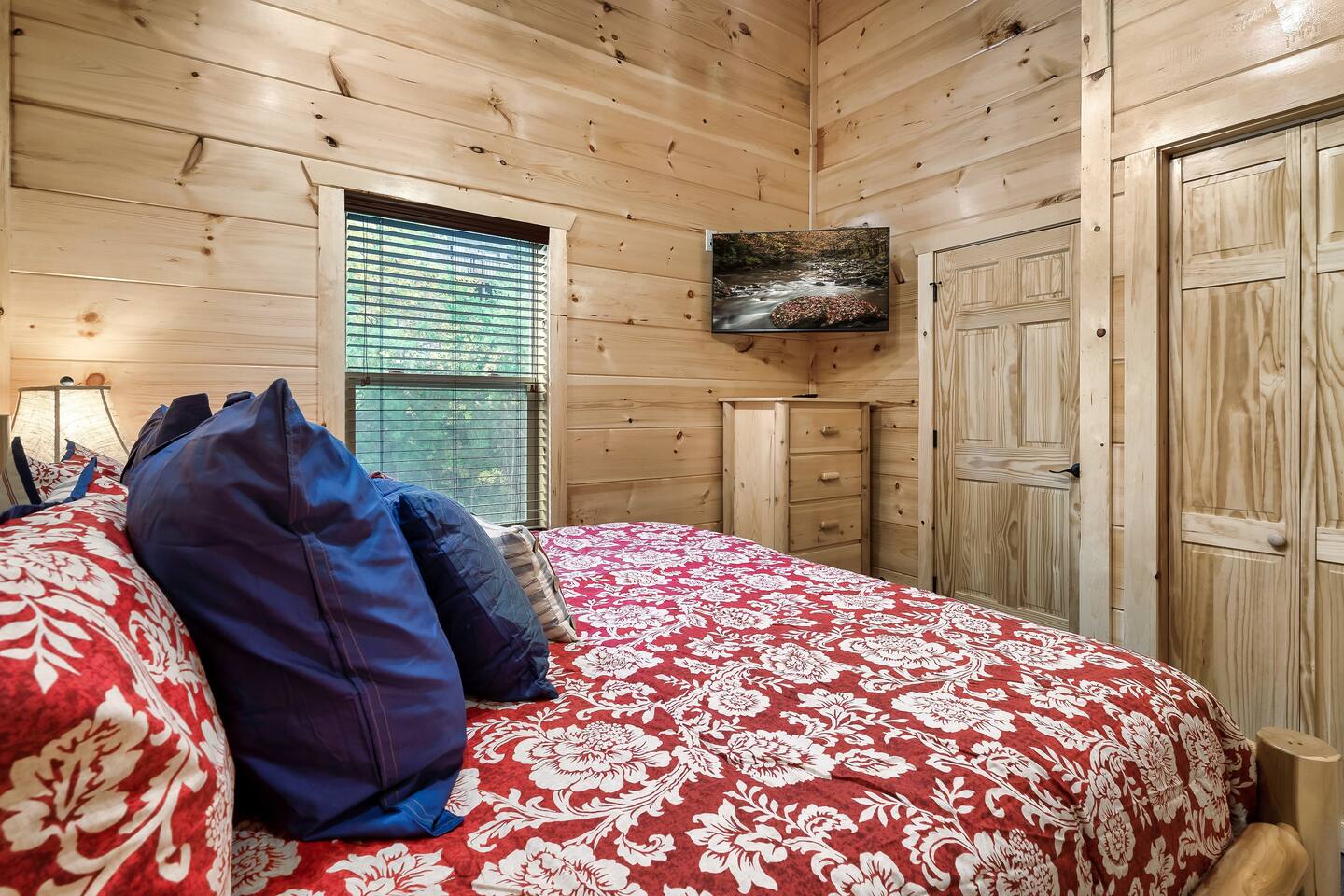 Guests of Red, White and Pool have access to the private hot tub and all other amenities inside the 2,300 square feet, well-equipped cabin. There are four smart TVs, allowing you to stream your favorite shows when you log in. The living room has access to upgraded cable TV. The Wi-Fi is incredibly fast. To access the pool, you will need a code for the pool door. The code is 1776.