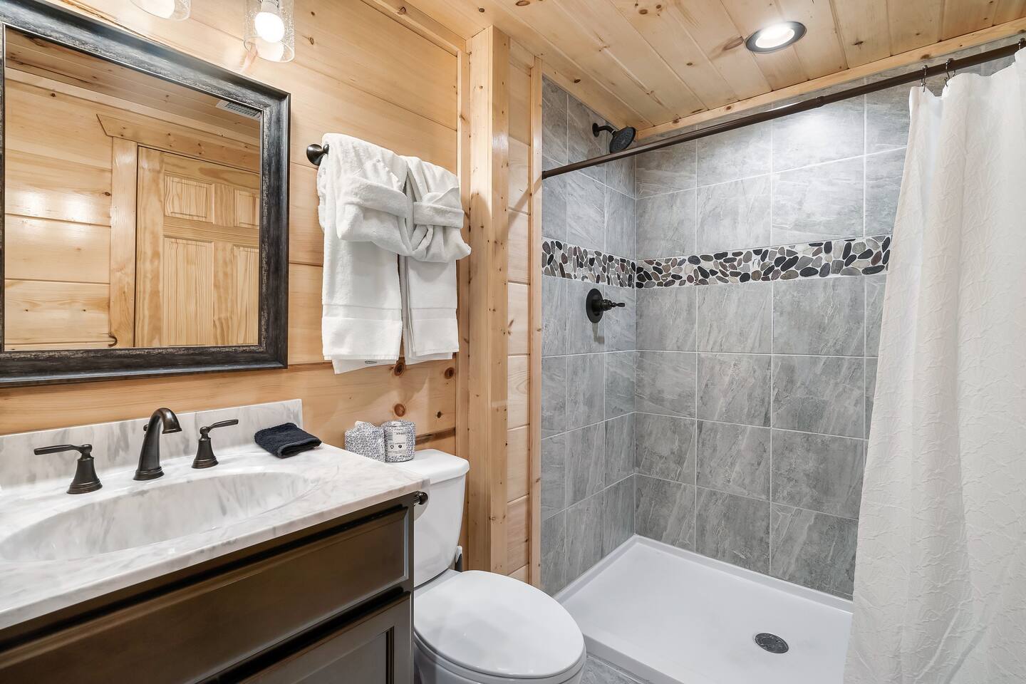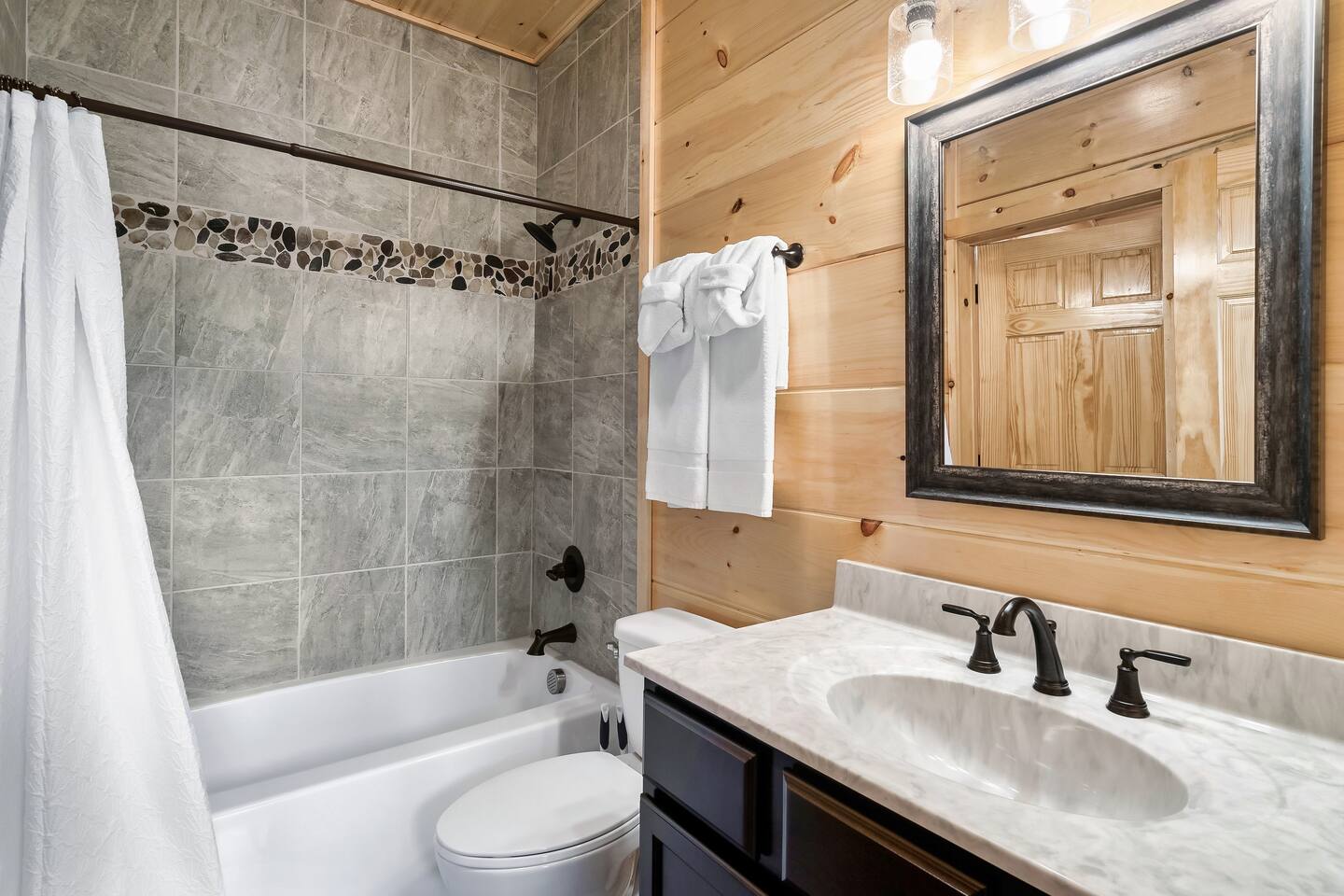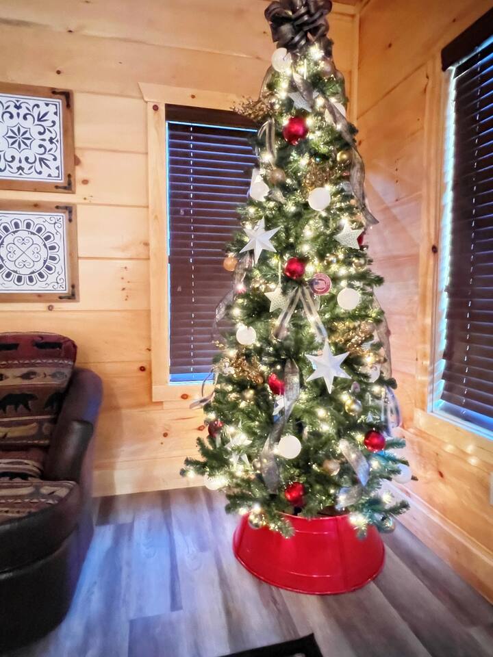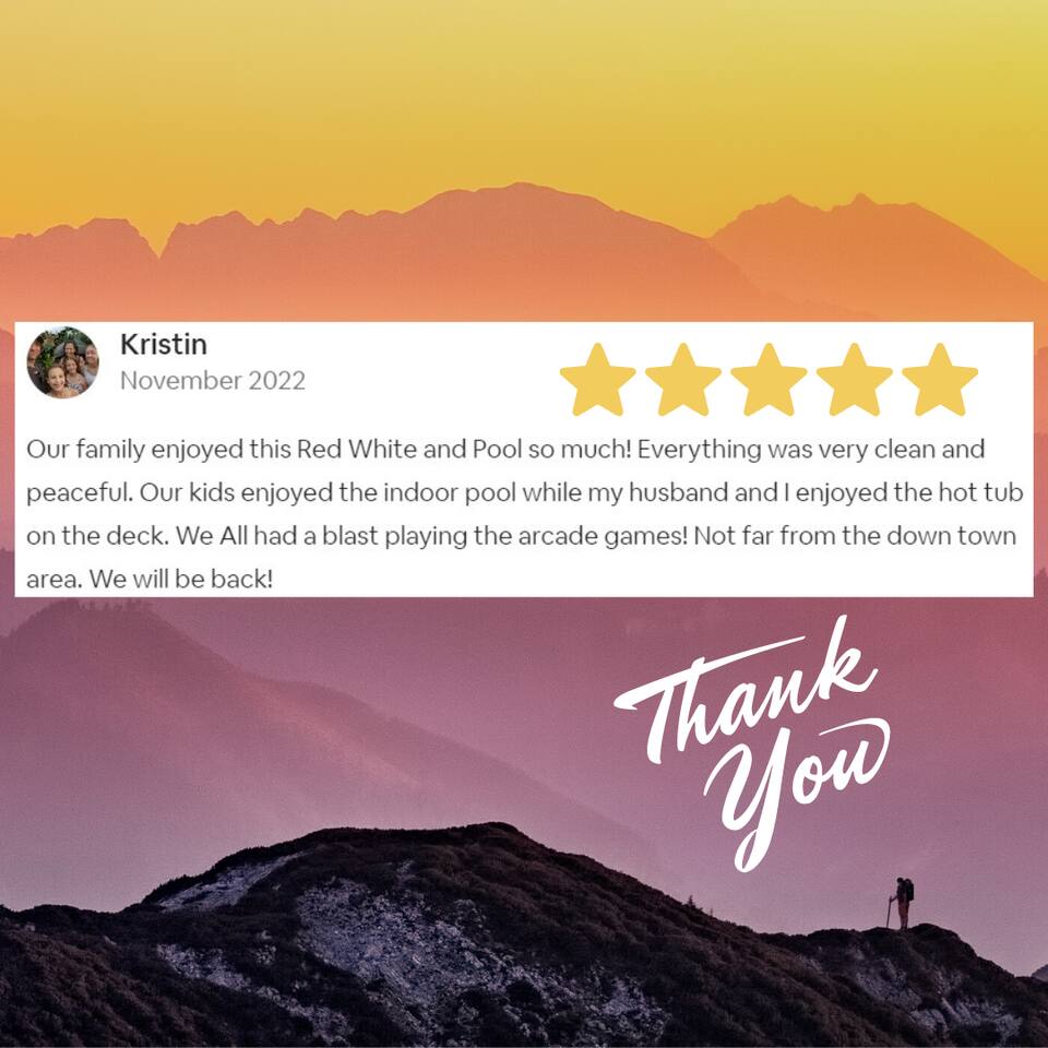 Why should you choose Red White and Pool ? 1. This is a brand new cabin with a large 15 x 12 heated gunite pool. This pool is larger than almost ALL other indoor pools in the area. 2. An amazing location with a view and 3 lighted private decks, surrounded by million dollar homes. 3. We pride ourselves with excellent customer service, resulting in over 140 5 star reviews from past guests. 4. Only 3 miles to the parkway. KEY FEATURES: ☀ Cabin decorated for Christmas. ☀ Incredibly fast Wi-Fi (200+ Mbps) ☀ 2,300 Square Feet ☀ 15 x 12 Indoor Pool (Heated to 84 degrees year round) ☀ 2 King Bedrooms with attached bathrooms. Queen over Queen bunks are just off of the game room. Sleeper sofa offers sleeping for 2 additional people. ☀ 3 Spacious bathrooms: 1 walk-in shower, 1 shower/bathtub combo and 1 pool level bathroom. ☀ Fully equipped kitchen with a full dining area ☀ Cozy and warm living room with electric fireplace ☀ Full game room with the arcade games, pool table and board games ☀ Scenic views from the 3 level deck (with patio string lights) ☀ Private hot tub (5 person) with views and patio lights ☀ 4 Large smart TVs (70" TV in Game room), All Smart TVs. ☀ Stackable washer / dryer ☀ Room to park 3 cars. There is overflow parking available if needed. Here Are A Few Kind Words From Our Past Guests: "Our family enjoyed this Red White and Pool so much! Everything was very clean and peaceful. Our kids enjoyed the indoor pool while my husband and I enjoyed the hot tub on the deck. We All had a blast playing the arcade games! Not far from the down town area. We will be back!" - Kristin "Beautiful cabin with amenities for the whole family from young to old. Even on rainy days, no one minded staying in. Loved the décor and the brand new condition of everything. Fully equipped kitchen made our family meals easy. Thanks Joel. I definitely recommend this lovely cabin." - Suzanne "Fantastic cabin! So close to everything “touristy” but secluded enough to feel like you’re deep in the mountains. House is clean, and we’ll stocked, and the QR code for information is incredibly helpful. I would recommend this cabin and this host over and over." - Kristine ☆☆ POOL ☆☆ The most amazing feature of this cabin can be found on the lower level. The 15 x 12 indoor pool is heated to 84 degrees year round. The pool depth ranges from 3 to 4 feet deep and pool towels are included. There is also a bathroom on pool level for your convenience. ☆☆ BEDROOMS ☆☆ Comfort is second nature to this new cabin with two tastefully furnished bedrooms. Each bedroom has a full bathroom with your personal smart TV. The first bedroom is situated on the main level, boasting a king-size bed. The second bedroom is located on the second floor and also has a king-size bed. There is also a bunk area off of the game room with a queen over queen bunk bed. ☆☆ BATHROOMS ☆☆ Two spa-like full bathrooms are appointed to the bedrooms for your privacy and convenience. The first bathroom boasts a large walk-in shower. The second bathroom shares the same hotel-like feel, with a combination bath and shower. You will find a third bathroom on the lower level, next to the pool. All bathrooms are stocked with towels, hair dryers and hand soap. ☆☆ KITCHEN ☆☆ The main floor of the house is an open floor plan with a fully equipped kitchen that has all the tools you need to prepare delicious home-cooked meals. This includes coffee maker, a crock pot, blender, oven, cooktop, microwave, dishwasher, refrigerator, pots/pans, strainer, dishes, glasses, utensils and everything you need to make your next meal. Reheat leftovers on lazy days, brew fresh coffee as often as you need it, and let nature envelop your senses as you admire the forest surrounding this extraordinary home through the many large windows. Ample seating is available in the dining area that opens up to the living area. ☆☆ LIVING ROOM ☆☆ The living room is around the corner from the kitchen and is the perfect place to kick back and relax with the whole family. The comfortable leather sofas, gas fireplace and Smart Roku TV make movie nights extra cozy. Watch your favorite by logging in to your streaming accounts. Snuggle up with a good book and enjoy the quiet mountain ambiance on chilly evenings. ☆☆ GAME ROOM ☆☆ When you're not shopping in Gatlinburg, or watching a family movie at home, chances are you'll be spending time in the top level game room. This welcoming space is complete with a pool table, 3 arcade games and board games to enjoy at your leisure. ☆☆ OUTSIDE SPACE ☆☆ The 3 level deck blurs the lines between indoor and outdoor living while offering views of the mountains. Early risers can enjoy their coffee on the rocking chairs and look for wildlife, and night owls can come out here with a glass of wine or enjoy the bubbling hot tub. We also have an outdoor table, perfect for enjoying dinner on the patio. Yellow string lights hang over all decks and provide a warm glow after sunset, adding to the beauty of the cabin’s location. ★☆ Book Today & Let Us Take Care Of You In Sevierville! ☆★