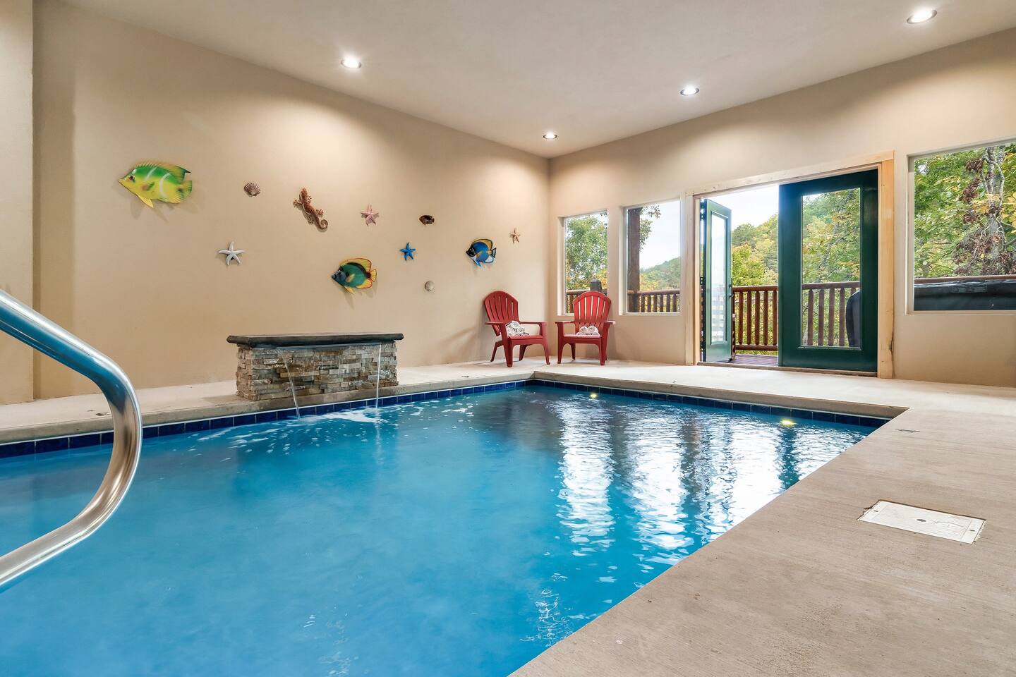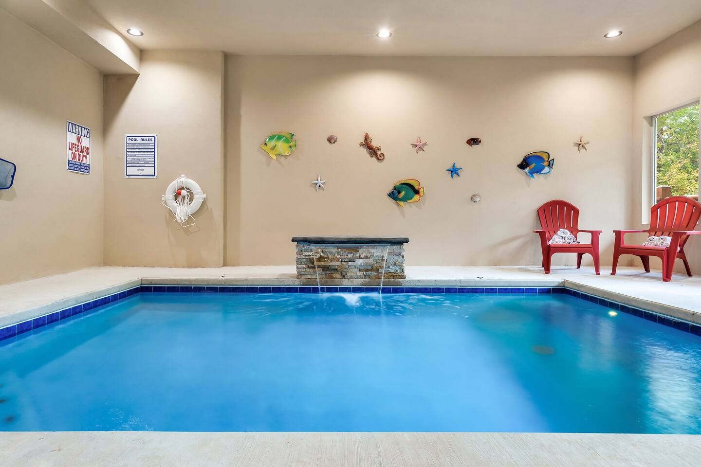 Red White and Pool by Red Glider Getaways This brand new mountain cabin is only 3 miles from Pigeon Forge, perfect for a fun filled family vacation. It boasts a heated indoor pool, new fire pit, new pool table, outdoor eating area, a full kitchen, arcades, a private hot tub and views from the 3 level deck. The cabin also features high-speed Wi-Fi and has NEW smart TVs 3 mile drive to Pigeon Forge 4.5 mile drive to Dollywood 7 mile drive to Gatlinburg 🏆 Best of Tennessee 2025 Award WINNER🏆