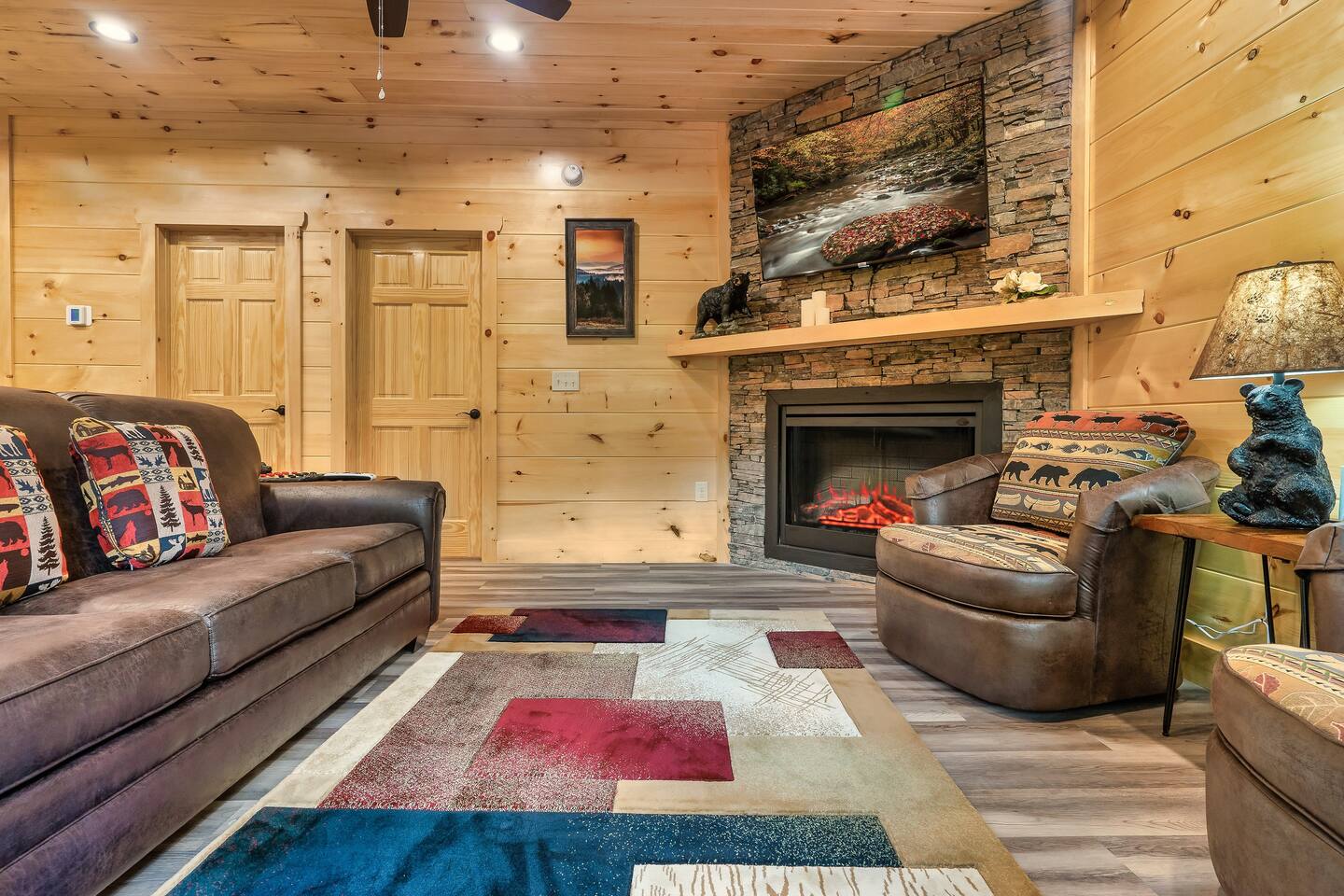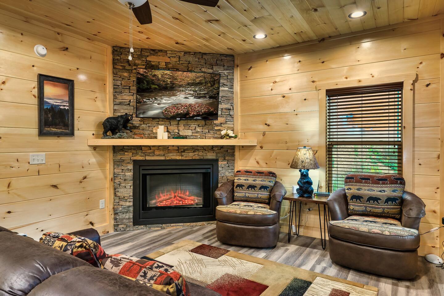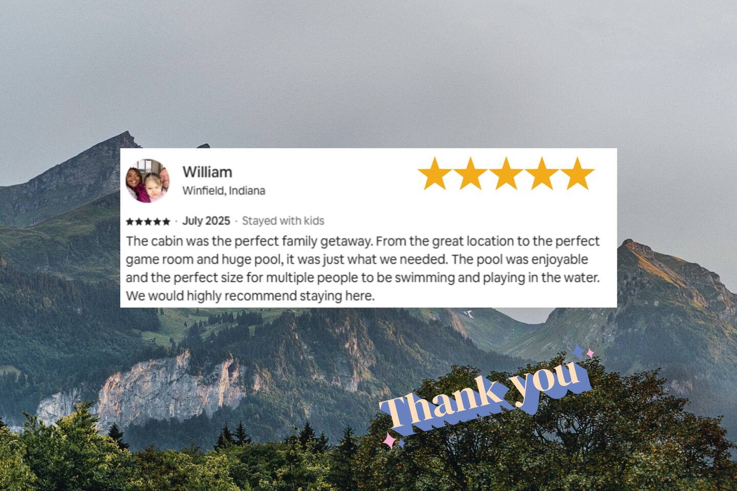 Why should you choose Pool R Bear? 1. This is a brand new cabin with a large 15 x 12 heated gunite pool. This pool is larger than almost ALL other indoor pools in the area. 2. An amazing location with a view and 3 private decks. 3. We pride ourselves with excellent customer service, resulting in over 1600 5 star reviews from past guests. 4. Only 3 miles to the parkway. 5. Kids will enjoy the game room while the parents will be in the hot tub! KEY FEATURES: β Cabin decorated for Christmas. β Fast Wi-Fi β 2,300 Square Feet β 15 x 12 Indoor Pool (Heated to 84 degrees year round) β 2 King Bedrooms with attached bathrooms. Queen over Queen bunks are just off of the game room. Sleeper sofa offers sleeping for 2 additional people. β 3 Spacious bathrooms: 1 walk-in shower, 1 shower/bathtub combo and 1 pool level bathroom. β Fully equipped kitchen with a full dining area β Cozy and warm living room with electric fireplace β Full game room with oversized arcade, pool table and board games β Scenic views from the 3 level deck β Private hot tub (5 person) β 4 Large smart TVs (70" TV in Game room), All Smart TVs. β Stackable washer / dryer β Room to park 3 cars. Here Are A Few Kind words From Our Past Guests: "We loved it! Having our own private indoor pool was awesome. Everything was clean and well appointed. We would definitely stay again." - Misty "Easy to find and very close to the parkway, and all of the attractions/entertainment/restaurants. The cabin was clean, well-stocked, and the beds were very comfortable. Jodi" - Shannon "Outstanding cabin! Great location as it can be accessed via backroads to avoid lots of traffic, but only a 6 minute drive from the heart of pigeon forge. Very spacious rooms and comfortable beds. Pool is absolutely amazing! Everything in perfect working order and well stocked for kitchen needs. Hosts have great communication and very prompt. Would highly recommend!!!β- Jason ββ POOL ββ The most amazing feature of this cabin can be found on the lower level. The 15 x 12 indoor pool is heated to 84 degrees year round. The pool depth ranges from 3 to 4 feet deep and pool towels are included. There is also a bathroom on pool level for your convenience. ββ BEDROOMS ββ Comfort is second nature to this new cabin with two tastefully furnished bedrooms. Each bedroom has a full bathroom with your personal smart TV. The first bedroom is situated on the main level, boasting a king-size bed. The second bedroom is located on the second floor and also has a king-size bed. There is also a bunk area off of the game room with a queen over queen bunk bed. ββ BATHROOMS ββ Two spa-like full bathrooms are appointed to the bedrooms for your privacy and convenience. The first bathroom boasts a large walk-in shower. The second bathroom shares the same hotel-like feel, with a combination bath and shower. You will find a third bathroom on the lower level, next to the pool. All bathrooms are stocked with towels, hair dryers and hand soap. ββ KITCHEN ββ The main floor of the house is an open floor plan with a fully equipped kitchen that has all the tools you need to prepare delicious home-cooked meals. This includes coffee maker, a crock pot, blender, oven, cooktop, microwave, dishwasher, refrigerator, pots/pans, strainer, dishes, glasses, utensils and everything you need to make your next meal. Reheat leftovers on lazy days, brew fresh coffee as often as you need it, and let nature envelop your senses as you admire the forest surrounding this extraordinary home through the many large windows. Ample seating is available in the dining area that opens up to the living area. ββ LIVING ROOM ββ The living room is around the corner from the kitchen and is the perfect place to kick back and relax with the whole family. The comfortable leather sofas, gas fireplace and Smart Roku TV make movie nights extra cozy. Watch your favorite by logging in to your streaming accounts. Snuggle up with a good book and enjoy the quiet mountain ambiance on chilly evenings. ββ GAME ROOM ββ When you're not shopping in Gatlinburg, or watching a family movie at home, chances are you'll be spending time in the top level game room. This welcoming space is complete with a pool table, arcade game and board games to enjoy at your leisure. ββ OUTSIDE SPACE ββ The 3 level deck blurs the lines between indoor and outdoor living while offering views of the mountains. Early risers can enjoy their coffee on the rocking chairs and look for wildlife, and night owls can come out here with a glass of wine or enjoy the bubbling hot tub. β β Book Today & Let Us Take Care Of You In Sevierville! ββ
