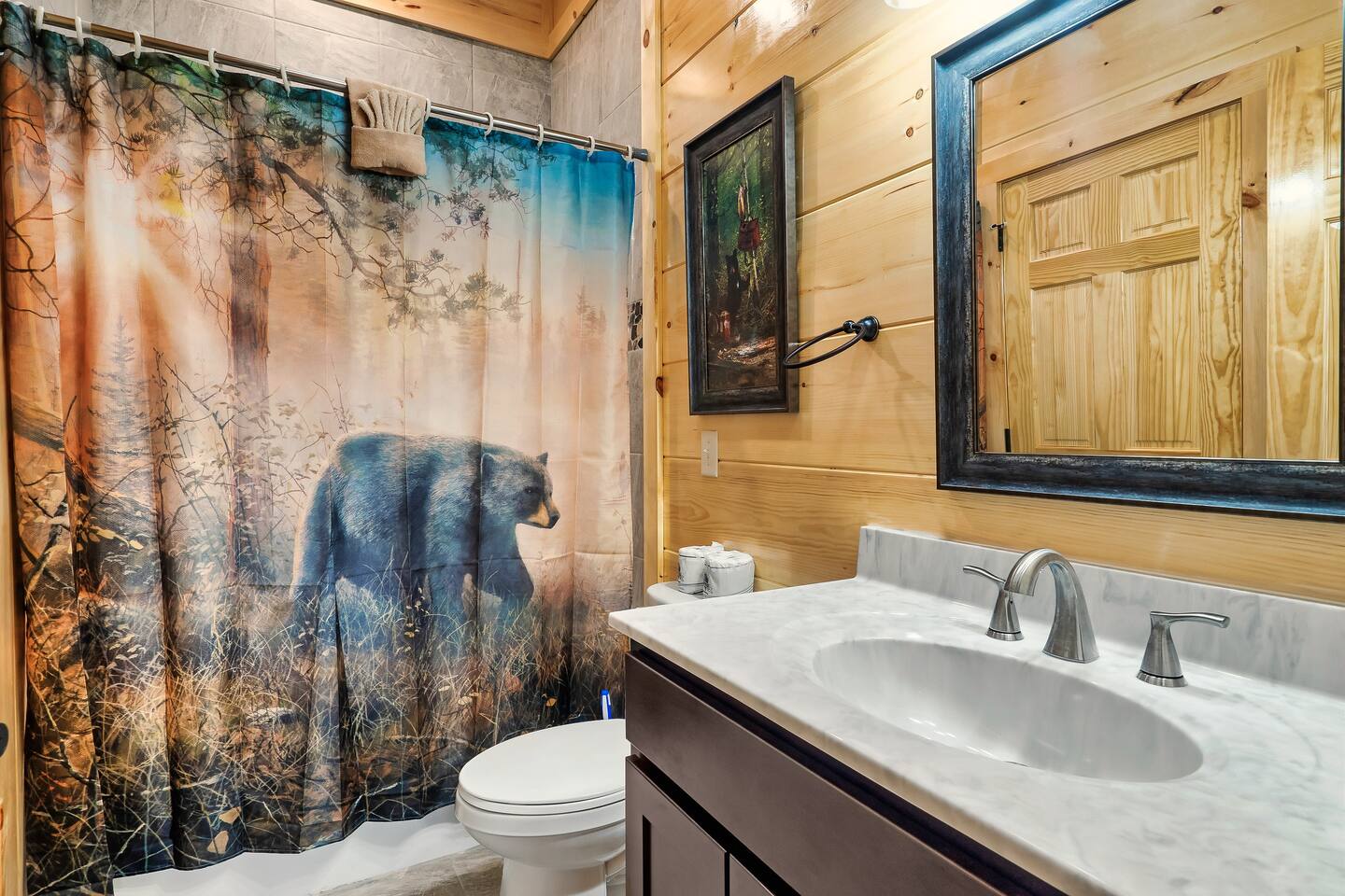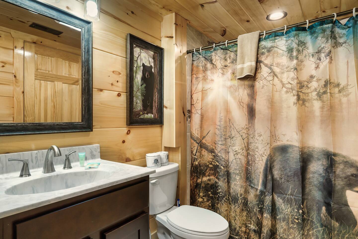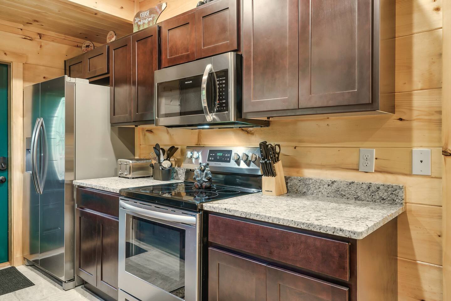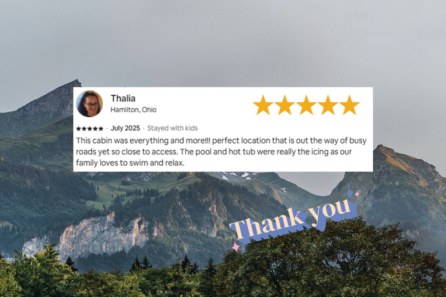 Why should you choose Pool R Bear? 1. This is a brand new cabin with a large 15 x 12 heated gunite pool. This pool is larger than almost ALL other indoor pools in the area. 2. An amazing location with a view and 3 private decks. 3. We pride ourselves with excellent customer service, resulting in over 1600 5 star reviews from past guests. 4. Only 3 miles to the parkway. 5. Kids will enjoy the game room while the parents will be in the hot tub! KEY FEATURES: β Cabin decorated for Christmas. β Fast Wi-Fi β 2,300 Square Feet β 15 x 12 Indoor Pool (Heated to 84 degrees year round) β 2 King Bedrooms with attached bathrooms. Queen over Queen bunks are just off of the game room. Sleeper sofa offers sleeping for 2 additional people. β 3 Spacious bathrooms: 1 walk-in shower, 1 shower/bathtub combo and 1 pool level bathroom. β Fully equipped kitchen with a full dining area β Cozy and warm living room with electric fireplace β Full game room with oversized arcade, pool table and board games β Scenic views from the 3 level deck β Private hot tub (5 person) β 4 Large smart TVs (70" TV in Game room), All Smart TVs. β Stackable washer / dryer β Room to park 3 cars. Here Are A Few Kind words From Our Past Guests: "We loved it! Having our own private indoor pool was awesome. Everything was clean and well appointed. We would definitely stay again." - Misty "Easy to find and very close to the parkway, and all of the attractions/entertainment/restaurants. The cabin was clean, well-stocked, and the beds were very comfortable. Jodi" - Shannon "Outstanding cabin! Great location as it can be accessed via backroads to avoid lots of traffic, but only a 6 minute drive from the heart of pigeon forge. Very spacious rooms and comfortable beds. Pool is absolutely amazing! Everything in perfect working order and well stocked for kitchen needs. Hosts have great communication and very prompt. Would highly recommend!!!β- Jason ββ POOL ββ The most amazing feature of this cabin can be found on the lower level. The 15 x 12 indoor pool is heated to 84 degrees year round. The pool depth ranges from 3 to 4 feet deep and pool towels are included. There is also a bathroom on pool level for your convenience. ββ BEDROOMS ββ Comfort is second nature to this new cabin with two tastefully furnished bedrooms. Each bedroom has a full bathroom with your personal smart TV. The first bedroom is situated on the main level, boasting a king-size bed. The second bedroom is located on the second floor and also has a king-size bed. There is also a bunk area off of the game room with a queen over queen bunk bed. ββ BATHROOMS ββ Two spa-like full bathrooms are appointed to the bedrooms for your privacy and convenience. The first bathroom boasts a large walk-in shower. The second bathroom shares the same hotel-like feel, with a combination bath and shower. You will find a third bathroom on the lower level, next to the pool. All bathrooms are stocked with towels, hair dryers and hand soap. ββ KITCHEN ββ The main floor of the house is an open floor plan with a fully equipped kitchen that has all the tools you need to prepare delicious home-cooked meals. This includes coffee maker, a crock pot, blender, oven, cooktop, microwave, dishwasher, refrigerator, pots/pans, strainer, dishes, glasses, utensils and everything you need to make your next meal. Reheat leftovers on lazy days, brew fresh coffee as often as you need it, and let nature envelop your senses as you admire the forest surrounding this extraordinary home through the many large windows. Ample seating is available in the dining area that opens up to the living area. ββ LIVING ROOM ββ The living room is around the corner from the kitchen and is the perfect place to kick back and relax with the whole family. The comfortable leather sofas, gas fireplace and Smart Roku TV make movie nights extra cozy. Watch your favorite by logging in to your streaming accounts. Snuggle up with a good book and enjoy the quiet mountain ambiance on chilly evenings. ββ GAME ROOM ββ When you're not shopping in Gatlinburg, or watching a family movie at home, chances are you'll be spending time in the top level game room. This welcoming space is complete with a pool table, arcade game and board games to enjoy at your leisure. ββ OUTSIDE SPACE ββ The 3 level deck blurs the lines between indoor and outdoor living while offering views of the mountains. Early risers can enjoy their coffee on the rocking chairs and look for wildlife, and night owls can come out here with a glass of wine or enjoy the bubbling hot tub. β β Book Today & Let Us Take Care Of You In Sevierville! ββ