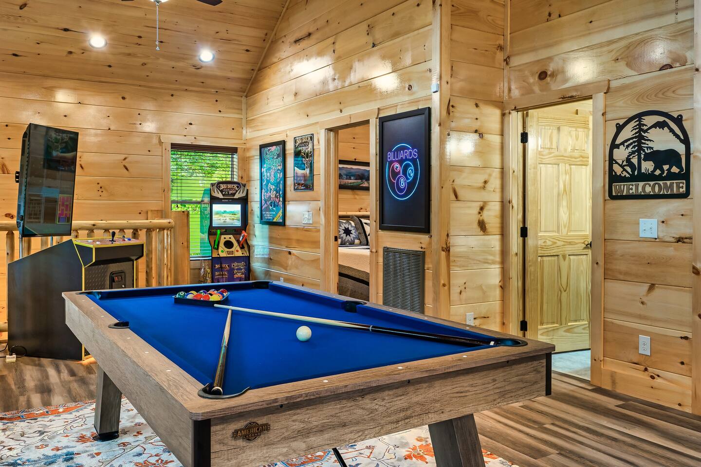 Pool R Bear by Red Glider Getaways This brand new mountain cabin has an amazing location. Only 3 miles from Pigeon Forge, perfect for a fun filled family vacation. It boasts a large heated indoor pool, oversized arcade, new pool table, a full kitchen, a private hot tub and views from the 3 level deck. The cabin also features high-speed Wi-Fi and has NEW smart TVs.. 3 mile drive to Pigeon Forge 7 mile drive to Dollywood 11 mile drive to Gatlinburg π Best of Tennessee 2025 Award WINNERπ