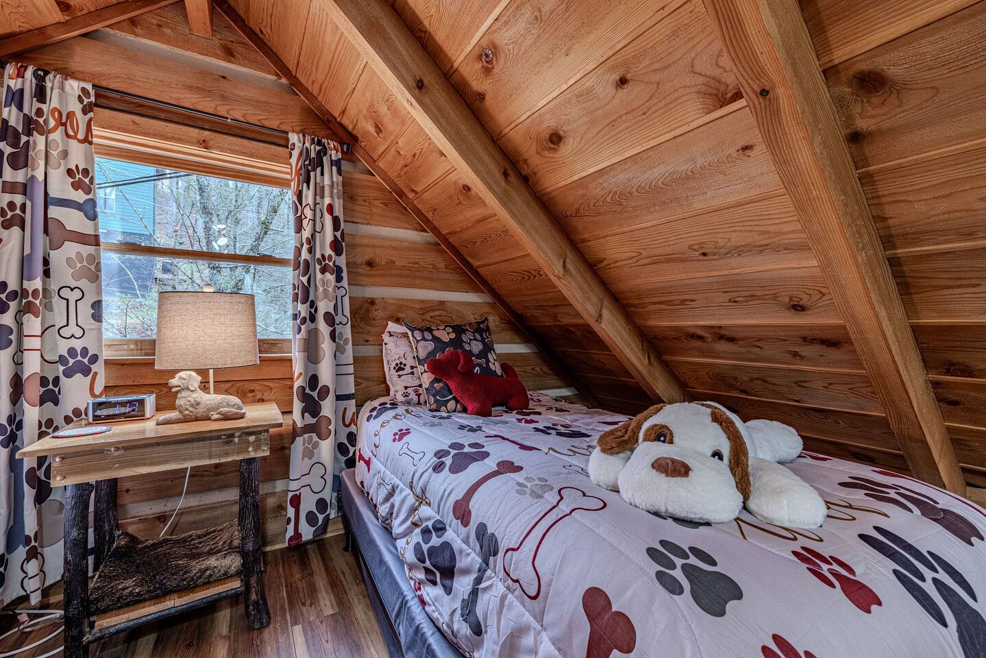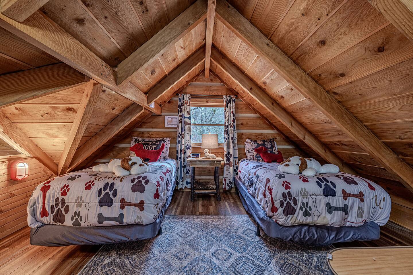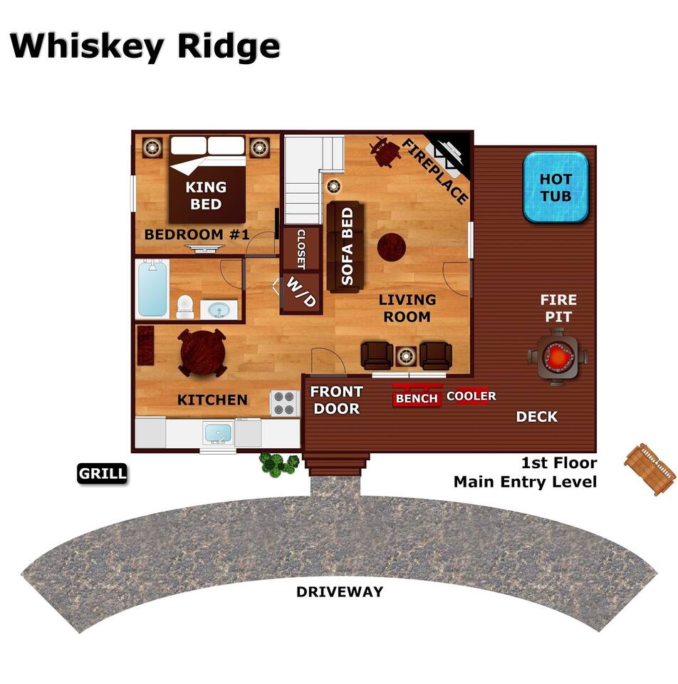 Why should you choose Whiskey Ridge ? 1. This cabin is 100% updated from the floors to the kitchen counters. 2. We have a brand new dog house for your pet to enjoy. Bring up to 2 dogs with you! (Be sure to include them in the guest count) 3. The location is amazing. We can be found right in between Pigeon Forge and Gatlinburg. Very close to both. 4. We provide custom videos on how to use the hot tub and all components of the home. 5. We pride ourselves with excellent customer service, resulting in over 165 5 star reviews from past guests. âď¸Pets are welcomeâď¸ KEY FEATURES: â High speed Wi-Fi (350+ Mbps) â 2 Bedrooms (1 King and 2 Twin in loft) â Arcade, board games, movies in Loft â 3 Smart Roku TVs (1 with cable - Livingroom) â Private deck + hot tub + gas fire pit + ring/hook game + patio lights + privacy screens â Fully equipped + stocked kitchen with stainless steel appliances + New retro fridge â Walk to neighborhood fishing ponds. â 1,100 sqr/ft Here Are A Few Kind Words From Our Past Guests: âWe had an amazing stay in July. We couldnât have asked for a better place. The location was great. We were close to everything but not too close. My kids and I very much enjoyed the hot tub especially after coming home from a day of hiking. The beds were very comfortable and we all slept very well. We also had a lot of fun play the ring/hook game on the front porch in the mornings. Joel was very helpful and always checked in to see if we needed anything. We were very happy with our stay. Thank you!â - Amanda âGreat cabin at a good location. Felt safe and clean. The host was very generous and made sure everything was perfect for us. Would definitely stay again the next time we come out to Dollywood!â - Abram âThis place is awesome! Everything was exactly as described and the location was perfect for us to visit Smoky Mountains National Park and the nearby towns (Gatlinburg & Pigeon Forge). Communication with Joel was great and he was very quick to respond every time. Everyone especially loved the hot tub!â - Isabelia âDonât hesitate, book it!! This place is amazing! Great location, great, luxurious cabin, has all the right (and cute) touches, things (video game console, board game cabinet, hot tub, fire pit, full kitchen thatâs well equipped with plates, cookware, dishwasher)âŚThereâs nothing missing and itâs adorable and bigger than it looks in the pics. Joelâs a great communicator!â - Cassa Excellent WIFI throughout. The cabin is semi-private. You can see other cabins from the deck, but the trees do give you a good amount of privacy.. ââ BEDROOMS ââ Comfort is second nature to this updated cabin with two tastefully furnished bedrooms. As each bedroom has a personal TV and upgraded beds. The first bedroom is situated on the main level, boasting a king-size bed. The second bedroom is located in the loft and accommodates two guests with two twin beds. ââ BATHROOM ââ The spa-like full bathroom is located on the main floor for your privacy and convenience. It a has a hotel-like feel, with a combination bath and shower and upgraded vanity. The bathroom is stocked with towels, hair dryer and hand soap. ââ KITCHEN ââ The main floor of the house is an open floor plan with a fully equipped kitchen that has all the tools you need to prepare delicious home-cooked meals. This includes coffee makers, a crock pot, blender, oven, cooktop, microwave, dishwasher, refrigerator, pots/pans, strainer, dishes, glasses, utensils and everything you need to make your next meal. Reheat leftovers on lazy days, brew fresh coffee as often as you need it, and let nature envelop your senses as you admire the forest surrounding this extraordinary home through the many large windows. The eat-in kitchen has a locally made whiskey barrel table for you to enjoy ââ LIVING ROOM ââ The living room is around the corner from the kitchen and is the perfect place to kick back and relax with the whole family. The comfortable sofa, reclining chairs, gas fireplace and flat screen TV make movie nights extra cozy. Watch your favorite TV shows on upgraded cable. Snuggle up with a good book and enjoy the quiet mountain ambiance on chilly evenings. ââ GAME AREA ââ When you're not shopping in Gatlinburg, or watching a family movie at home, chances are you'll be spending time in the lofted game area. This welcoming space is complete with arcade games, and board games to enjoy at your leisure. ââ OUTSIDE SPACE ââ The wrap-around deck blurs the lines between indoor and outdoor living while offering unobstructed views of the forest. Early risers can enjoy their coffee on the metal glider and look for wildlife, and night owls can come out here with a glass of wine or enjoy the bubbling hot tub. Many of our guests enjoy smores on the fire pit and our hook game on the front porch. Yellow string lights hang over the deck and provide a warm glow after sunset, adding to the beauty of the cabinâs location. - Be aware that bears are in the area. Please use caution when cooking outside and donât leave food unattended. â â Book Today & Let Us Take Care Of You In Sevierville! ââ Guest Access: Guests of Whiskey Ridge have access to the private hot tub and all other amenities inside the 1,100 sq ft, well-equipped cabin. There are TVs, all of which have either Cable TV or access to Roku to stream. The WIFI is incredibly fast. You will receive a door code 48hrs prior to arrival for self-check-in. Ample parking space is available in the cabinâs driveway. Please take note that bears are frequently seen in the area and require that you exercise caution. 4WD/AWD is recommended if there are winter conditions. *Fireplace is available October through March*