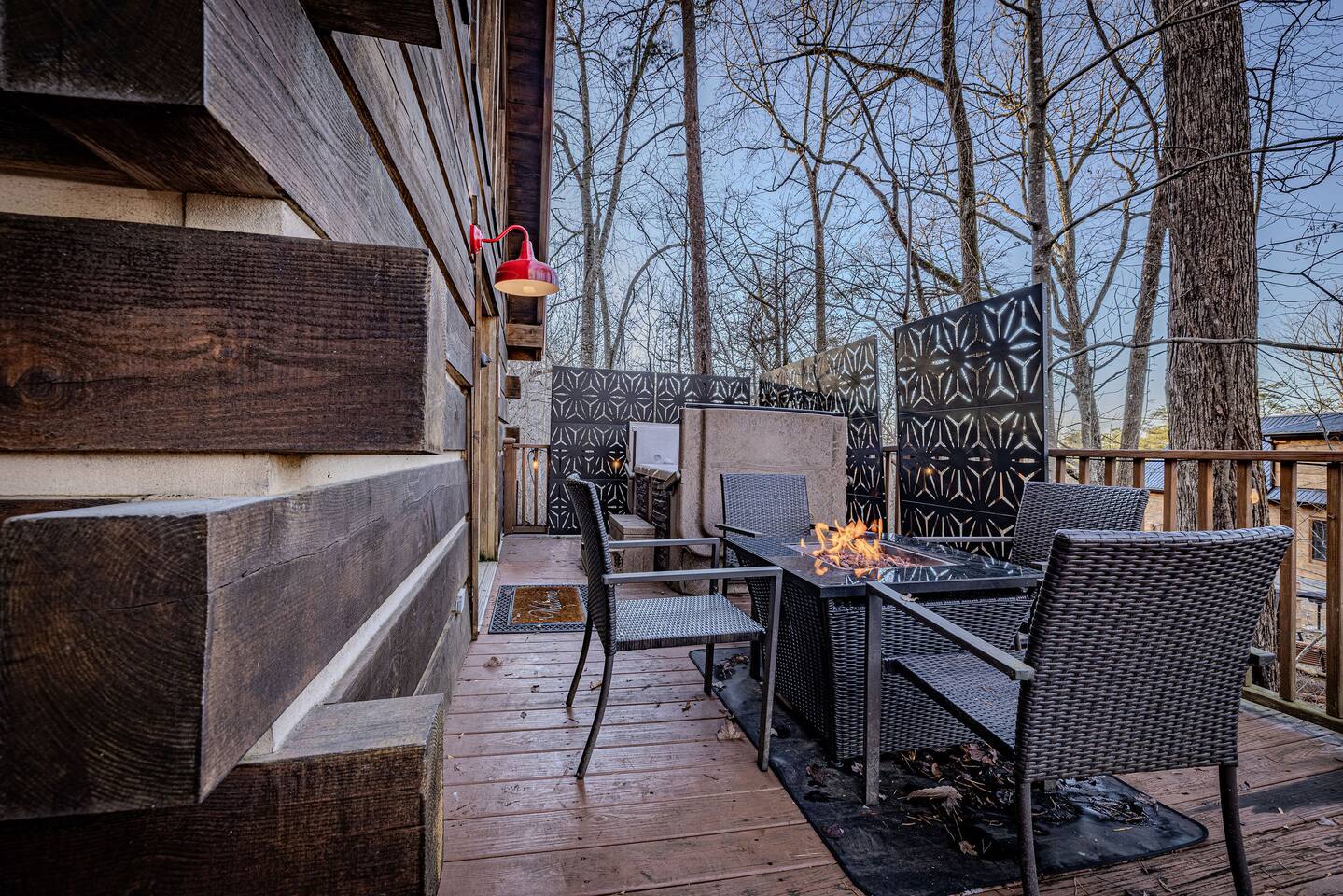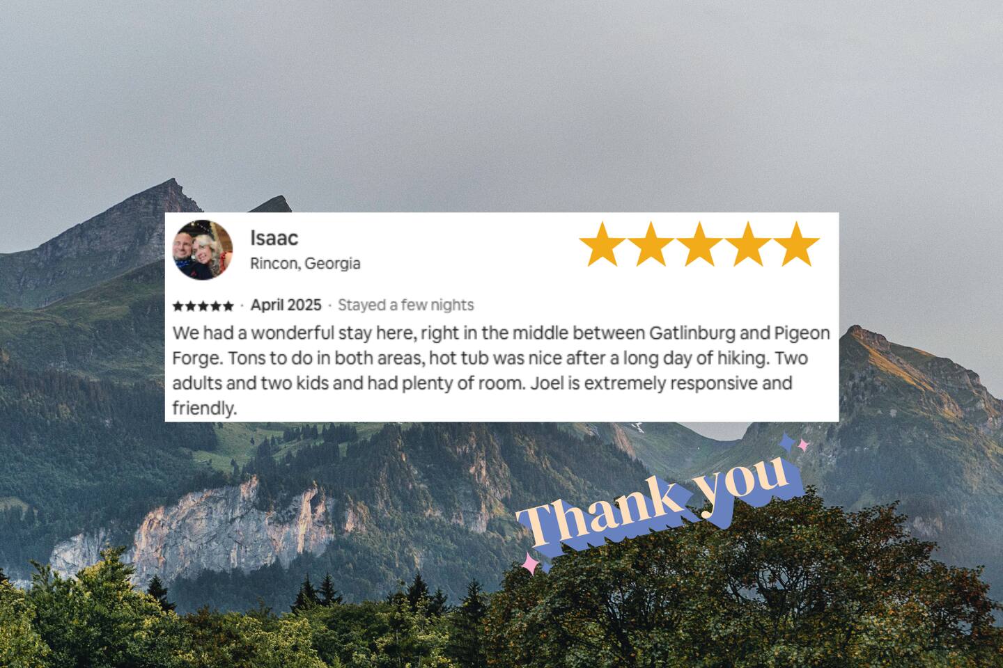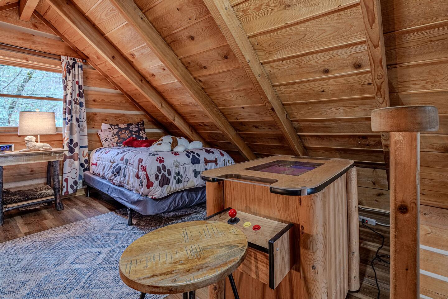 Why should you choose Whiskey Ridge ? 1. This cabin is 100% updated from the floors to the kitchen counters. 2. We have a brand new dog house for your pet to enjoy. Bring up to 2 dogs with you! (Be sure to include them in the guest count) 3. The location is amazing. We can be found right in between Pigeon Forge and Gatlinburg. Very close to both. 4. We provide custom videos on how to use the hot tub and all components of the home. 5. We pride ourselves with excellent customer service, resulting in over 165 5 star reviews from past guests. âď¸Pets are welcomeâď¸ KEY FEATURES: â High speed Wi-Fi (350+ Mbps) â 2 Bedrooms (1 King and 2 Twin in loft) â Arcade, board games, movies in Loft â 3 Smart Roku TVs (1 with cable - Livingroom) â Private deck + hot tub + gas fire pit + ring/hook game + patio lights + privacy screens â Fully equipped + stocked kitchen with stainless steel appliances + New retro fridge â Walk to neighborhood fishing ponds. â 1,100 sqr/ft Here Are A Few Kind Words From Our Past Guests: âWe had an amazing stay in July. We couldnât have asked for a better place. The location was great. We were close to everything but not too close. My kids and I very much enjoyed the hot tub especially after coming home from a day of hiking. The beds were very comfortable and we all slept very well. We also had a lot of fun play the ring/hook game on the front porch in the mornings. Joel was very helpful and always checked in to see if we needed anything. We were very happy with our stay. Thank you!â - Amanda âGreat cabin at a good location. Felt safe and clean. The host was very generous and made sure everything was perfect for us. Would definitely stay again the next time we come out to Dollywood!â - Abram âThis place is awesome! Everything was exactly as described and the location was perfect for us to visit Smoky Mountains National Park and the nearby towns (Gatlinburg & Pigeon Forge). Communication with Joel was great and he was very quick to respond every time. Everyone especially loved the hot tub!â - Isabelia âDonât hesitate, book it!! This place is amazing! Great location, great, luxurious cabin, has all the right (and cute) touches, things (video game console, board game cabinet, hot tub, fire pit, full kitchen thatâs well equipped with plates, cookware, dishwasher)âŚThereâs nothing missing and itâs adorable and bigger than it looks in the pics. Joelâs a great communicator!â - Cassa Excellent WIFI throughout. The cabin is semi-private. You can see other cabins from the deck, but the trees do give you a good amount of privacy.. ââ BEDROOMS ââ Comfort is second nature to this updated cabin with two tastefully furnished bedrooms. As each bedroom has a personal TV and upgraded beds. The first bedroom is situated on the main level, boasting a king-size bed. The second bedroom is located in the loft and accommodates two guests with two twin beds. ââ BATHROOM ââ The spa-like full bathroom is located on the main floor for your privacy and convenience. It a has a hotel-like feel, with a combination bath and shower and upgraded vanity. The bathroom is stocked with towels, hair dryer and hand soap. ââ KITCHEN ââ The main floor of the house is an open floor plan with a fully equipped kitchen that has all the tools you need to prepare delicious home-cooked meals. This includes coffee makers, a crock pot, blender, oven, cooktop, microwave, dishwasher, refrigerator, pots/pans, strainer, dishes, glasses, utensils and everything you need to make your next meal. Reheat leftovers on lazy days, brew fresh coffee as often as you need it, and let nature envelop your senses as you admire the forest surrounding this extraordinary home through the many large windows. The eat-in kitchen has a locally made whiskey barrel table for you to enjoy ââ LIVING ROOM ââ The living room is around the corner from the kitchen and is the perfect place to kick back and relax with the whole family. The comfortable sofa, reclining chairs, gas fireplace and flat screen TV make movie nights extra cozy. Watch your favorite TV shows on upgraded cable. Snuggle up with a good book and enjoy the quiet mountain ambiance on chilly evenings. ââ GAME AREA ââ When you're not shopping in Gatlinburg, or watching a family movie at home, chances are you'll be spending time in the lofted game area. This welcoming space is complete with arcade games, and board games to enjoy at your leisure. ââ OUTSIDE SPACE ââ The wrap-around deck blurs the lines between indoor and outdoor living while offering unobstructed views of the forest. Early risers can enjoy their coffee on the metal glider and look for wildlife, and night owls can come out here with a glass of wine or enjoy the bubbling hot tub. Many of our guests enjoy smores on the fire pit and our hook game on the front porch. Yellow string lights hang over the deck and provide a warm glow after sunset, adding to the beauty of the cabinâs location. - Be aware that bears are in the area. Please use caution when cooking outside and donât leave food unattended. â â Book Today & Let Us Take Care Of You In Sevierville! ââ Guest Access: Guests of Whiskey Ridge have access to the private hot tub and all other amenities inside the 1,100 sq ft, well-equipped cabin. There are TVs, all of which have either Cable TV or access to Roku to stream. The WIFI is incredibly fast. You will receive a door code 48hrs prior to arrival for self-check-in. Ample parking space is available in the cabinâs driveway. Please take note that bears are frequently seen in the area and require that you exercise caution. 4WD/AWD is recommended if there are winter conditions. *Fireplace is available October through March*