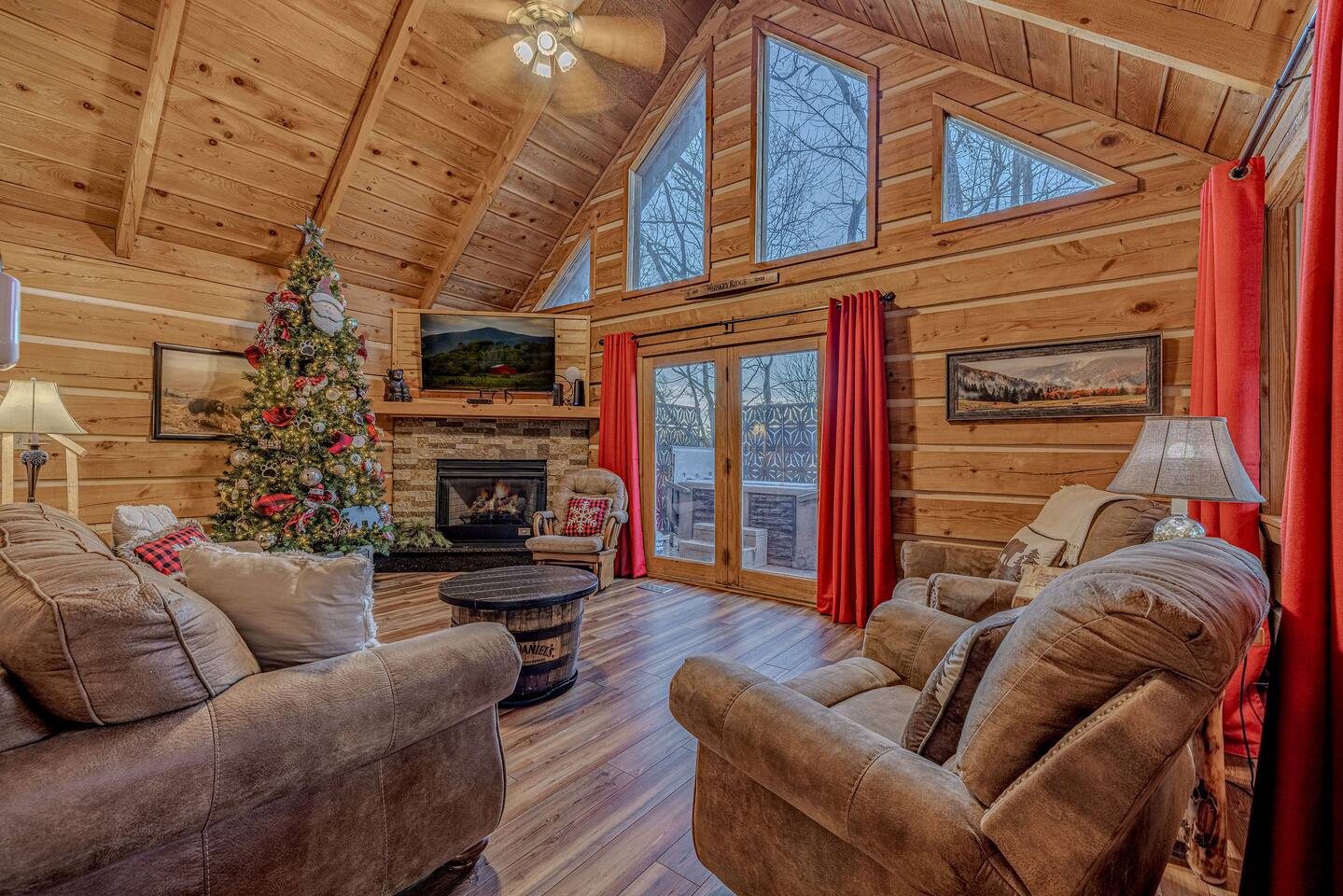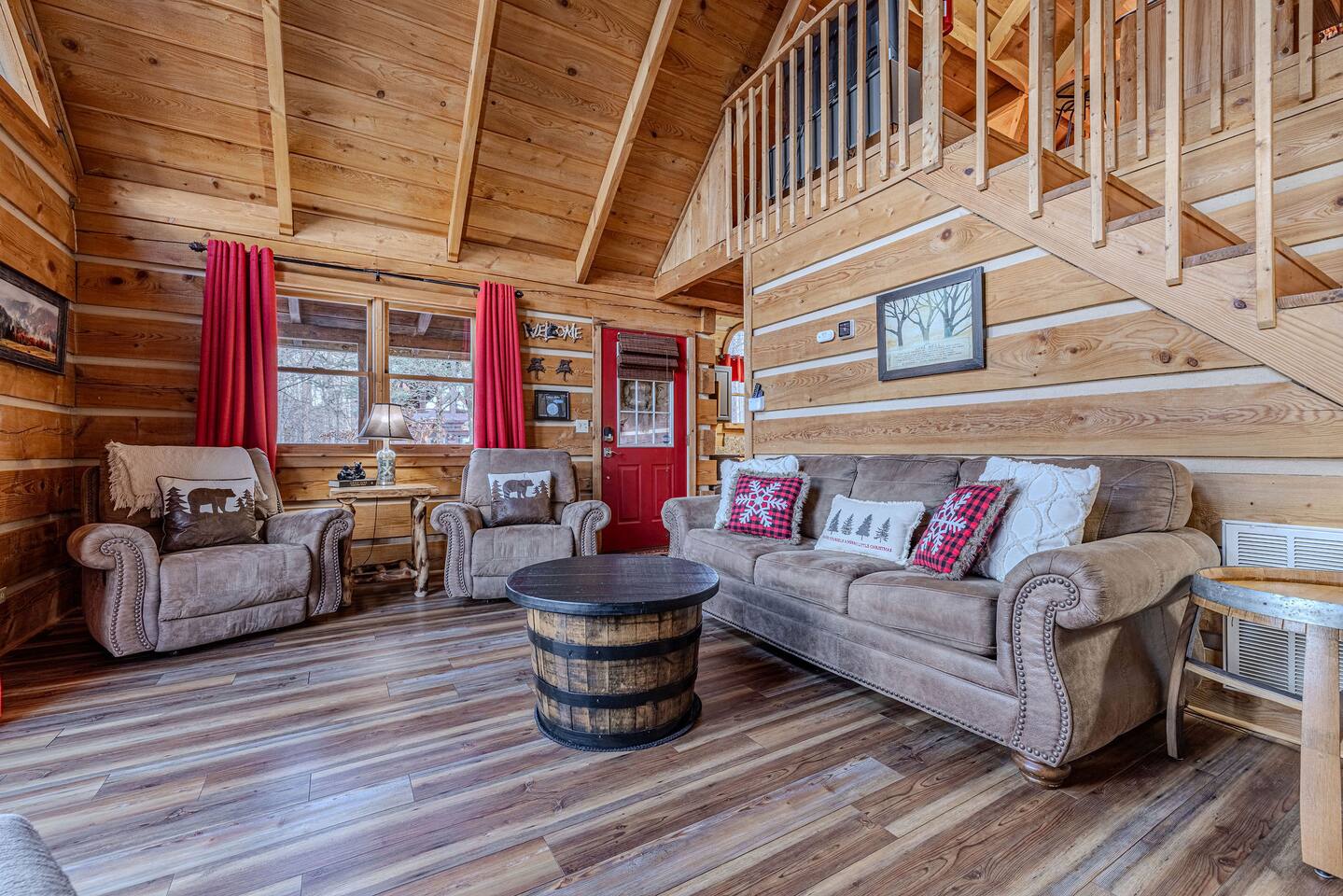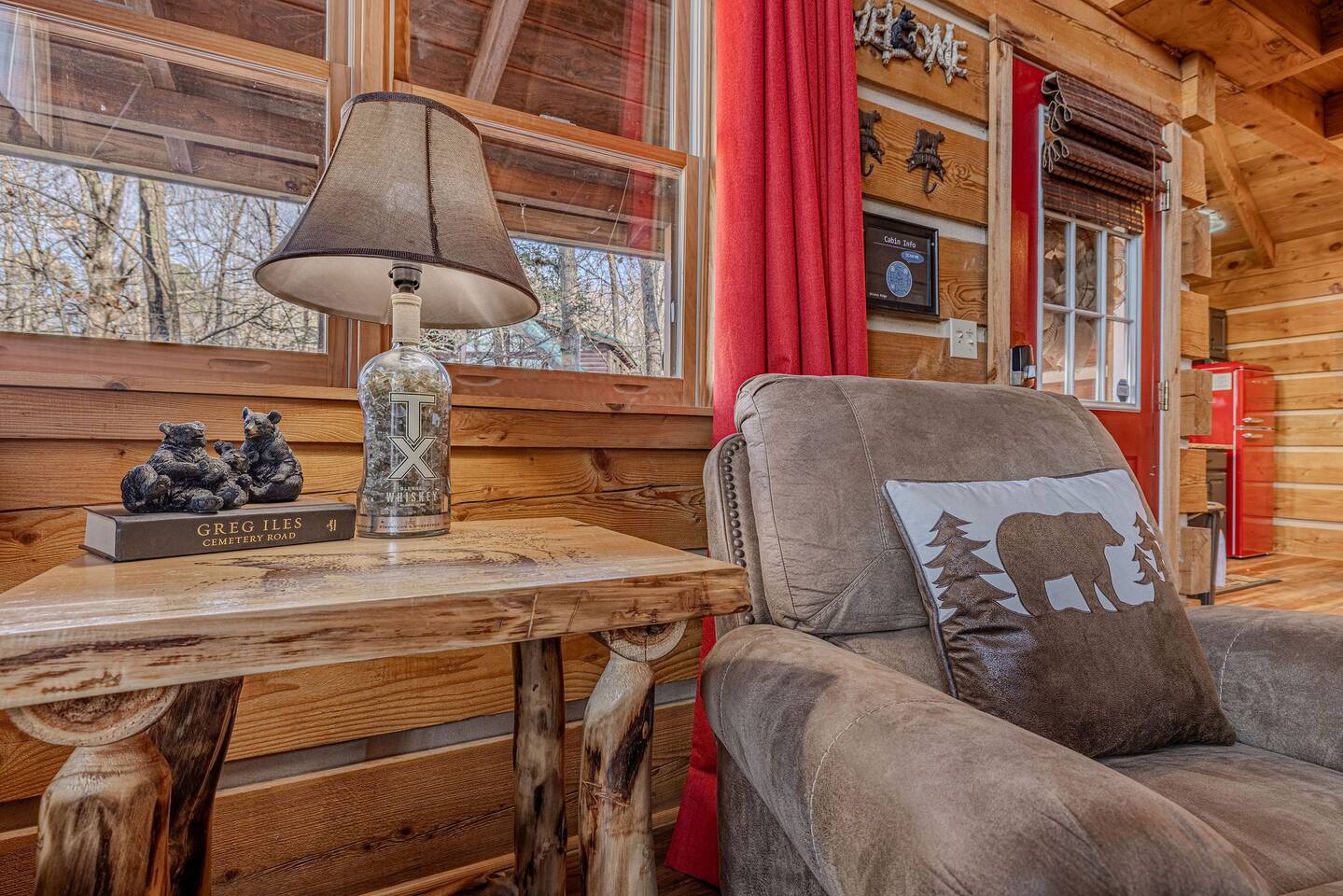 Whiskey Ridge by Red Glider Getaways Welcome to a stunning cabin, private but close to everything. If you're sick and tired of old run down homes then Whiskey Ridge will blow you away. This is the ideal escape for small families or couples. Pet friendly and completely upgraded (kitchen, floors, TV, 350MB+ Wi-Fi), Arcade game and Hot Tub. You will also love the whiskey barrel theming.. 3 Miles to Pigeon Forge 4 Miles to Gatlinburg 7 Miles to Dollywood đ Best of Tennessee 2025 Award WINNERđ
